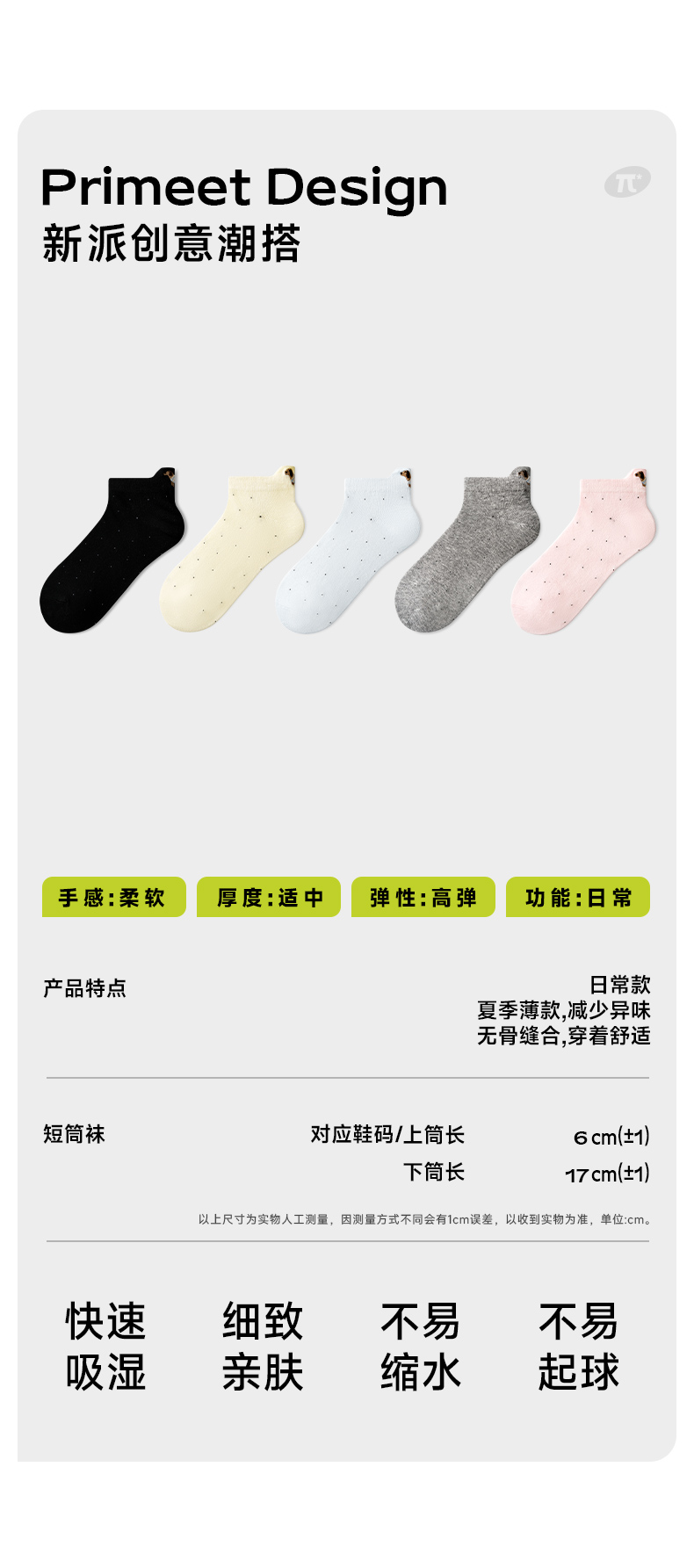 White Heel Cute Socks for Women, Spring and Autumn Short Socks, Dotted Yarn Mid-Short Socks, Polka Dot Solid Color Cotton Socks for Women