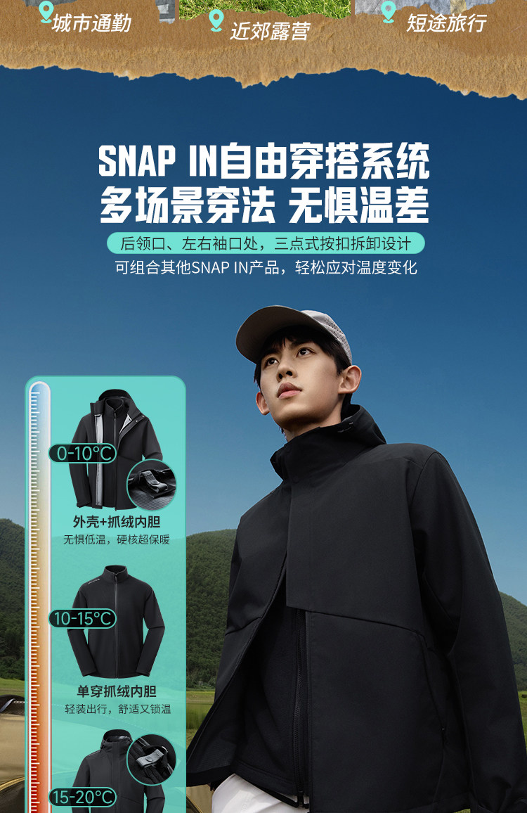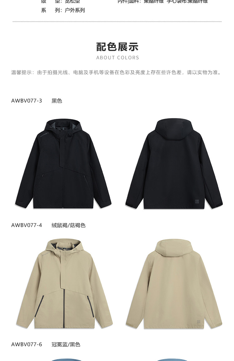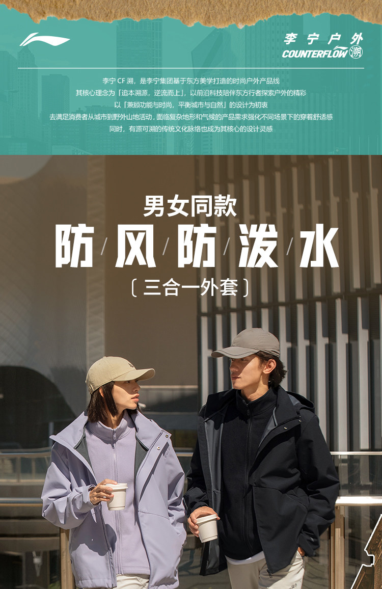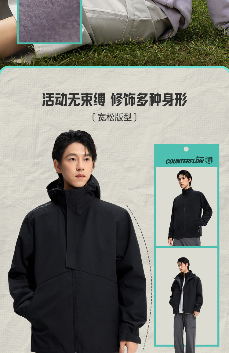 Li-Ning Outdoor Cf Three-In-One Jacket Unisex Sports Casual Windproof Softshell Jacket