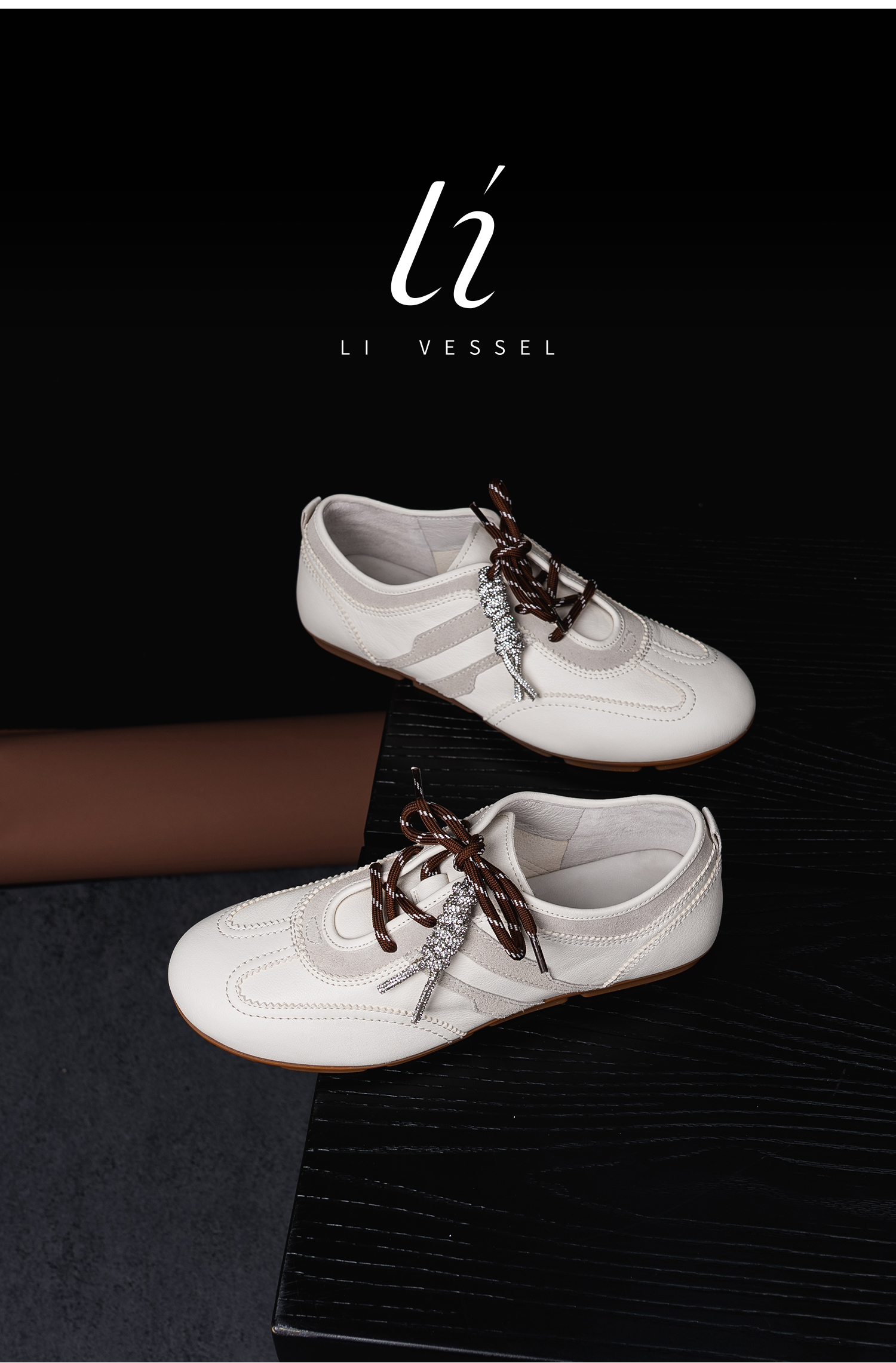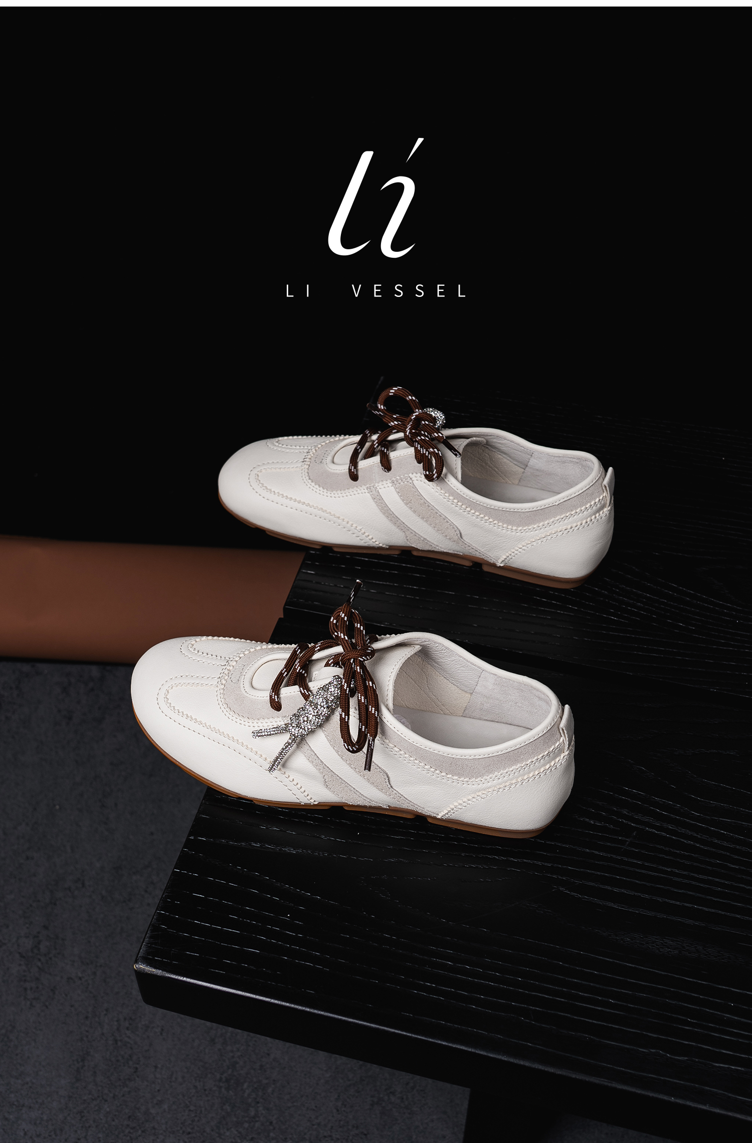 [Maomaojia] Height-Increasing Genuine Leather German Training Shoes for Women, 2025 Autumn New Casual Shoes with Plush Lining, Retro White Sneakers
