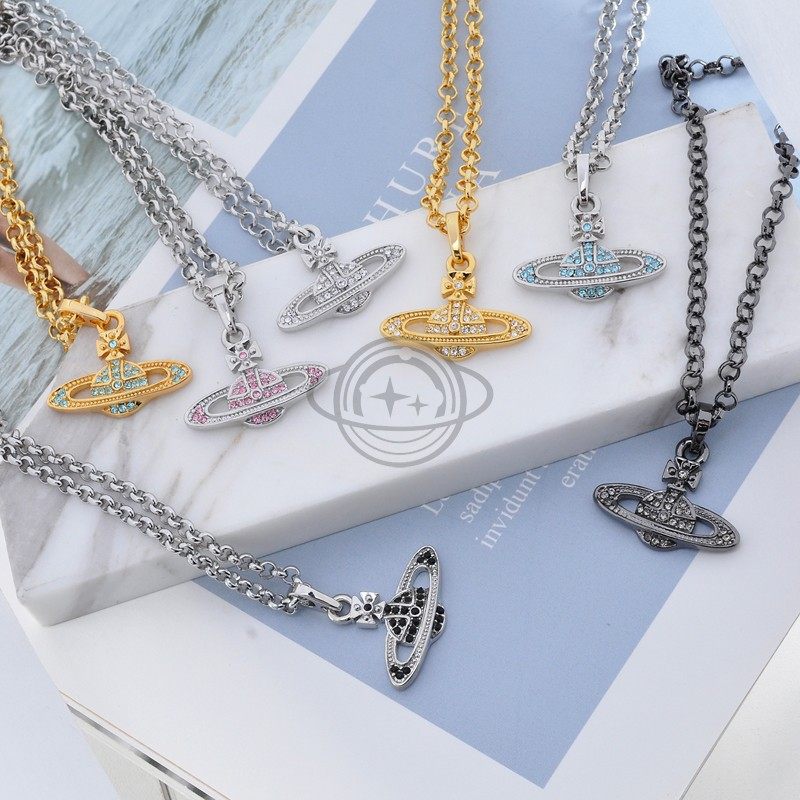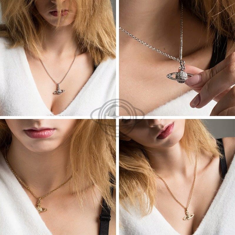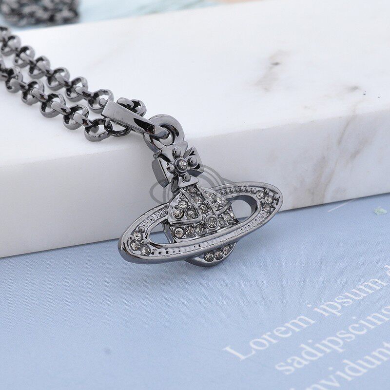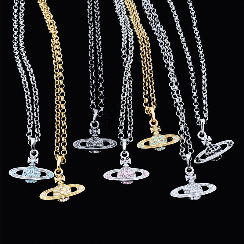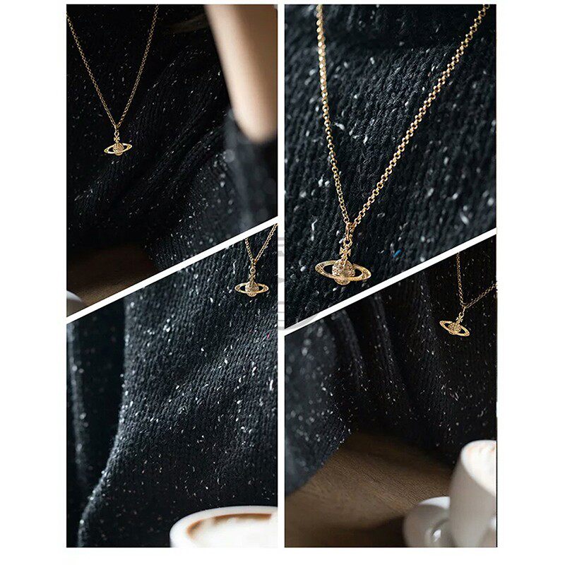 Planet Knight Full Diamond Saturn Necklace for Women, Light Luxury, High-End Clavicle Chain, New Popular Style, Versatile and Simple Design
