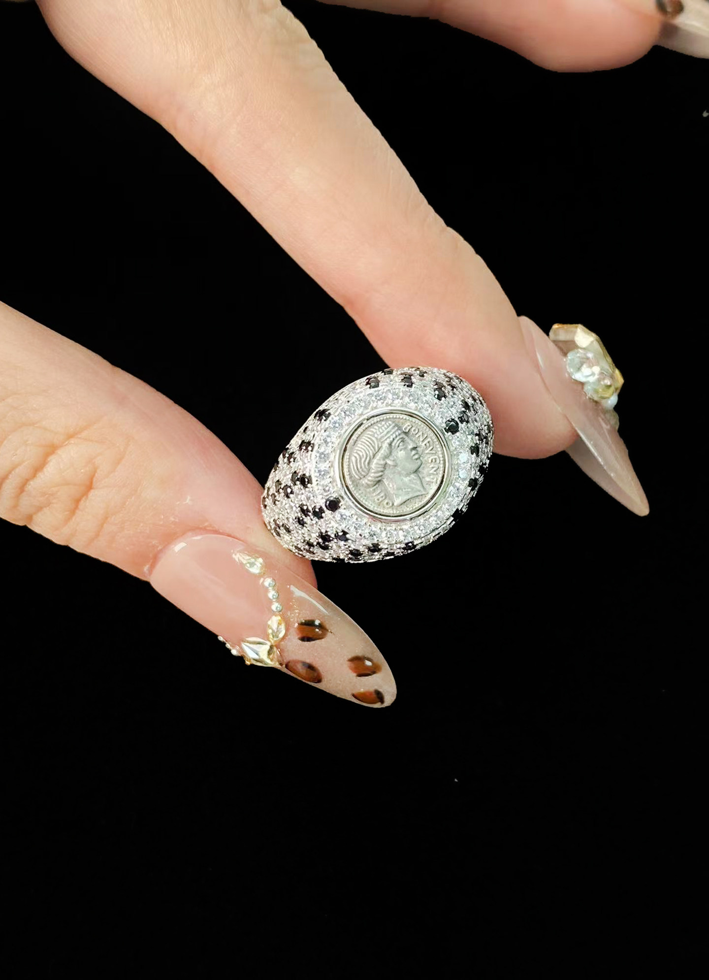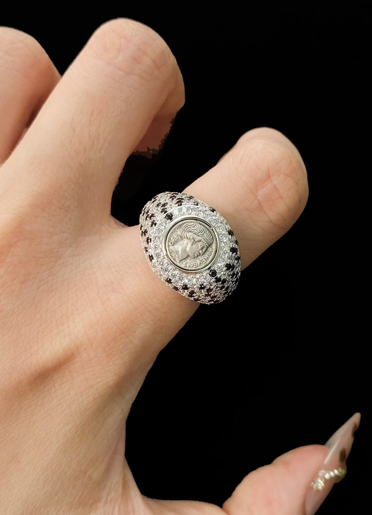 Have Fun S925 Sterling Silver Plated with 18K Real Gold Italian Craftsmanship Lucky Goddess Tichak Coin Ring
