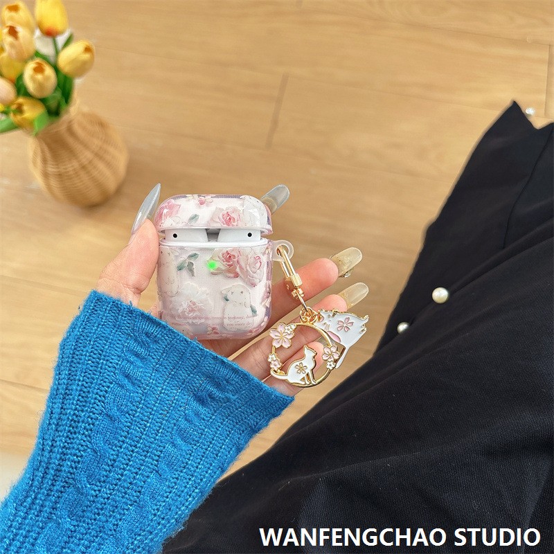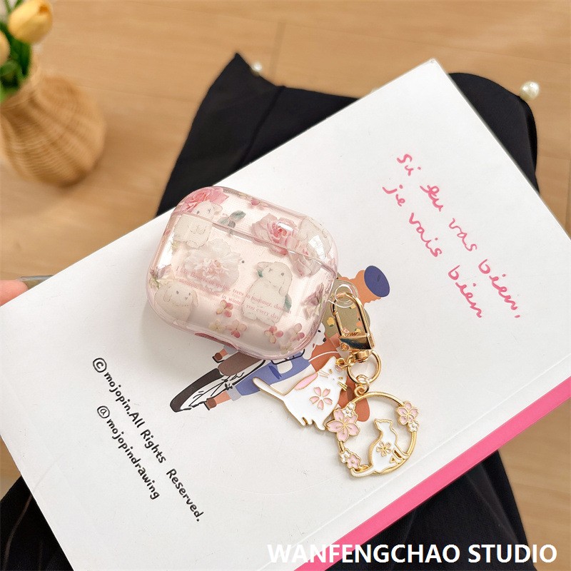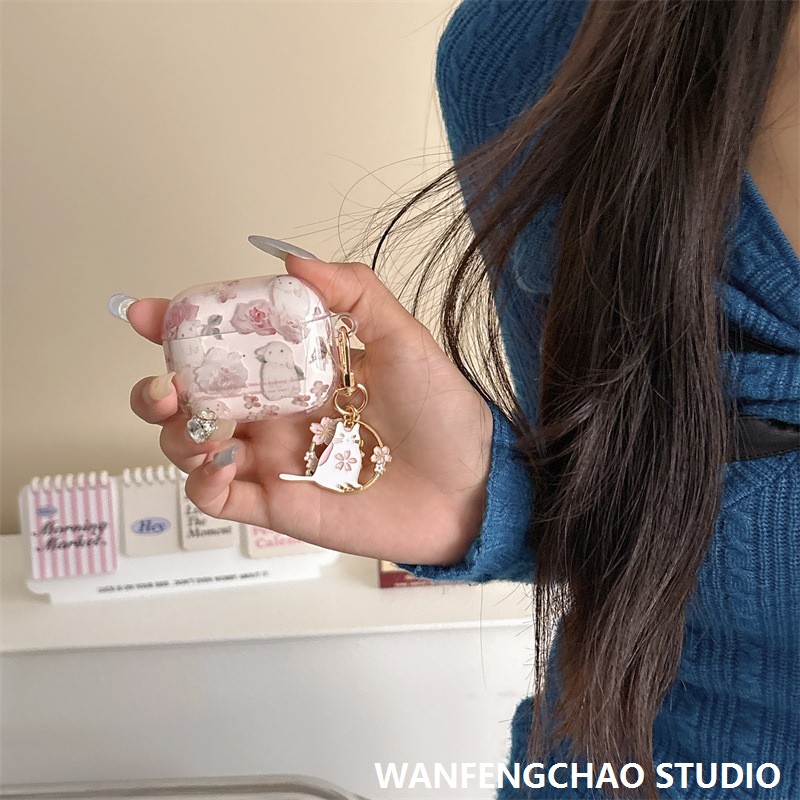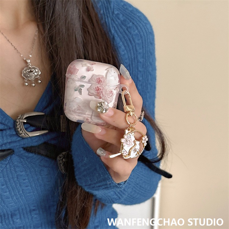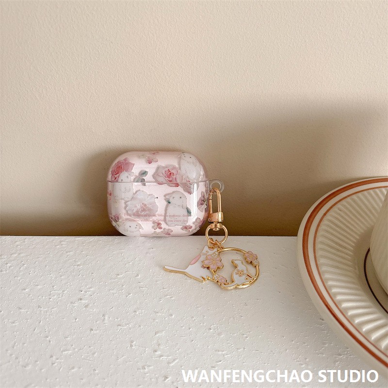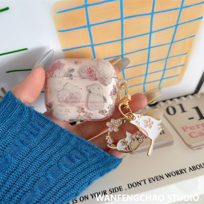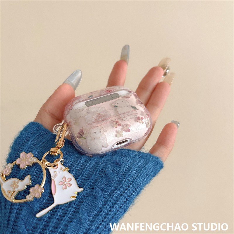 Retro Flower Rabbit Suitable for Apple AirPods 4Th Generation Protective Case Pro2 Earphone Case New 3Rd Generation Soft Shell Hanging Chain