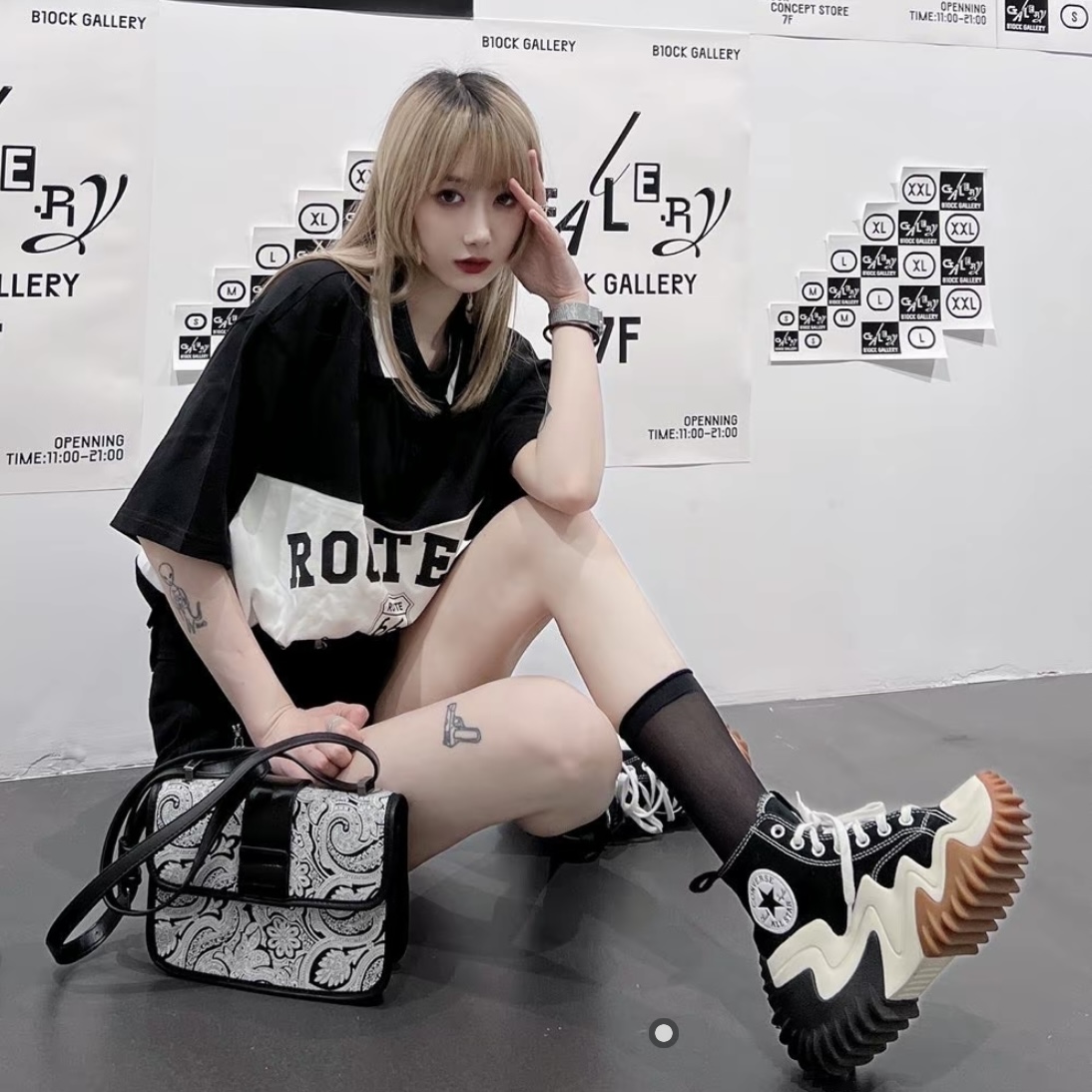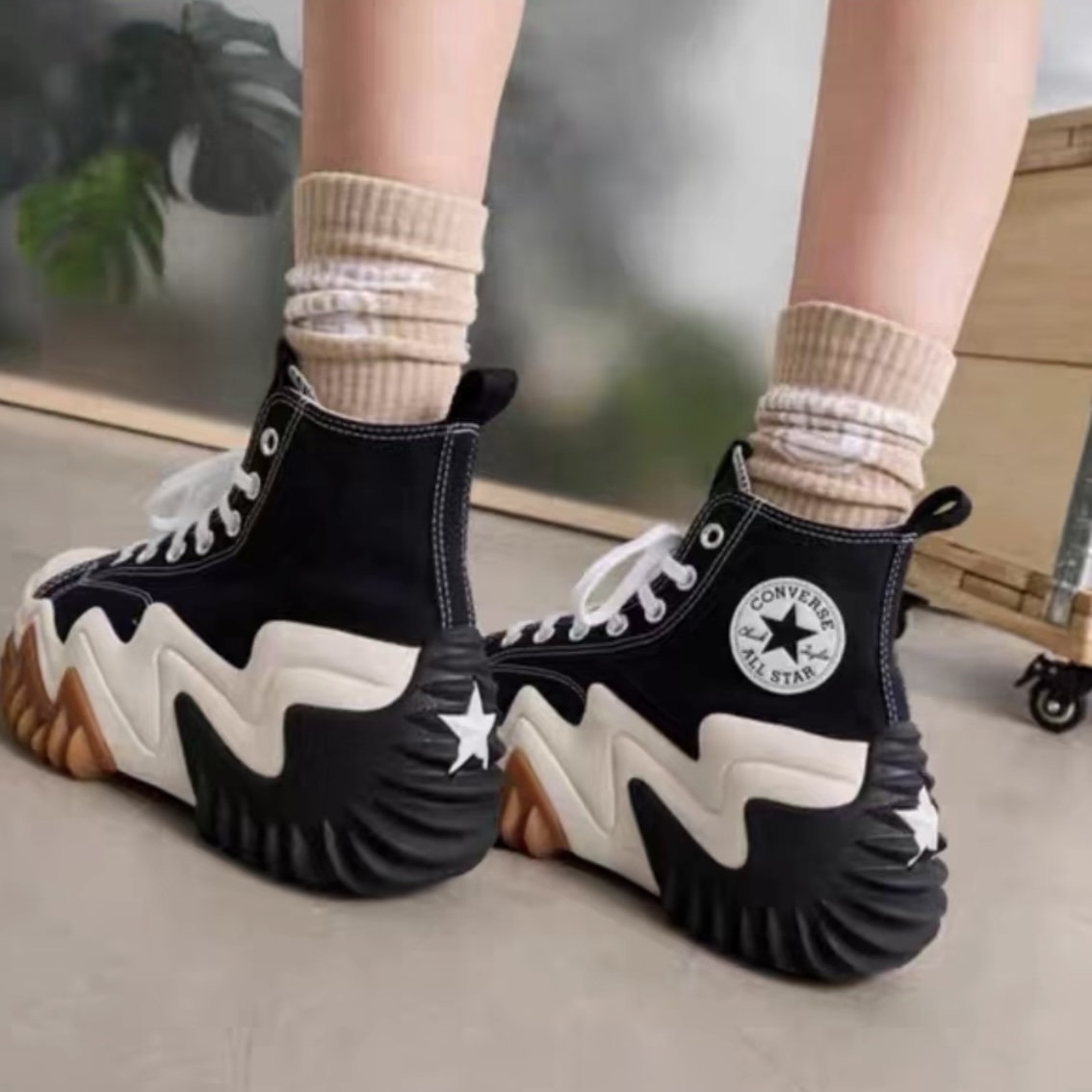 Converse Runstar Motion Black and White High-Low Future Wave Thick-Soled Height-Increasing Casual Canvas Shoes 171545C