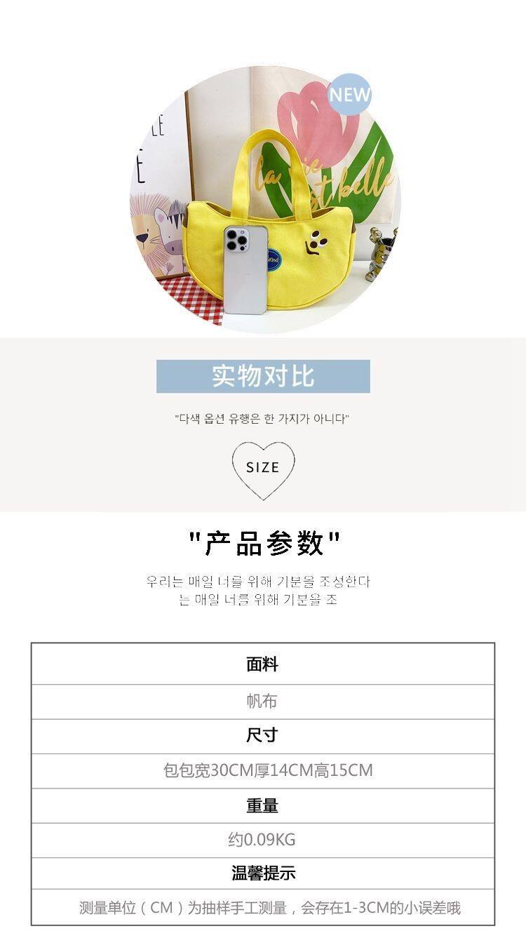 New Cute Cartoon Embroidered Canvas Bag, Handbag for Office Workers, Tote Bag for Moms Going Out, Small Bag for Carrying Miscellaneous Items