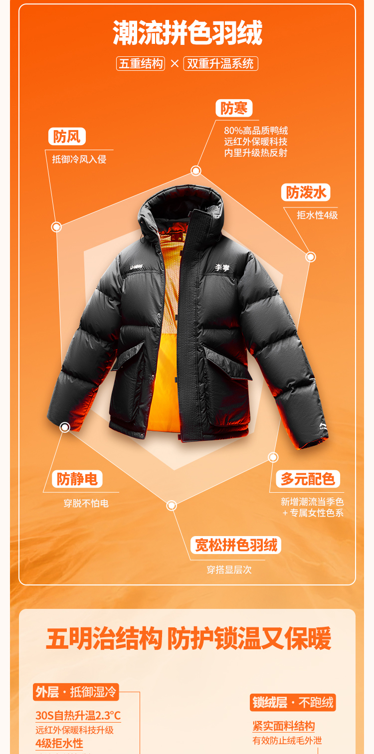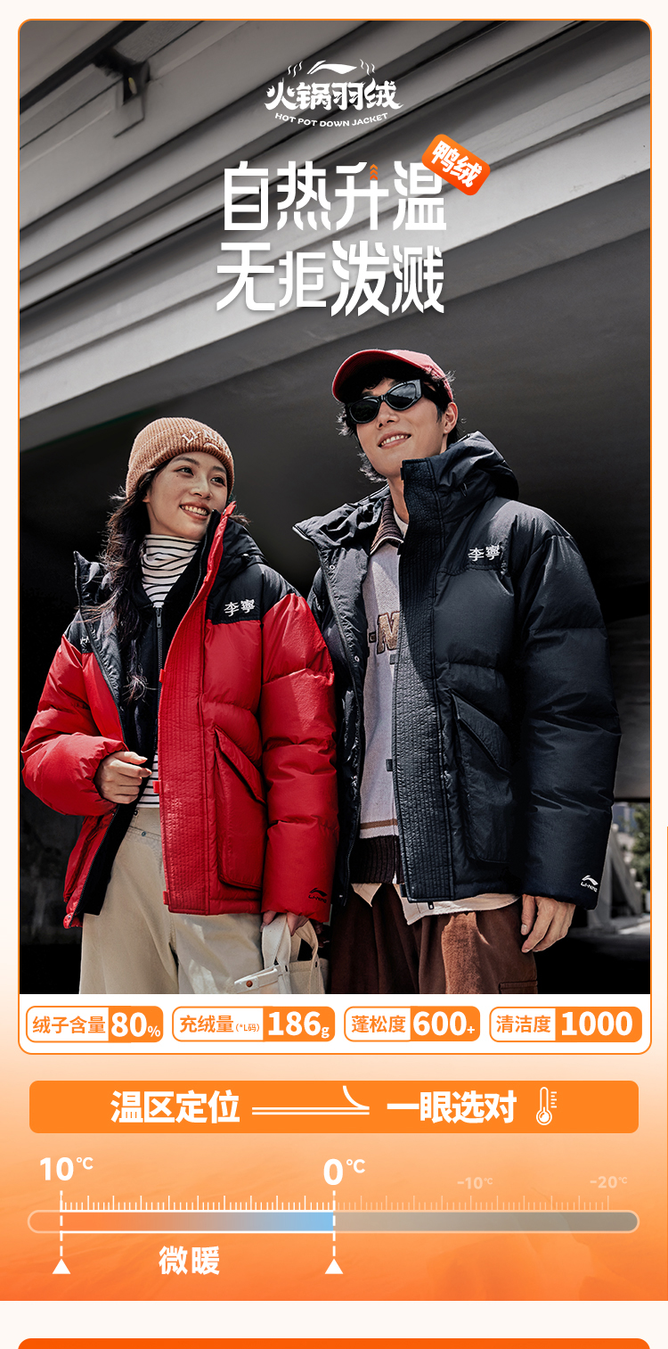 Li-Ning Hot Pot down Jacket | Couple's Winter Short Jacket for Women, Parka Workwear, Red Warm Sports Jacket for Men