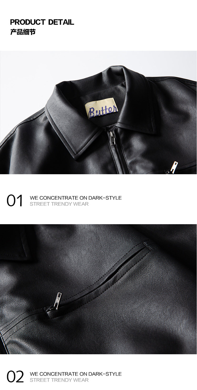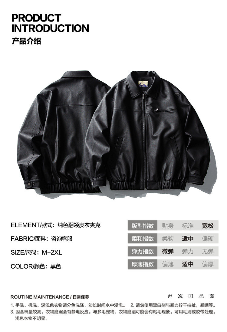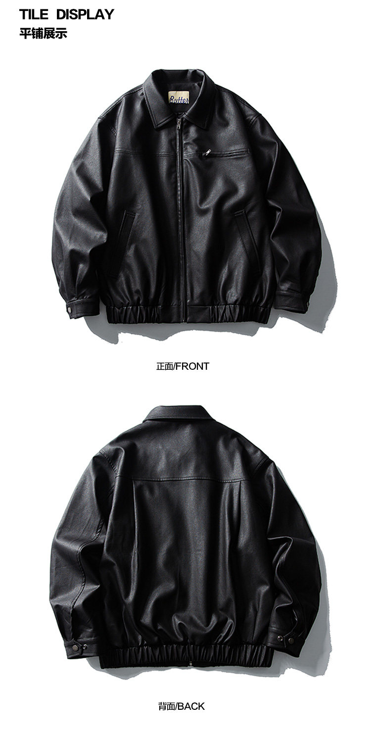 Gpstudio Handsome and High-End Matte Pu Leather Jacket for Men, Autumn High Street Outdoor Windproof Loose Biker Jacket