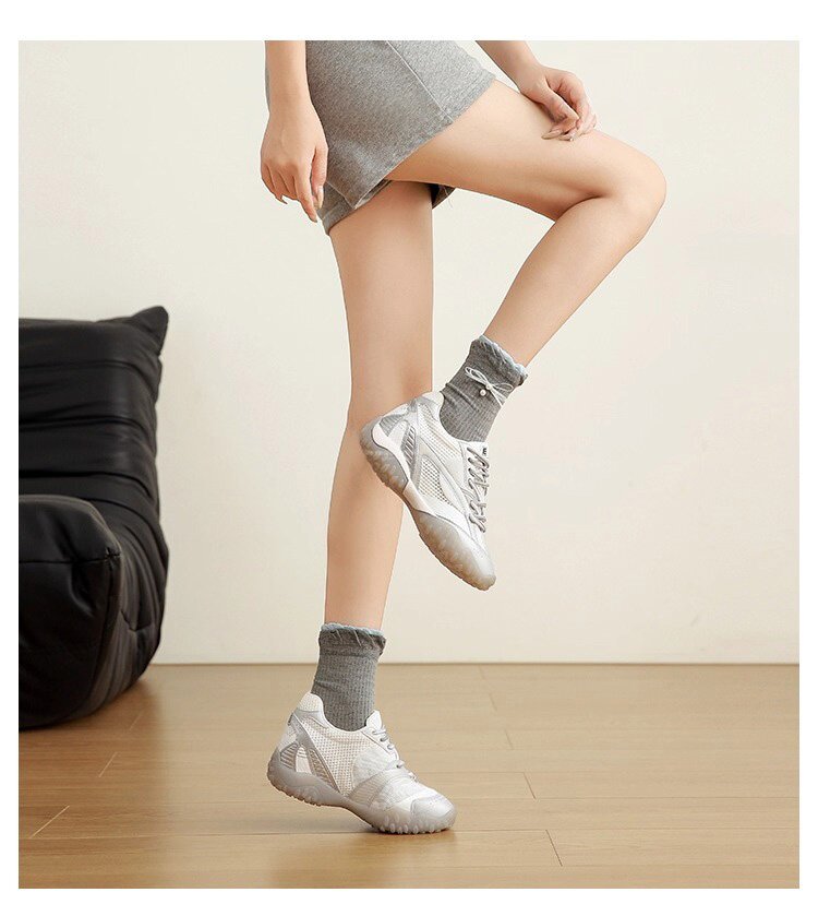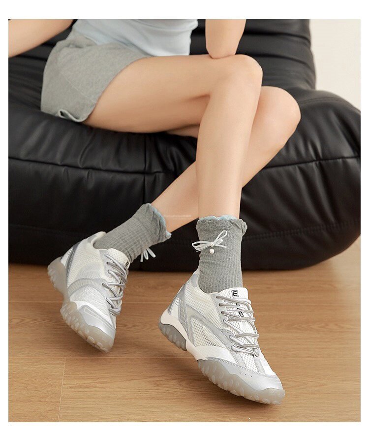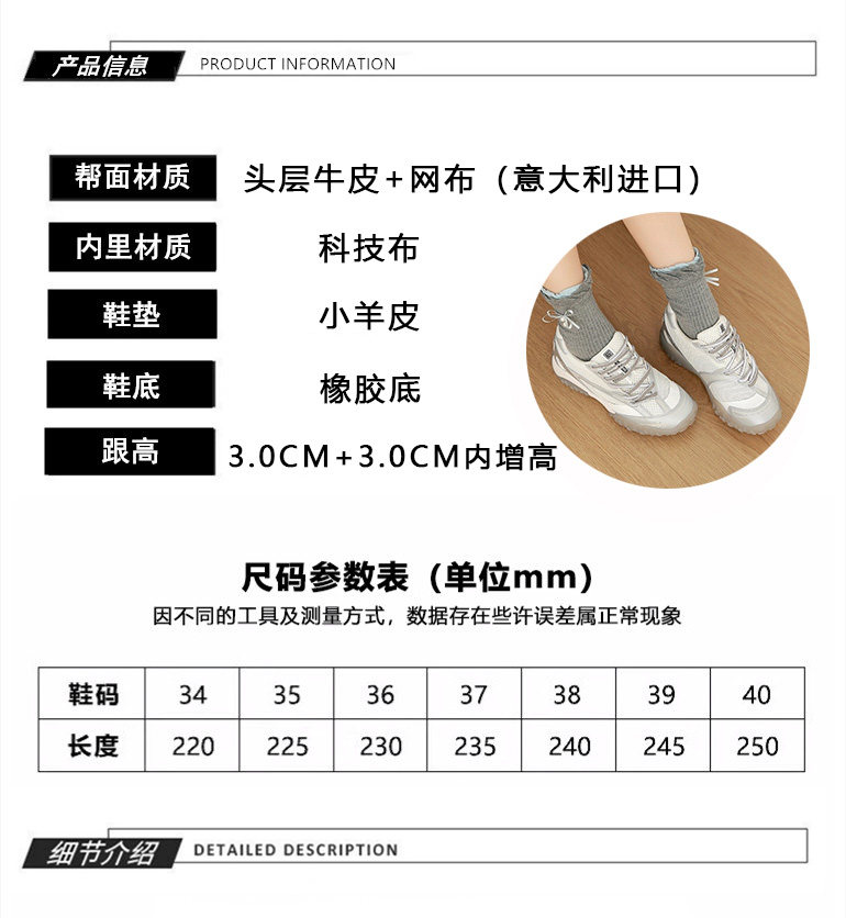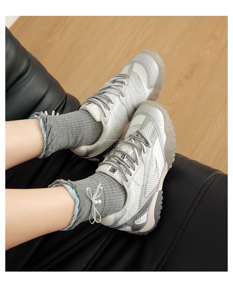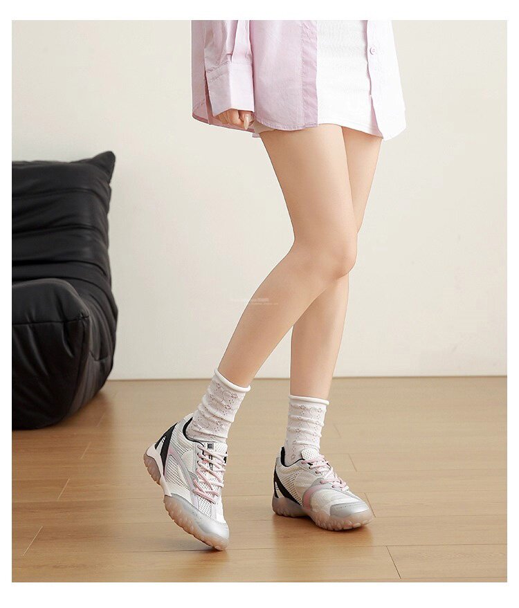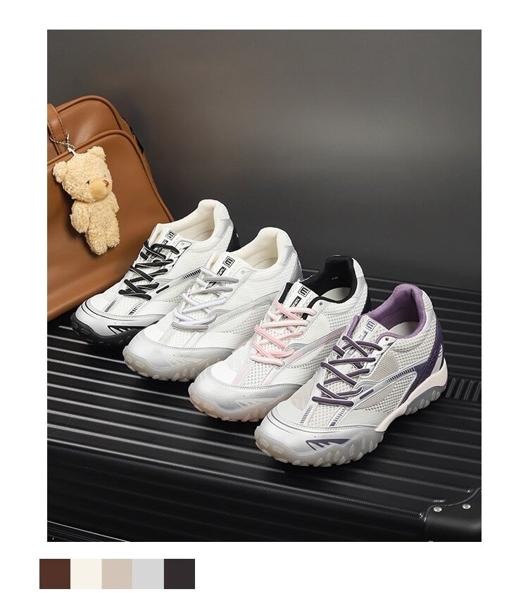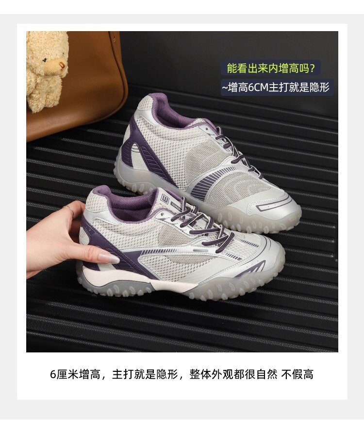 Hong Kong Genuine Leather Height-Increasing Training Shoes for Women 2026 Summer New Mesh Breathable Versatile Sports Casual Shoes