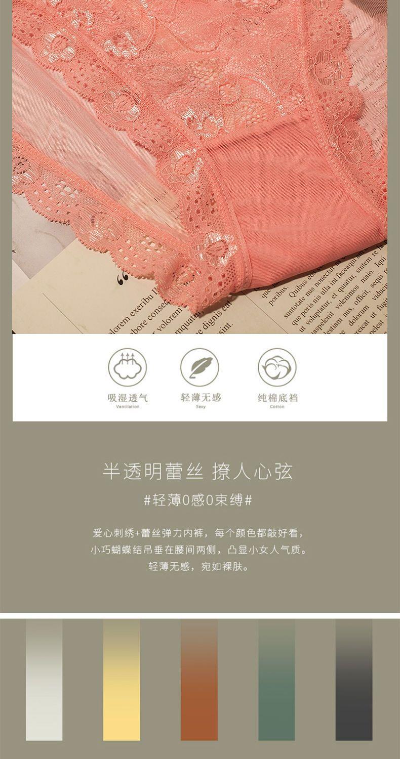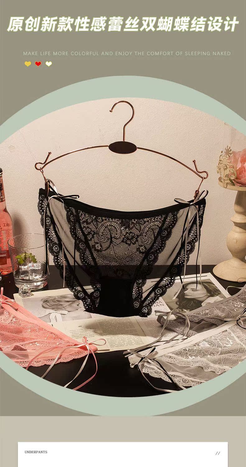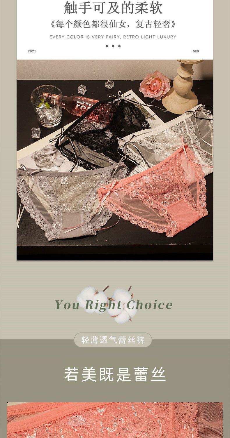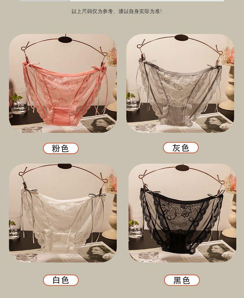 Girly Lace Transparent Thin Panties, Feminine Bow, Pure Desire, Low-Waist Butt-Lifting Briefs