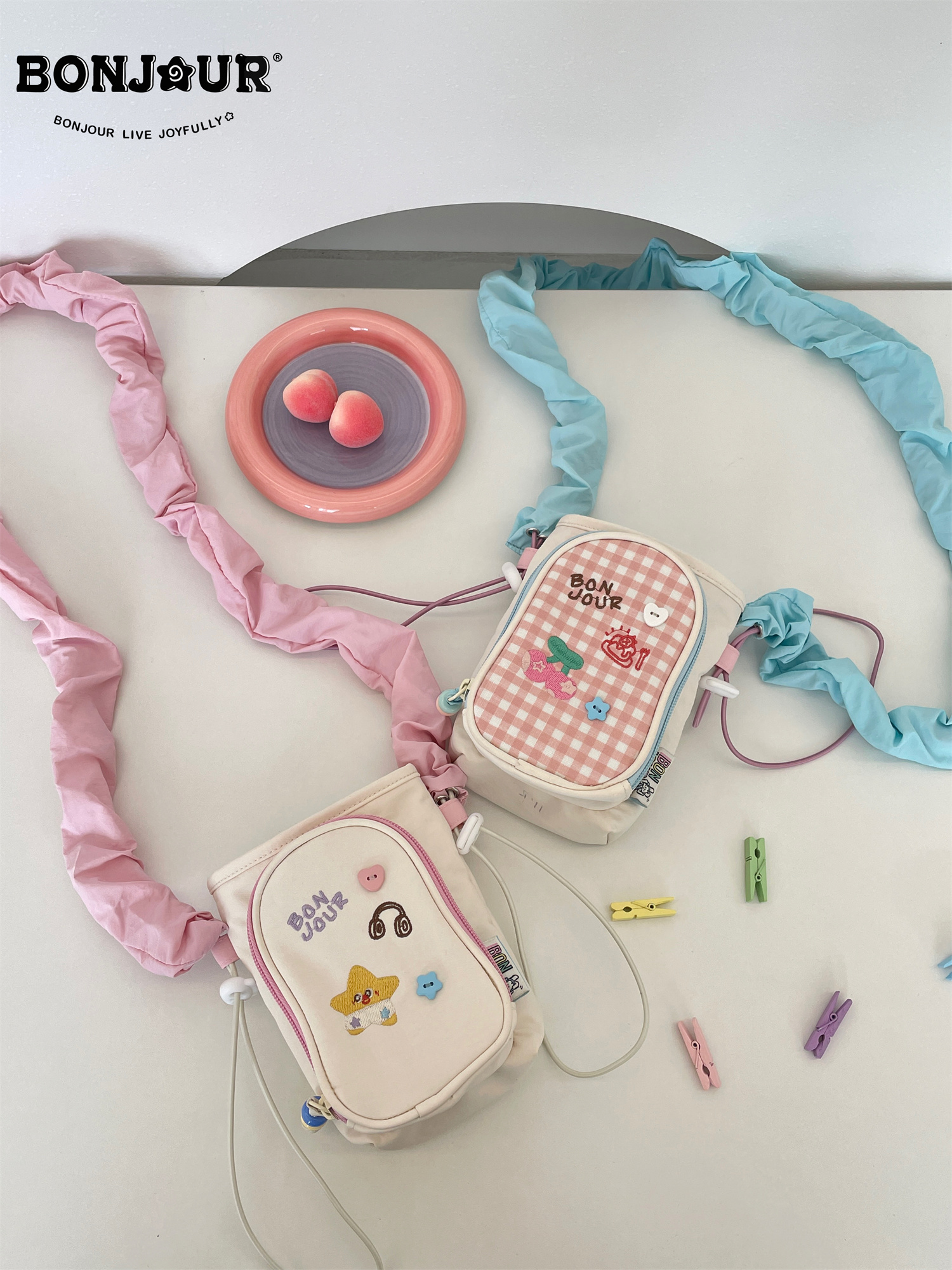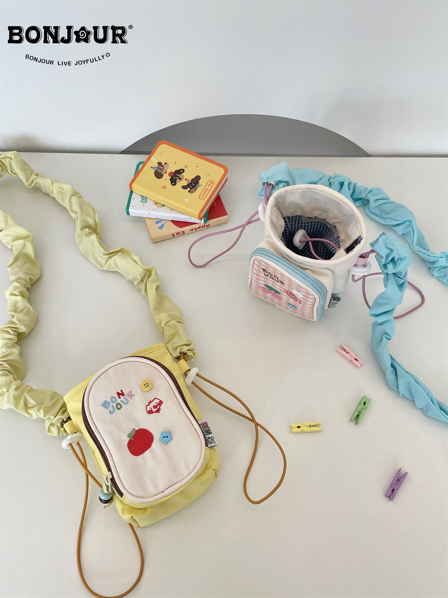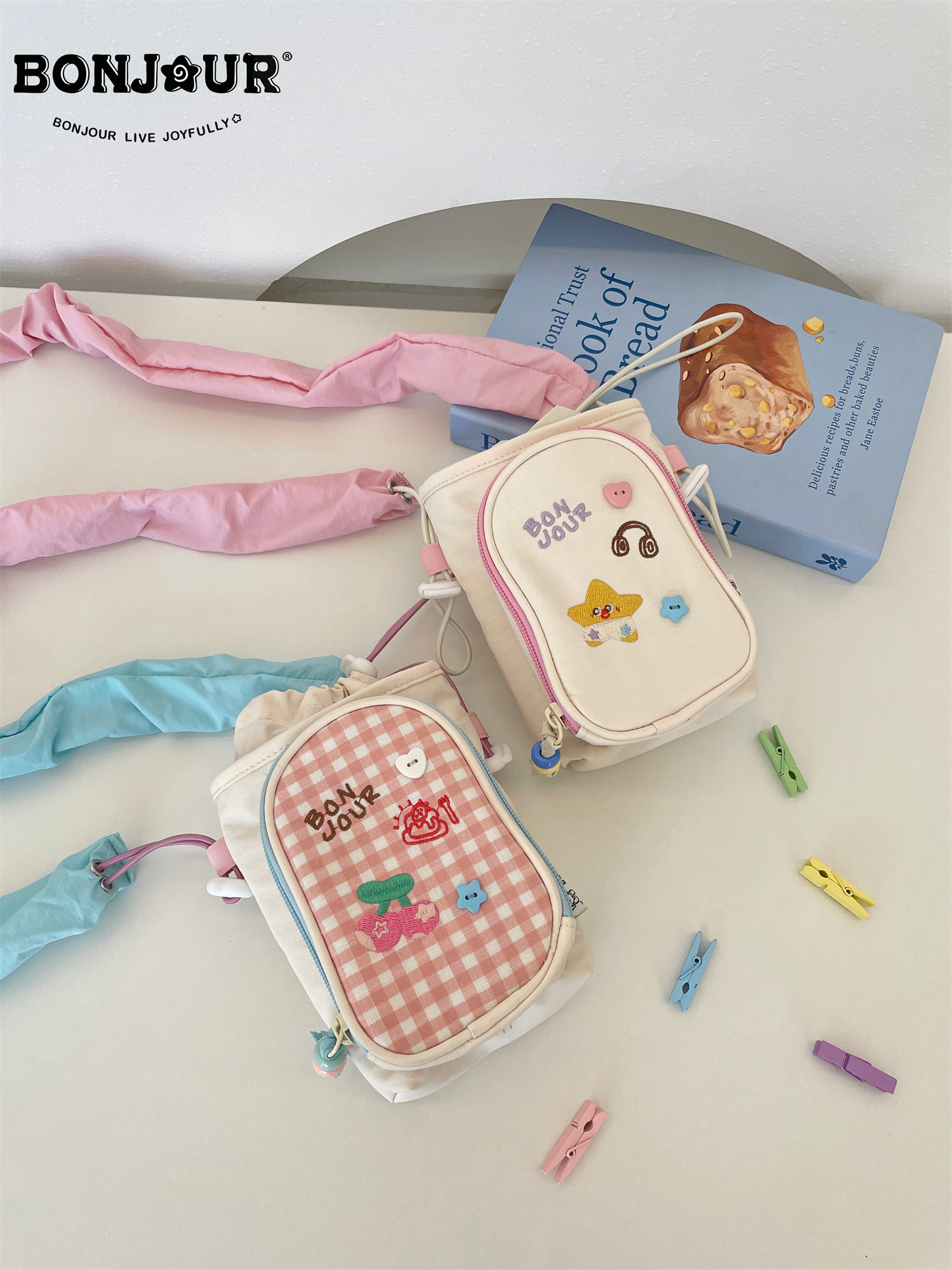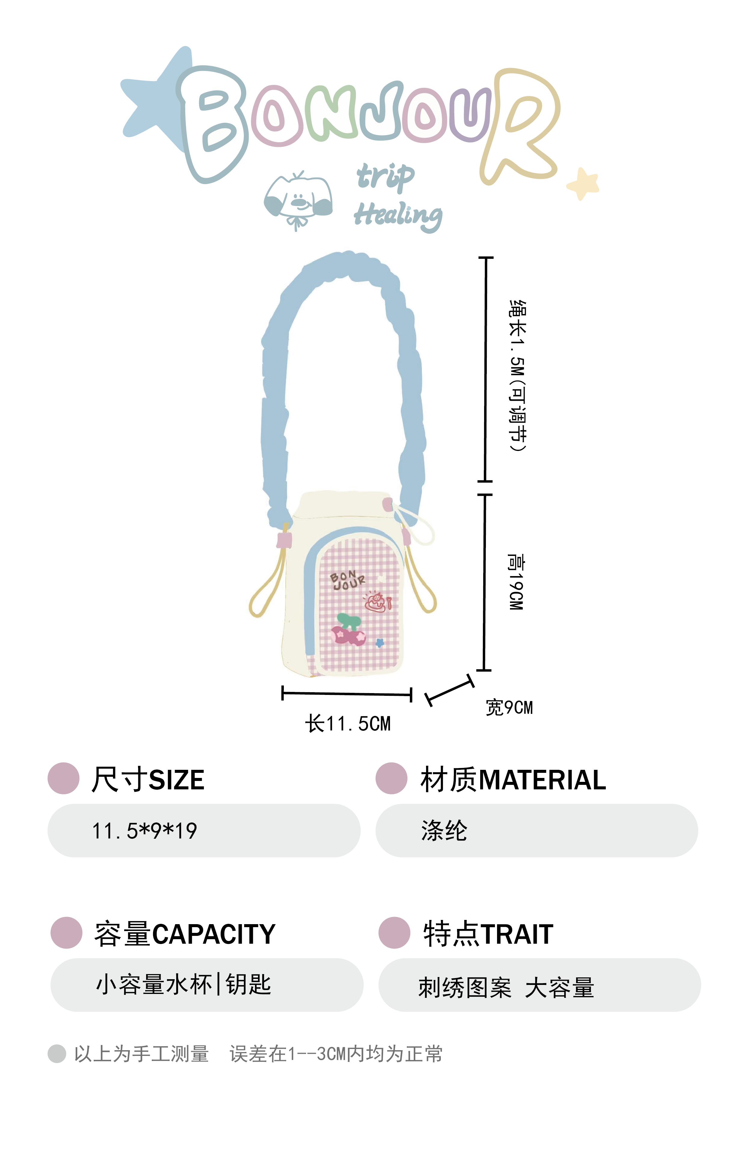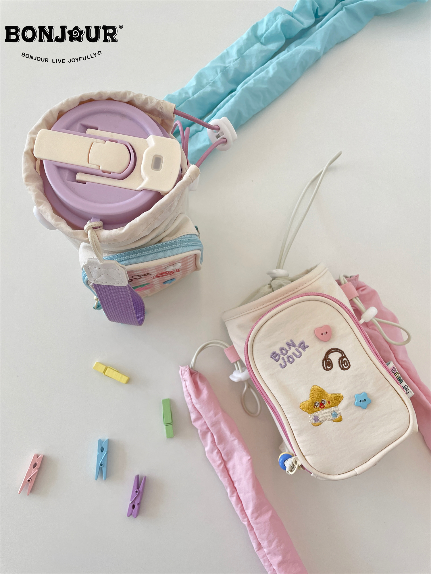 Bonjour New Drawstring Crossbody Bag, Shoulder Water Bottle Bag, Girl's Phone Bag, Student Portable Small Bag for Going Out