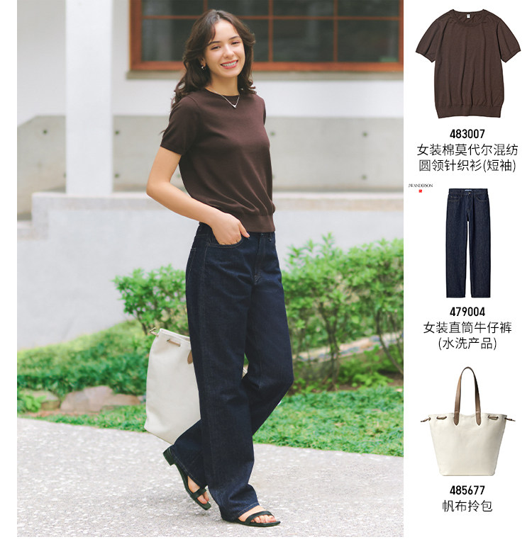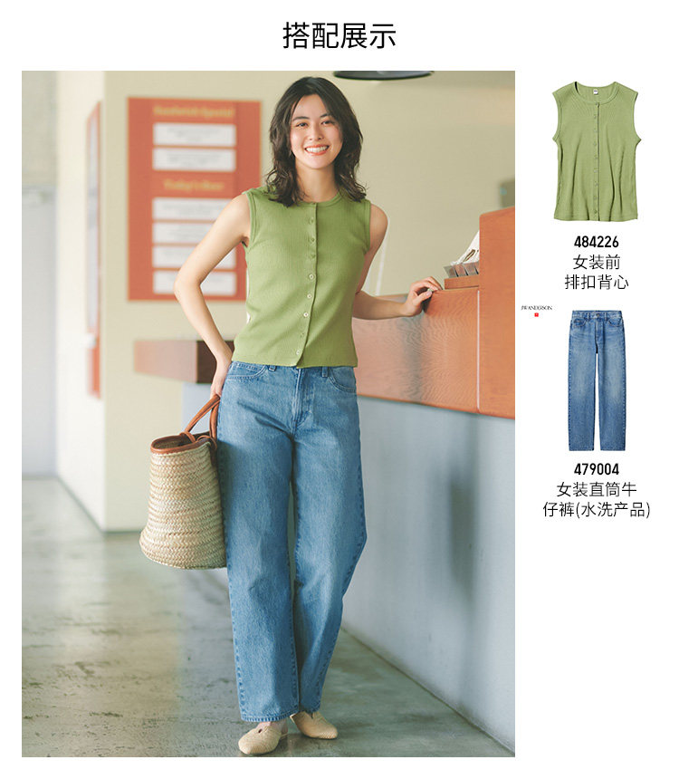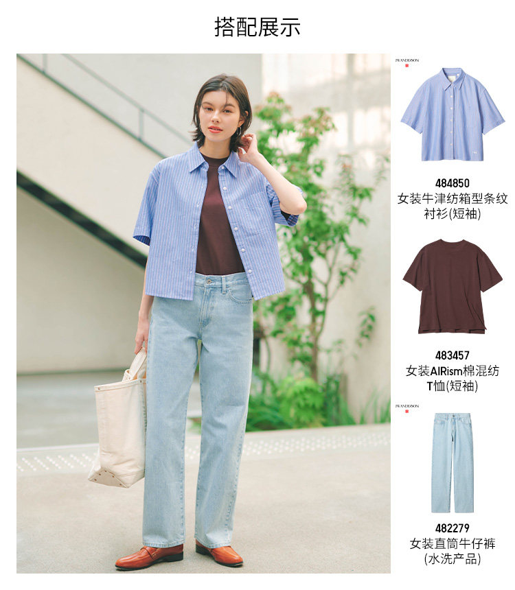 Regular Style Uniqlo Women's Straight-Leg Jeans/Mid-Waist Washed Casual Pants 479004 482279