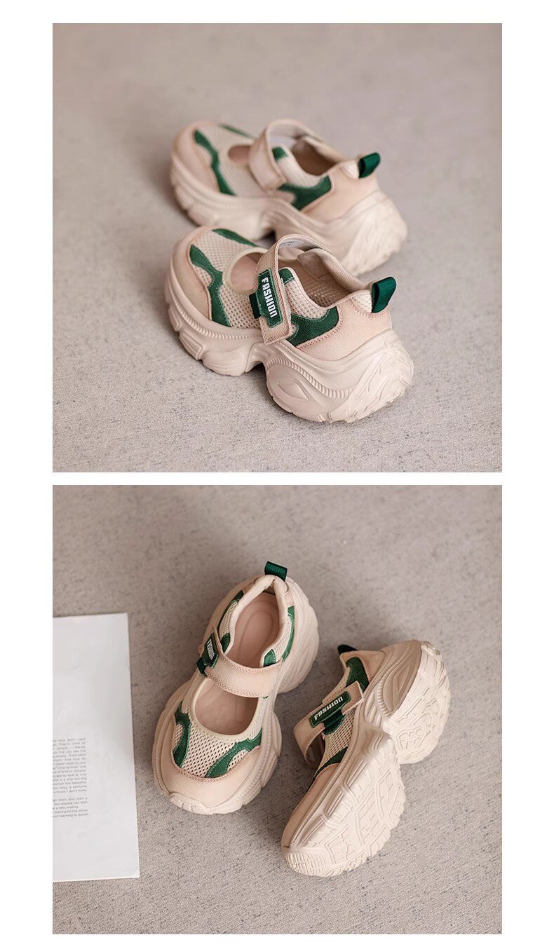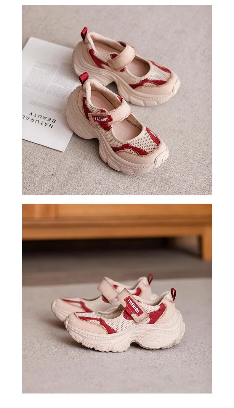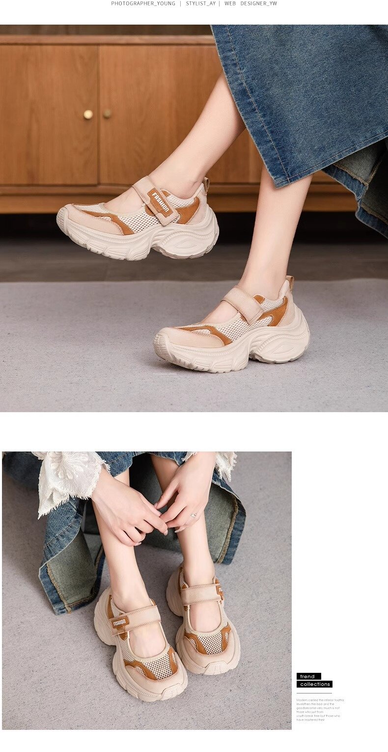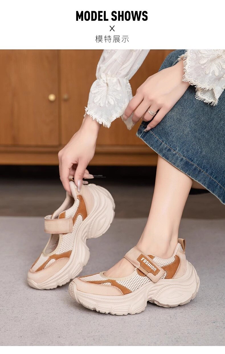 Hong Kong Thick-Soled Mesh Casual Sneakers for Women 2026 Summer New Genuine Leather Hollow Breathable Mary Jane Dad Shoes