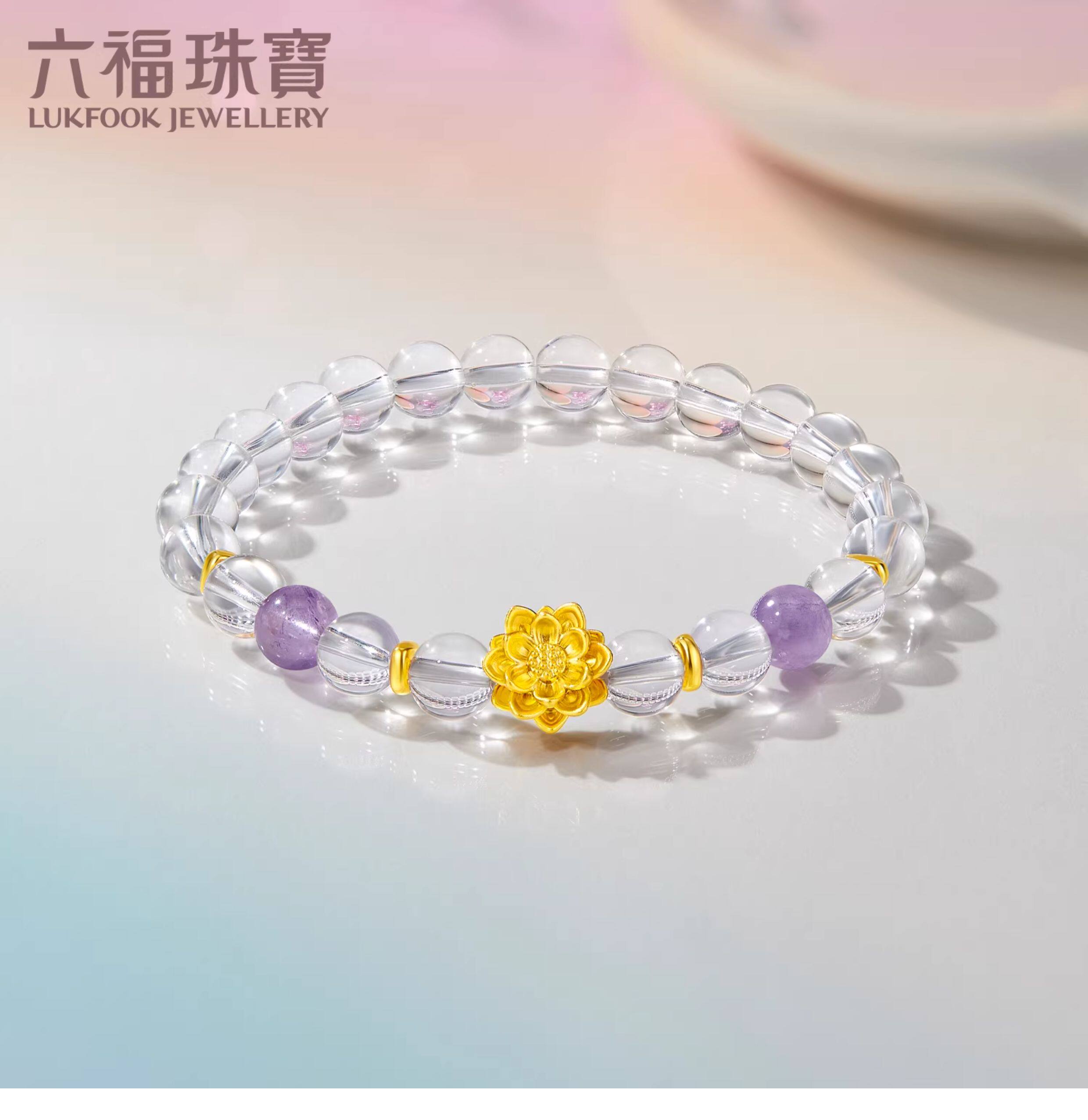 Lukfook Jewelry Lotus Flower Gold Fortune Bead Bracelet 6.5-7mm Lotus Crystal Bracelet L02A0006Ds