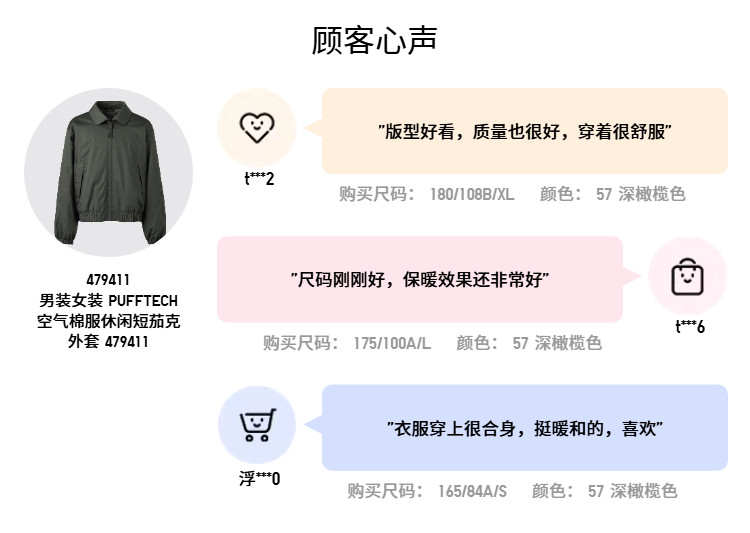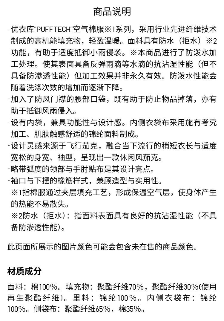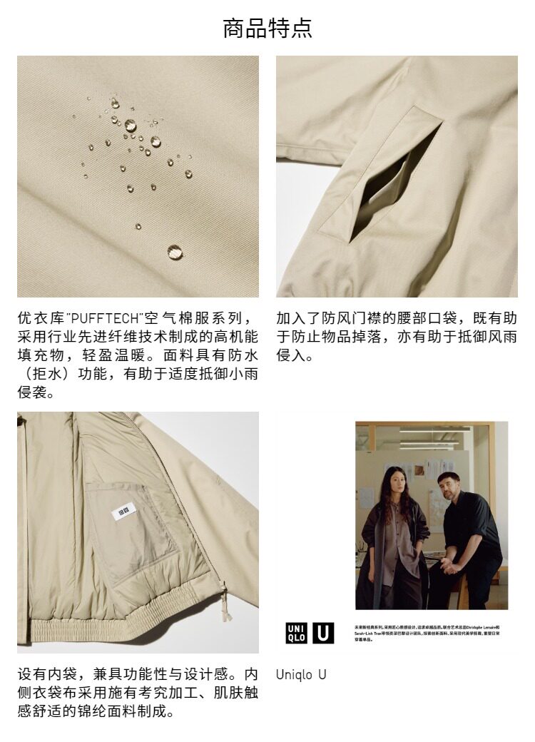 Uniqlo Collaboration Men's and Women's Pufftech Air Cotton Casual Short Jacket 479411