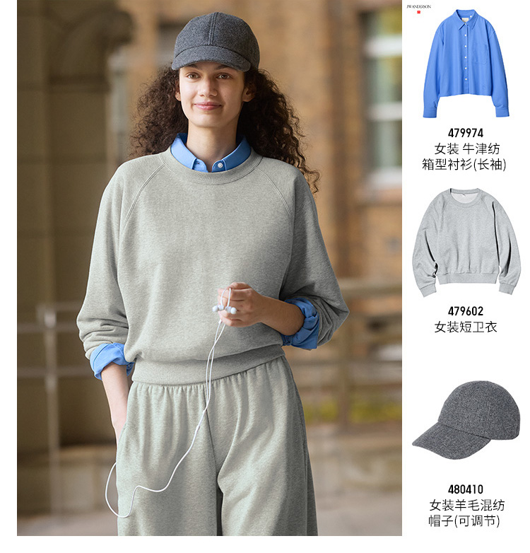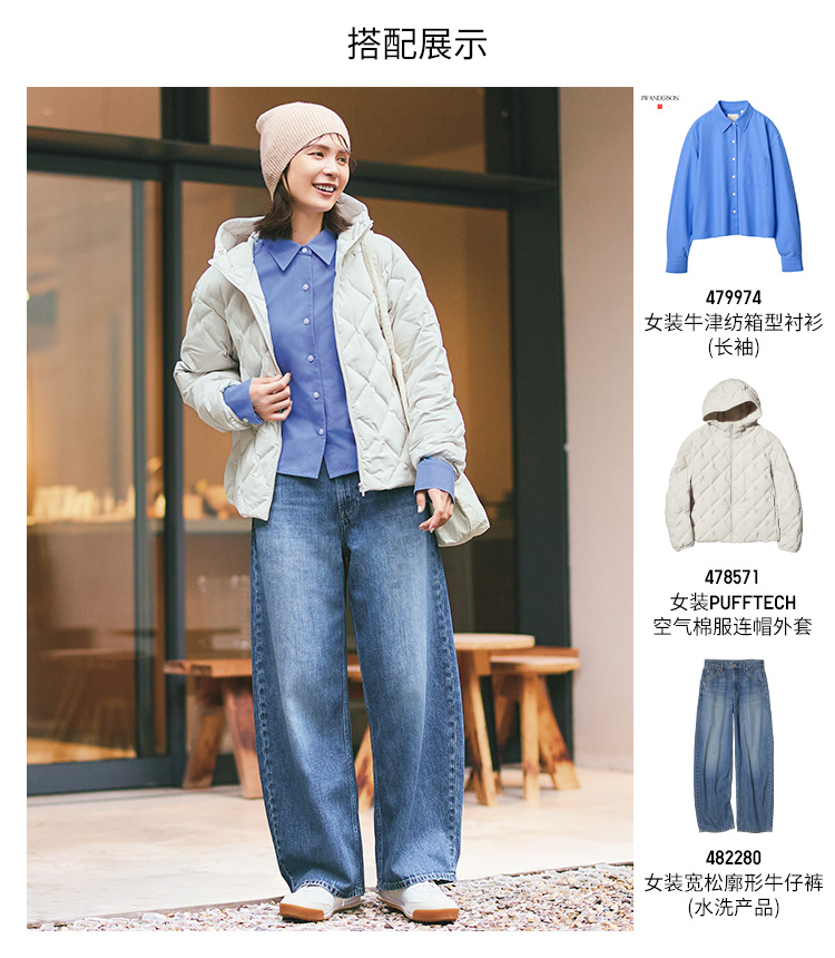 Uniqlo Women's Clothing/Unisex Oxford Fabric Boxy Shirt/Shirt Collaboration Model 25 Autumn/Winter New Style 479974