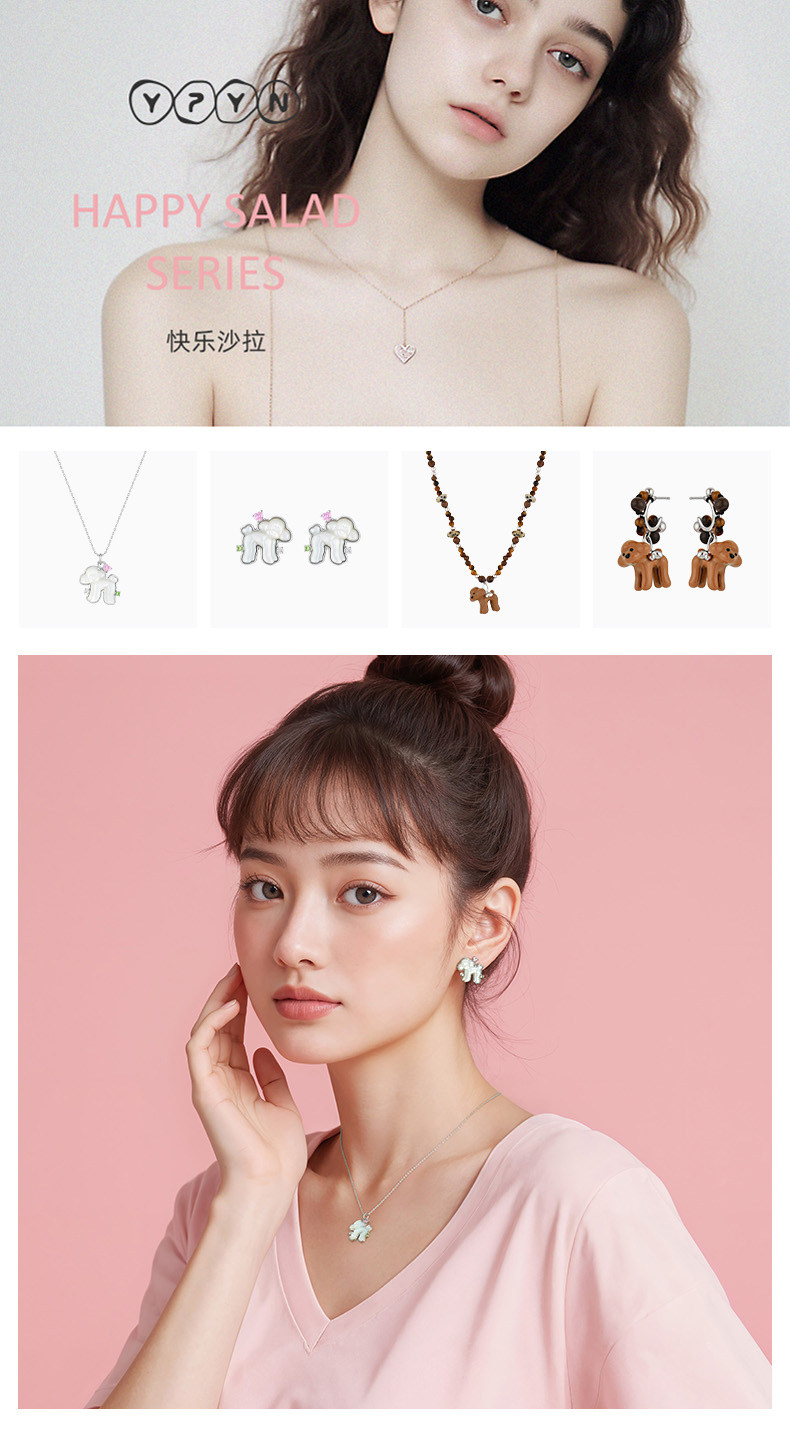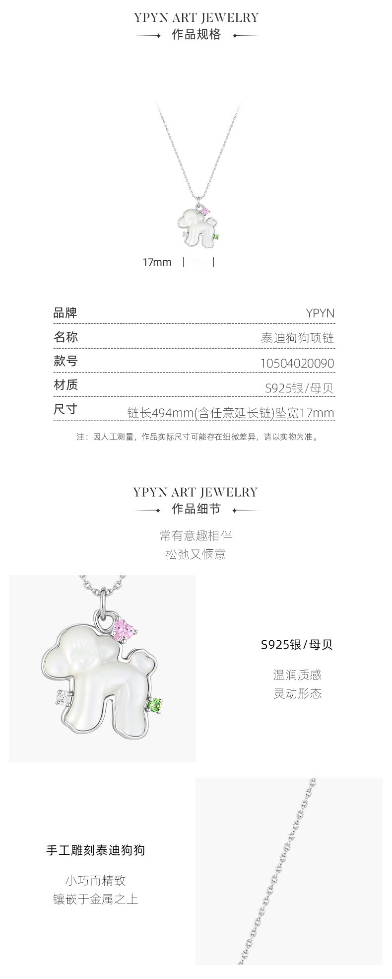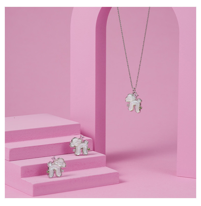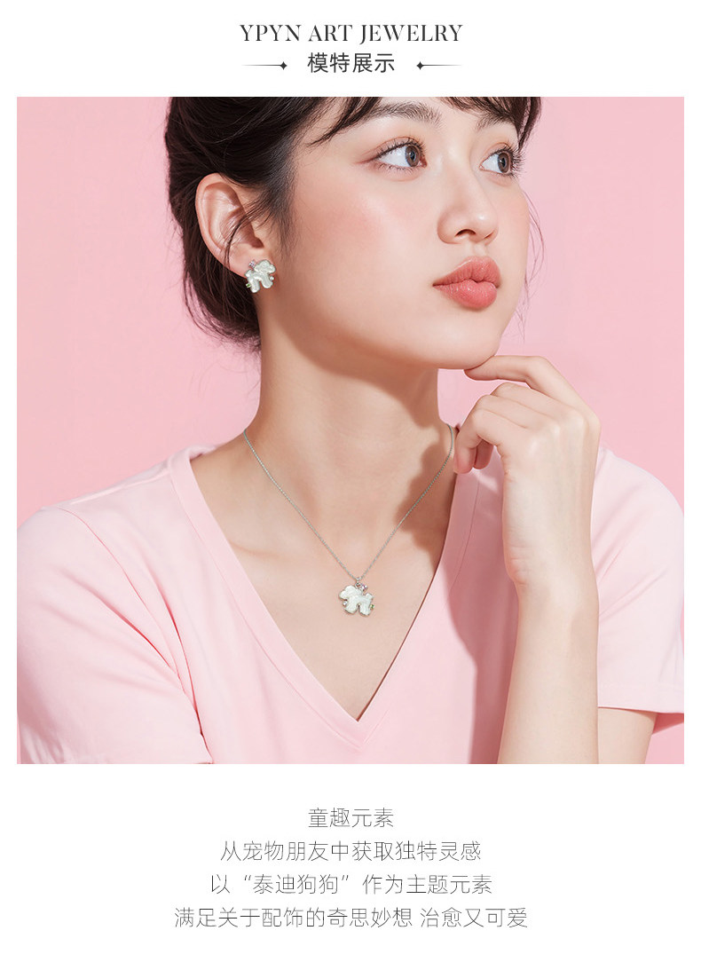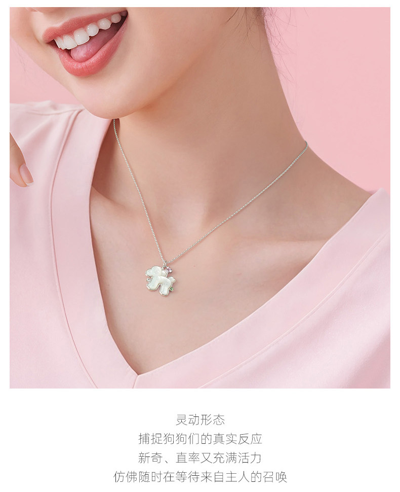 One Stroke, One Stroke Ypyn Teddy Dog Necklace S925 Silver Cute Puppy Pendant Mother-Of-Pearl White Clavicle Chain Silver