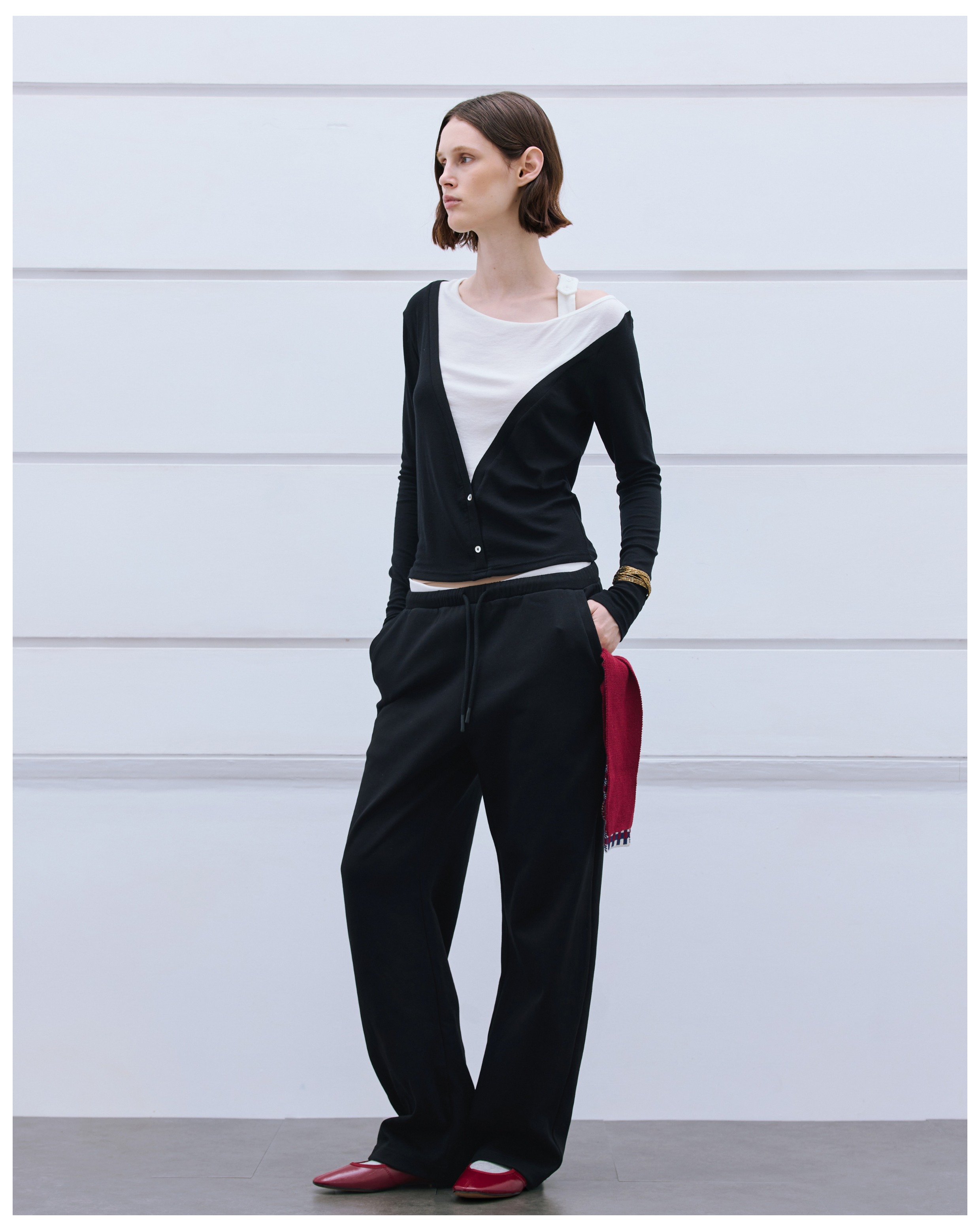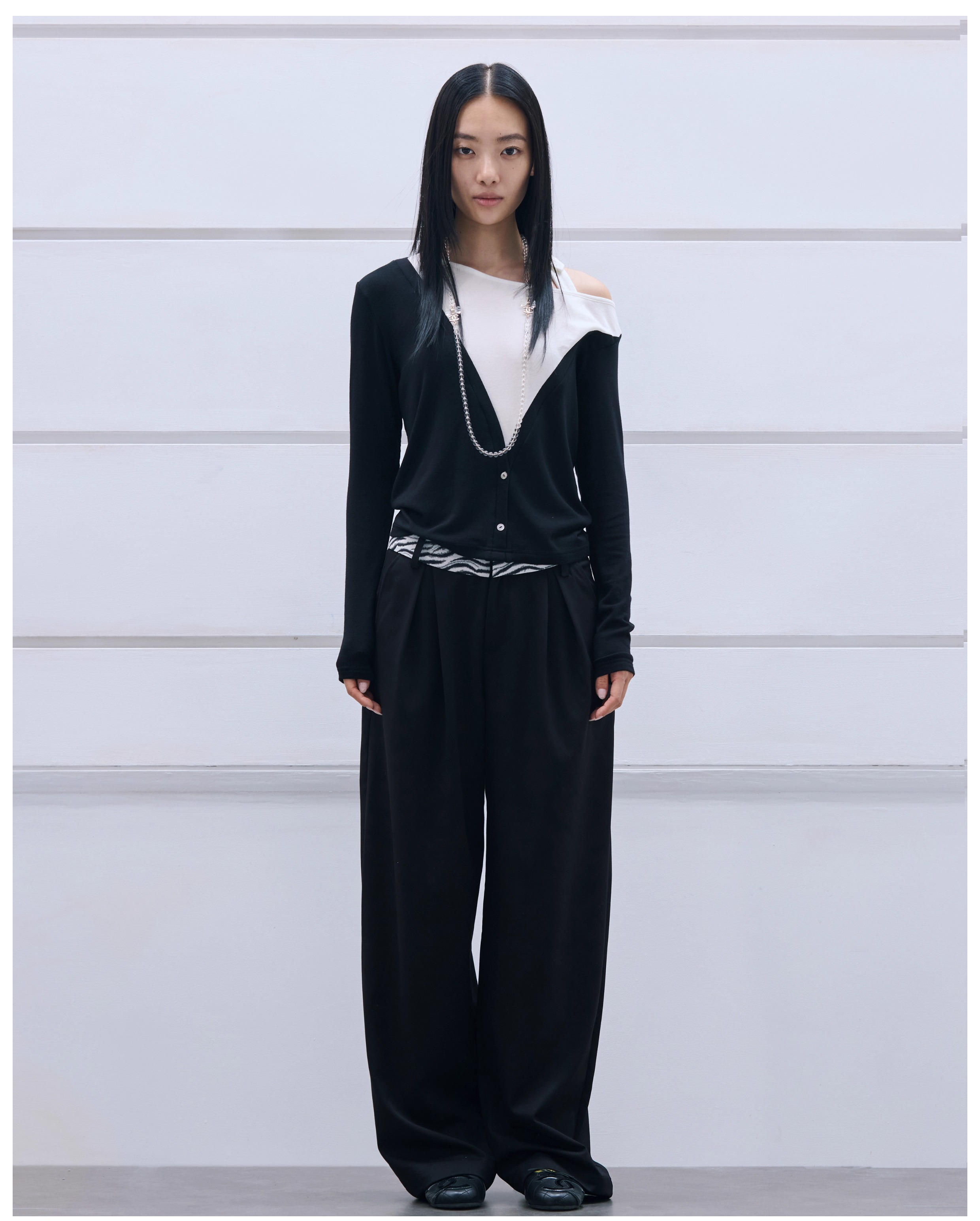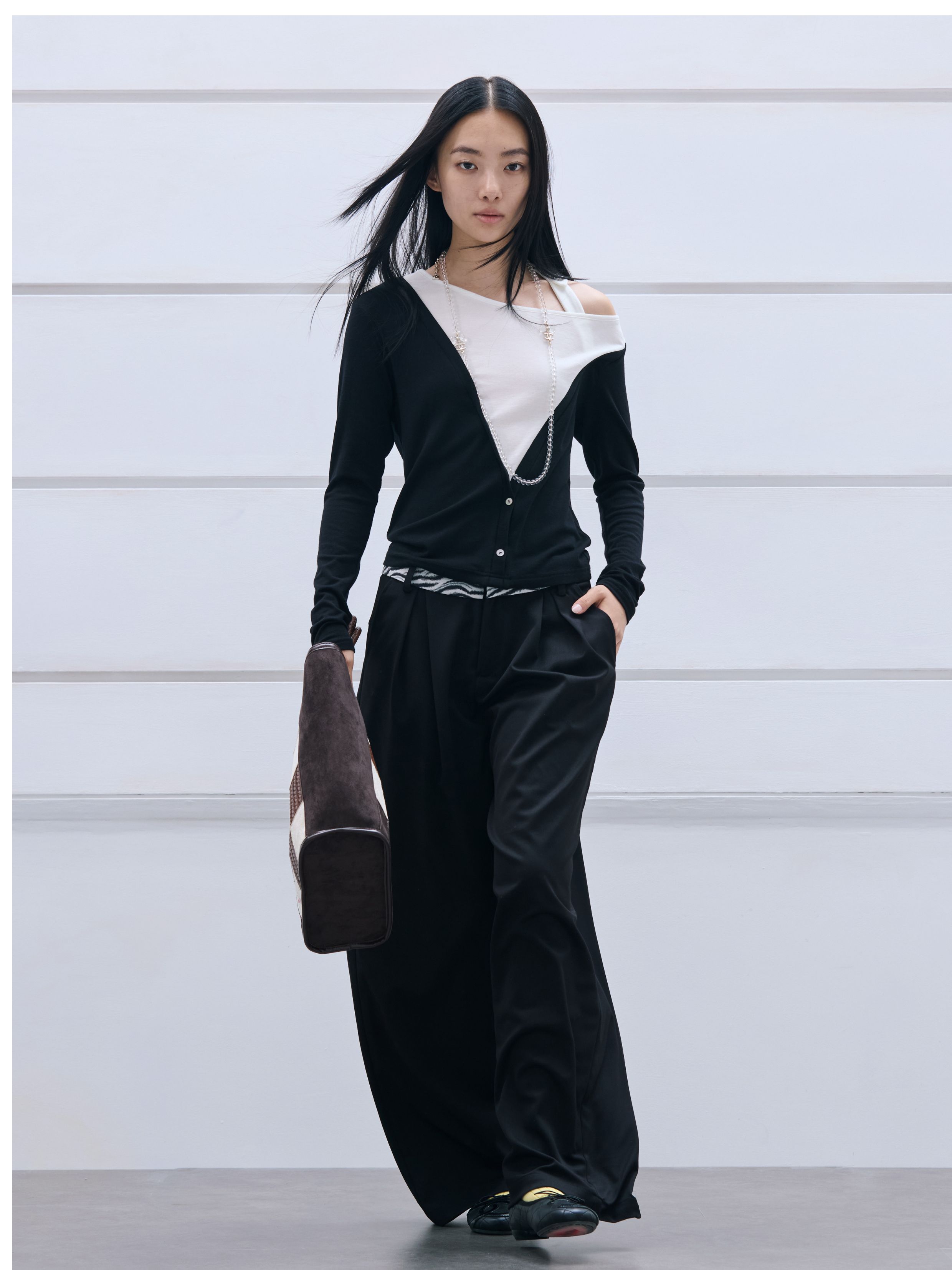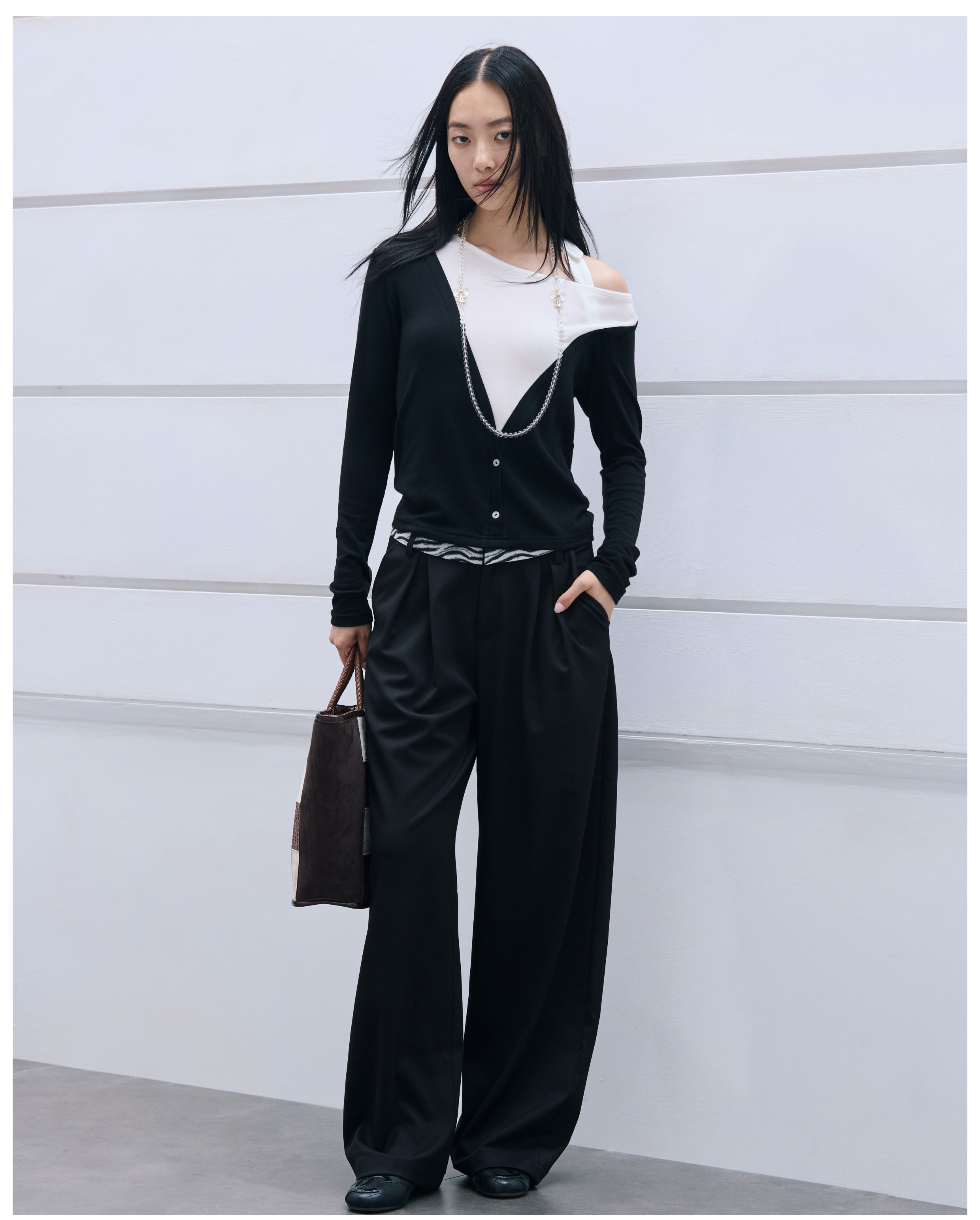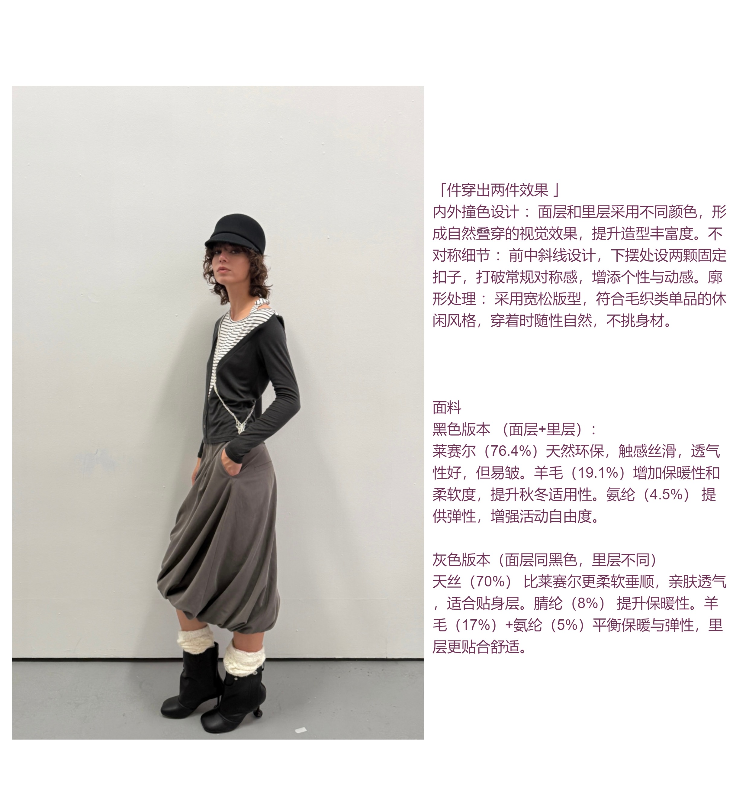 Runway Ticket 【Zhang Yifan's Style】Tencel Wool Faux Two-Piece Halter Neck Off-Shoulder Long-Sleeve T-Shirt for Women
