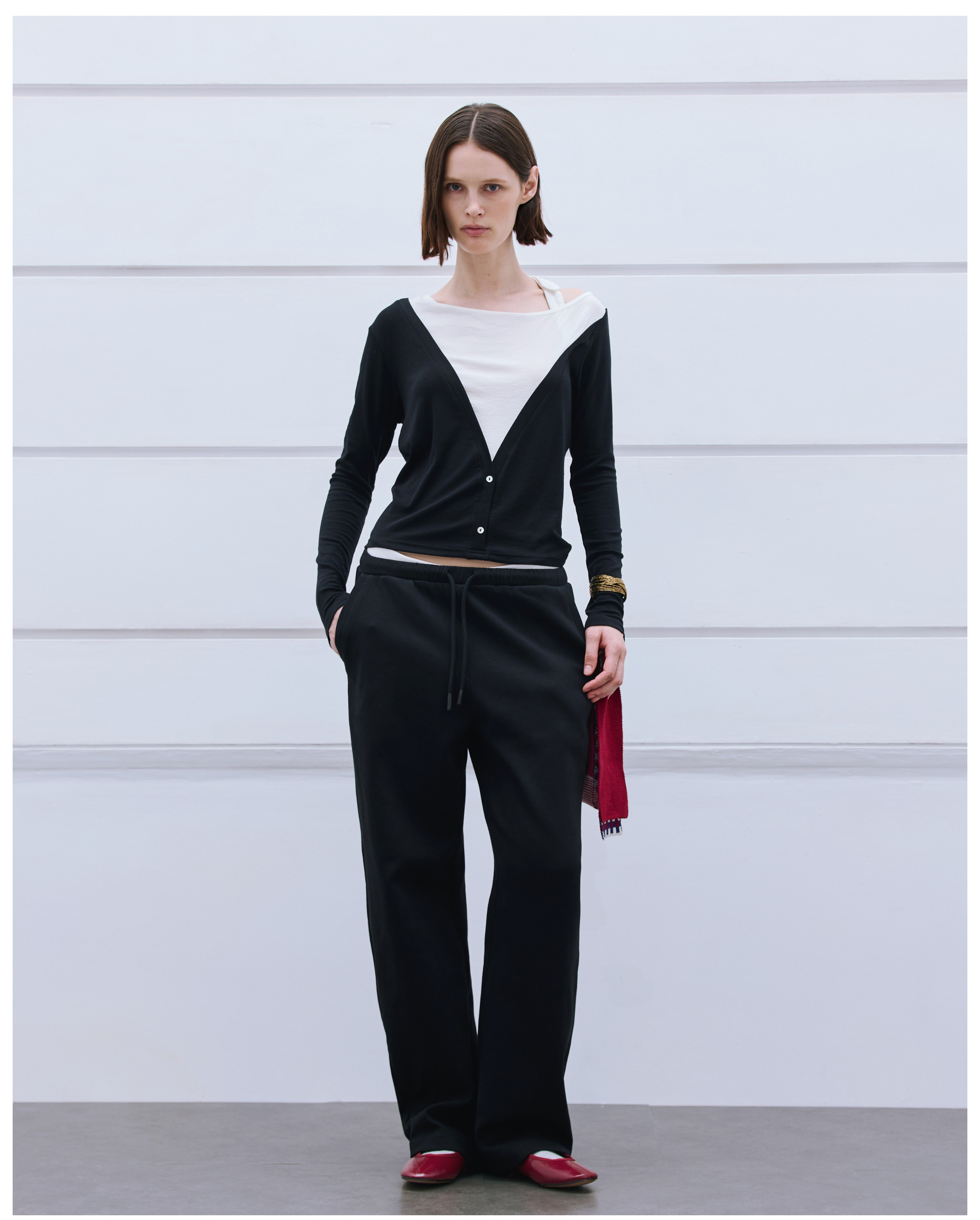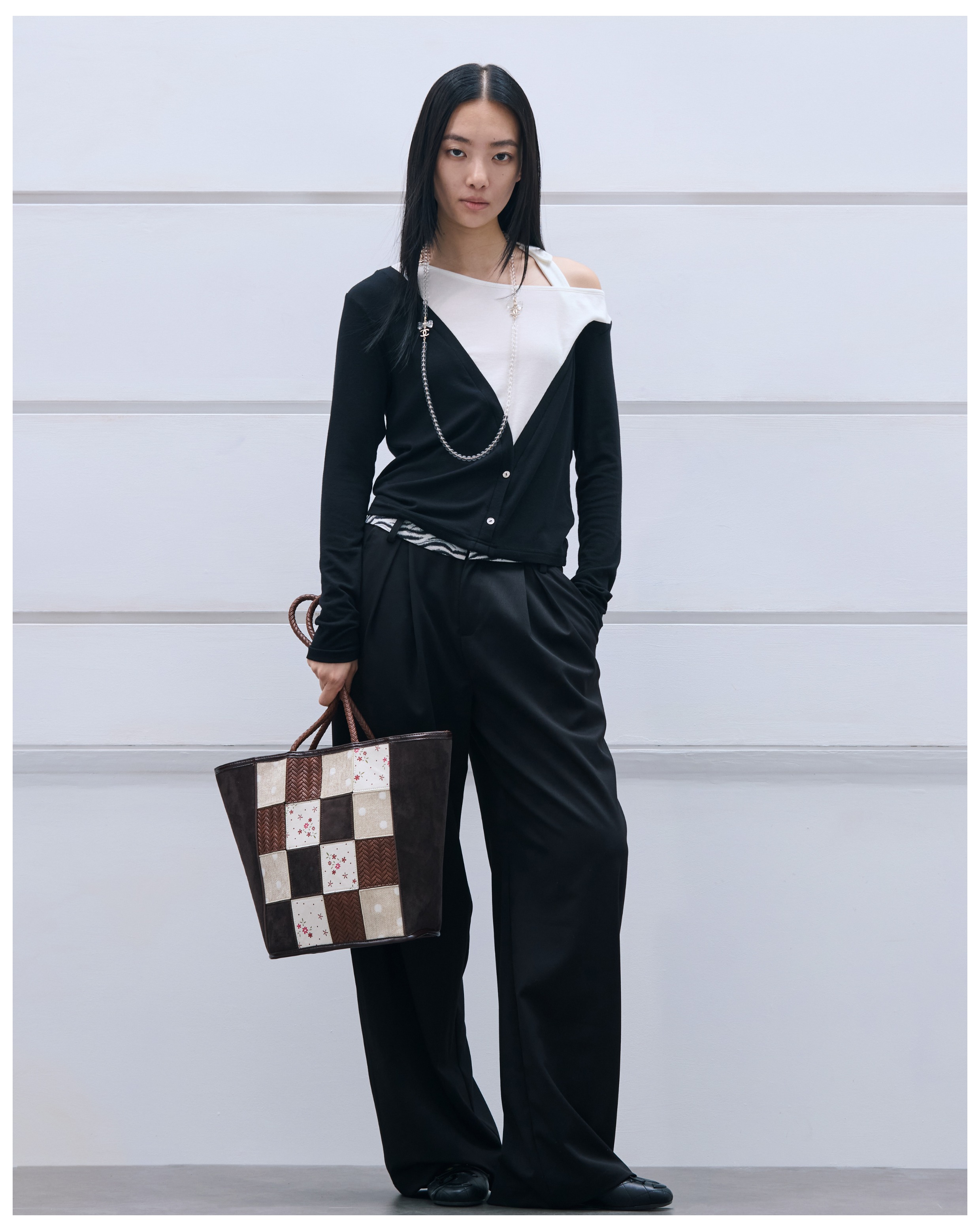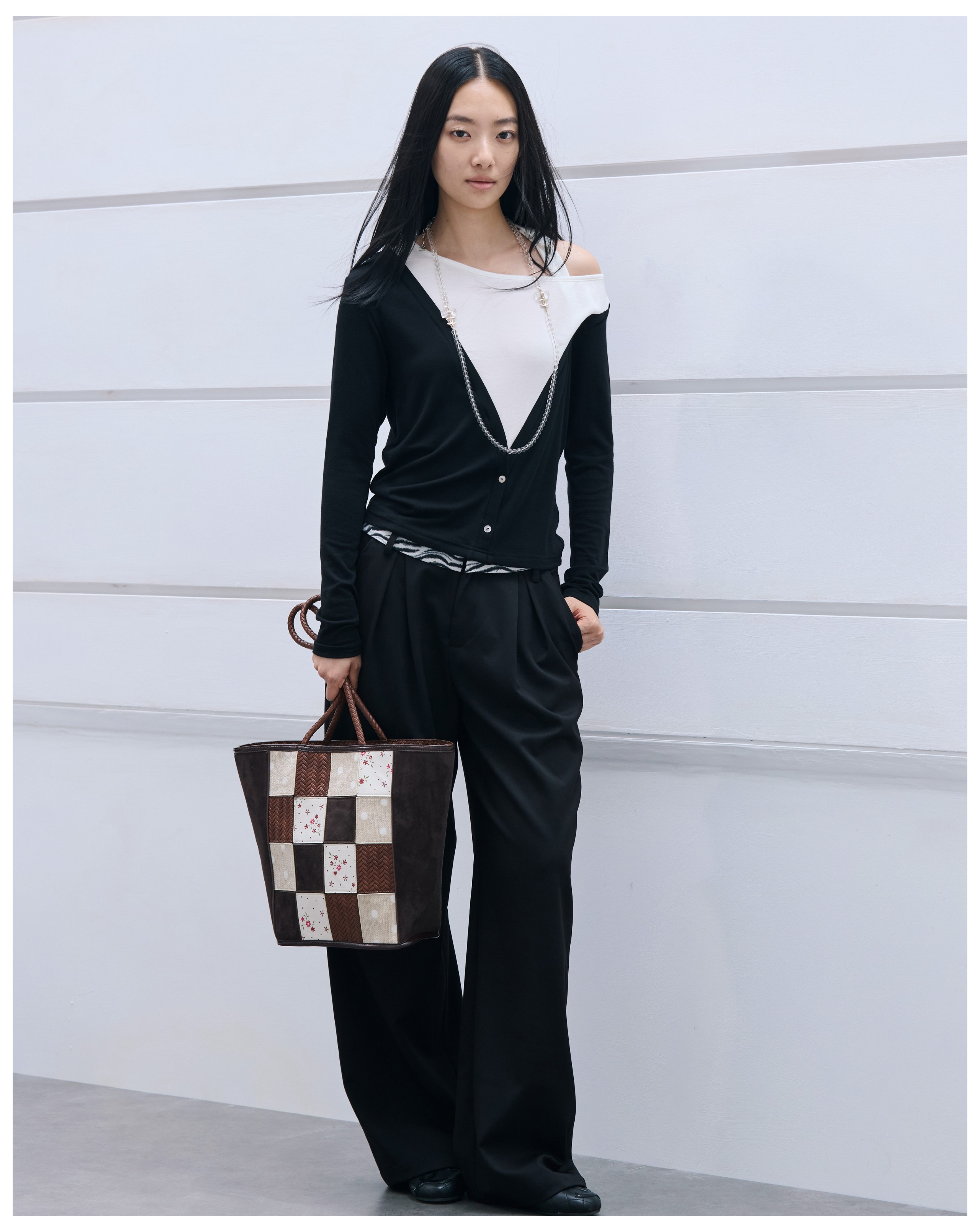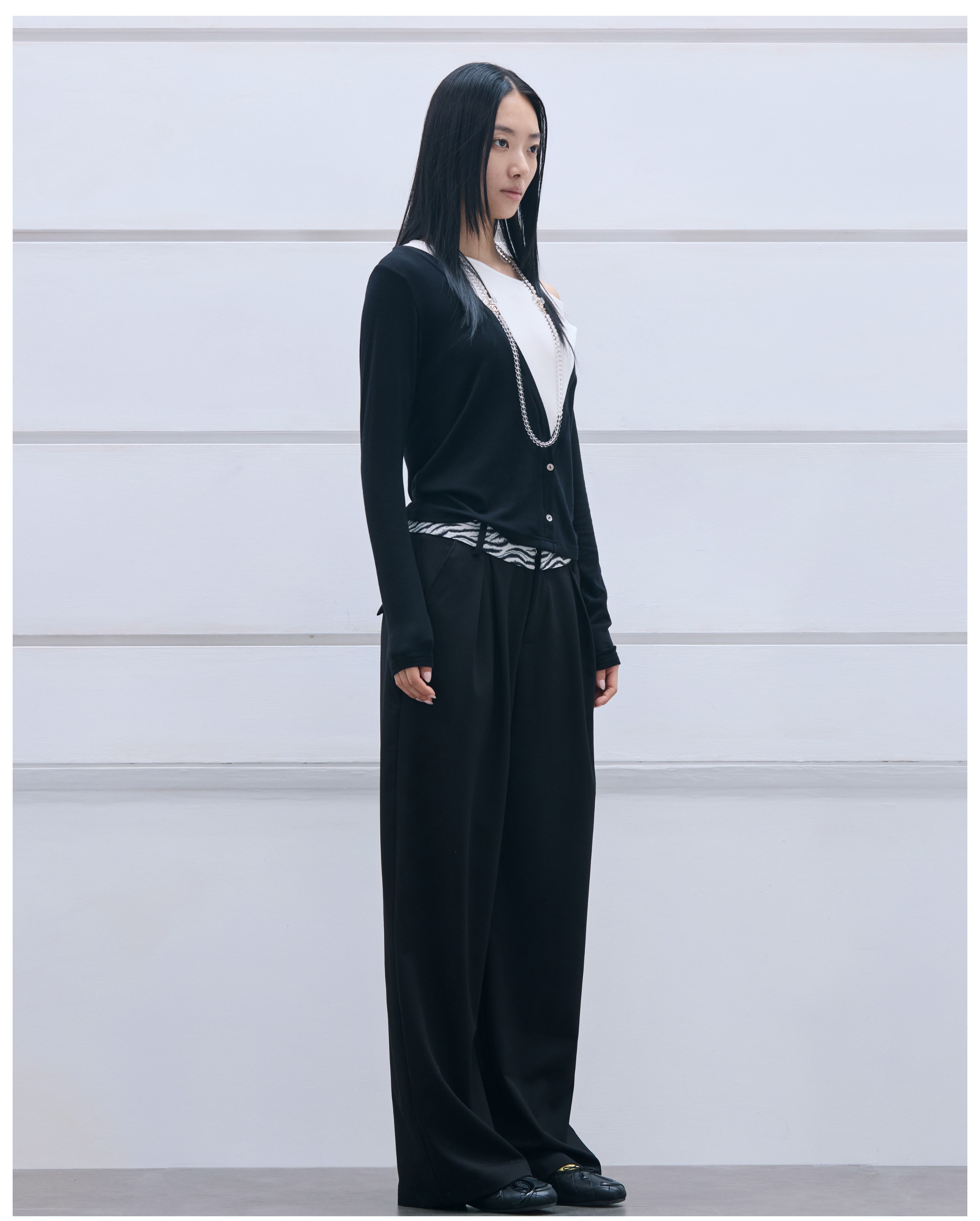 Runway Ticket 【Zhang Yifan's Style】Tencel Wool Faux Two-Piece Halter Neck Off-Shoulder Long-Sleeve T-Shirt for Women