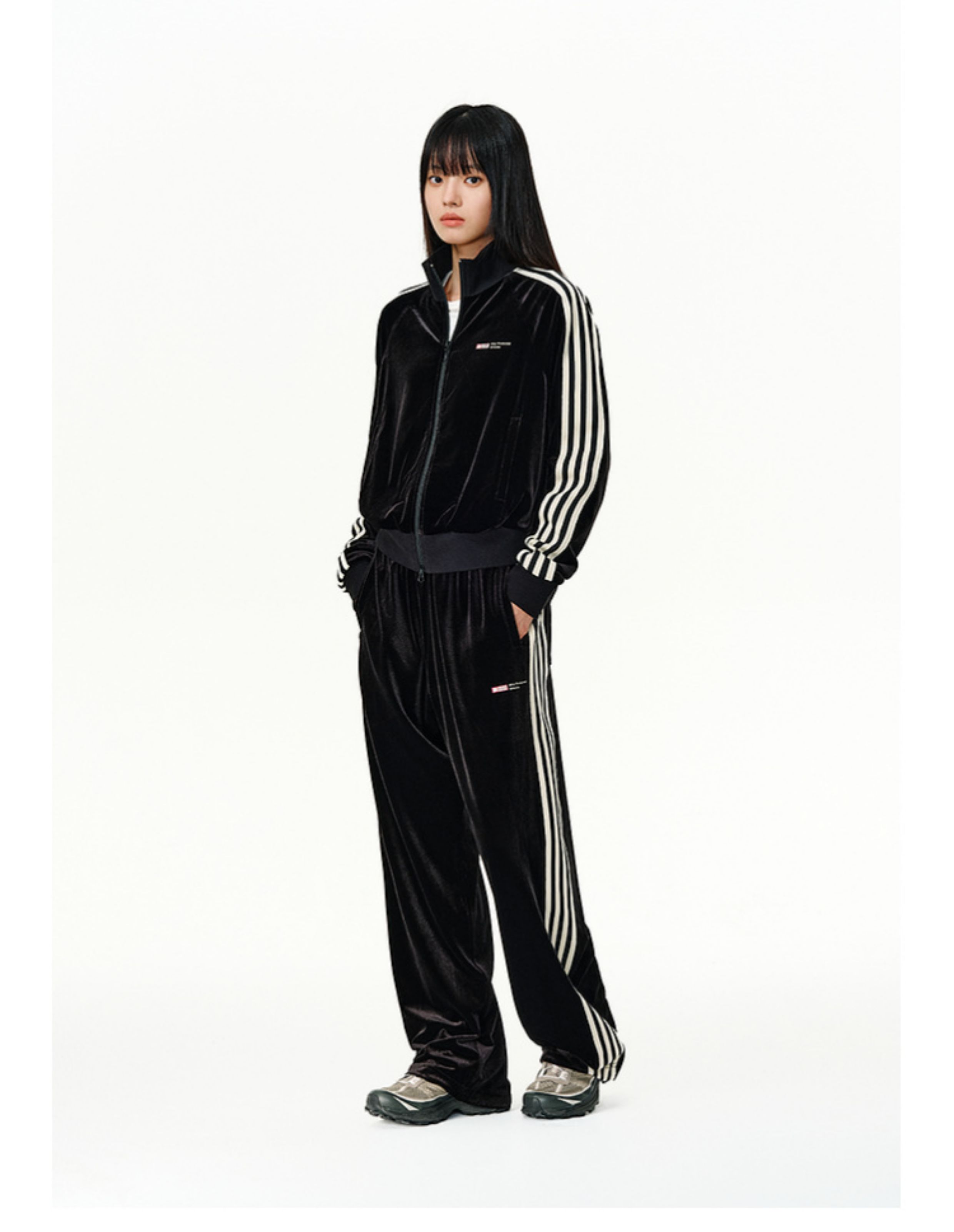 Atry American-Style Sports Suit, Autumn Stand-Up Collar Design, Couple's Outfit, Velvet Jacket, Casual Pants, Complete Set