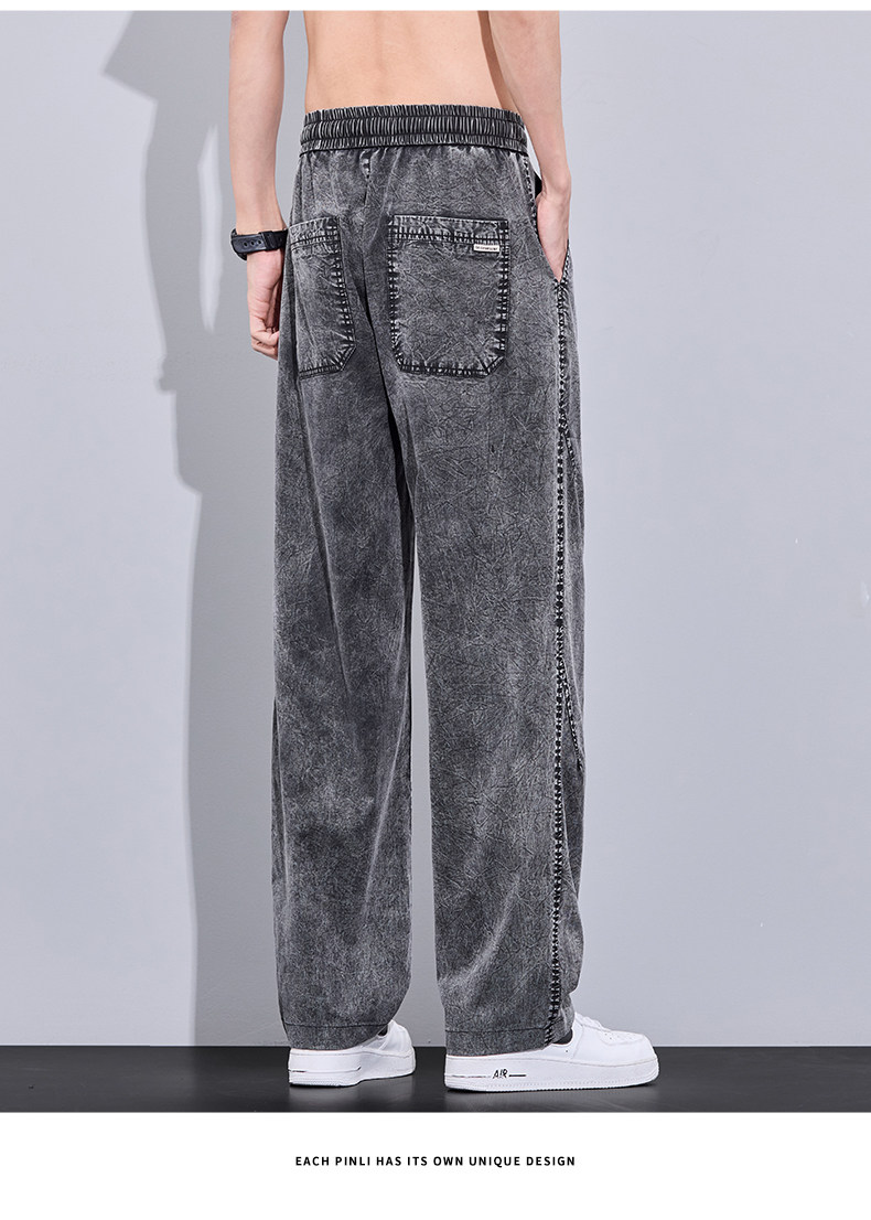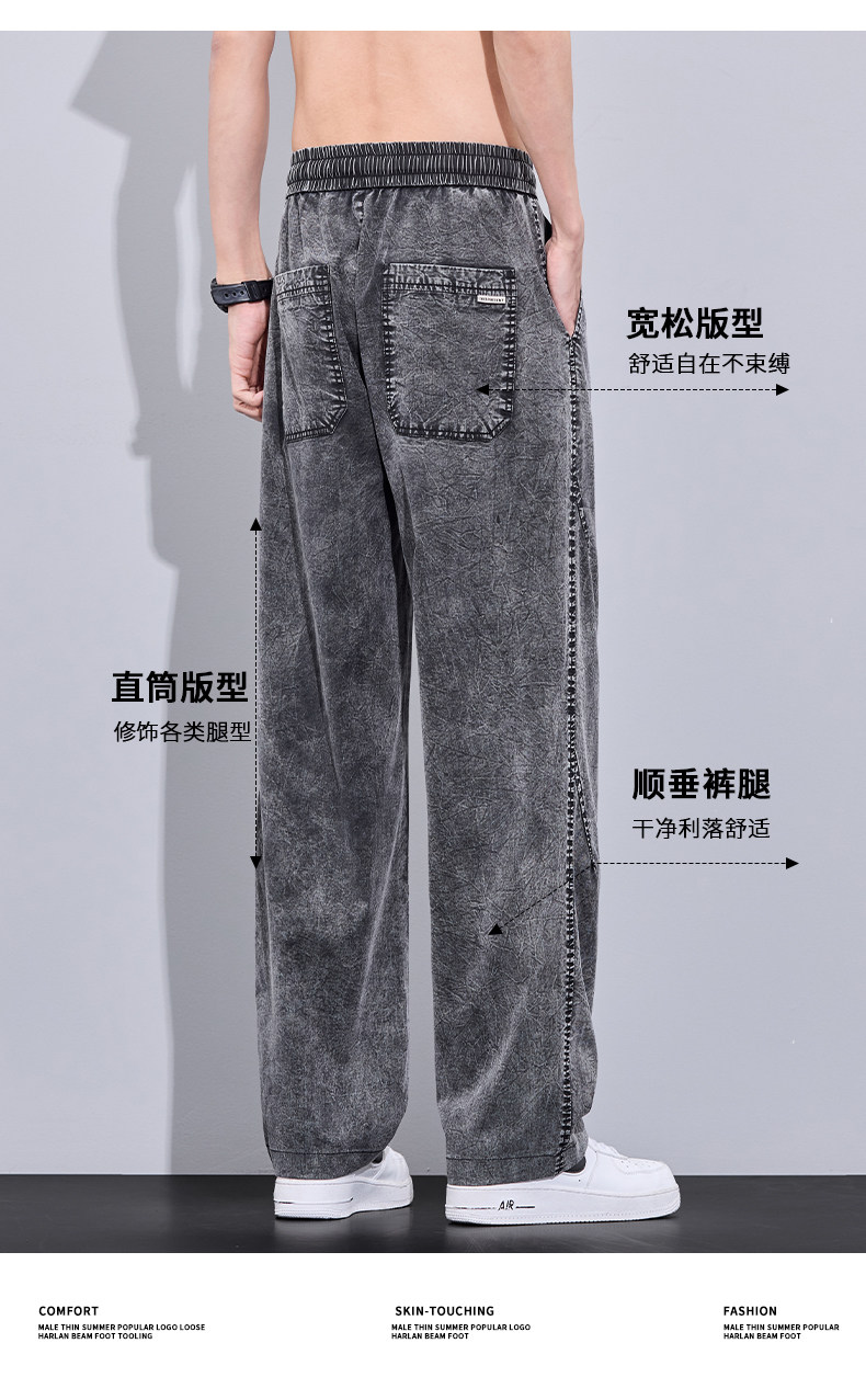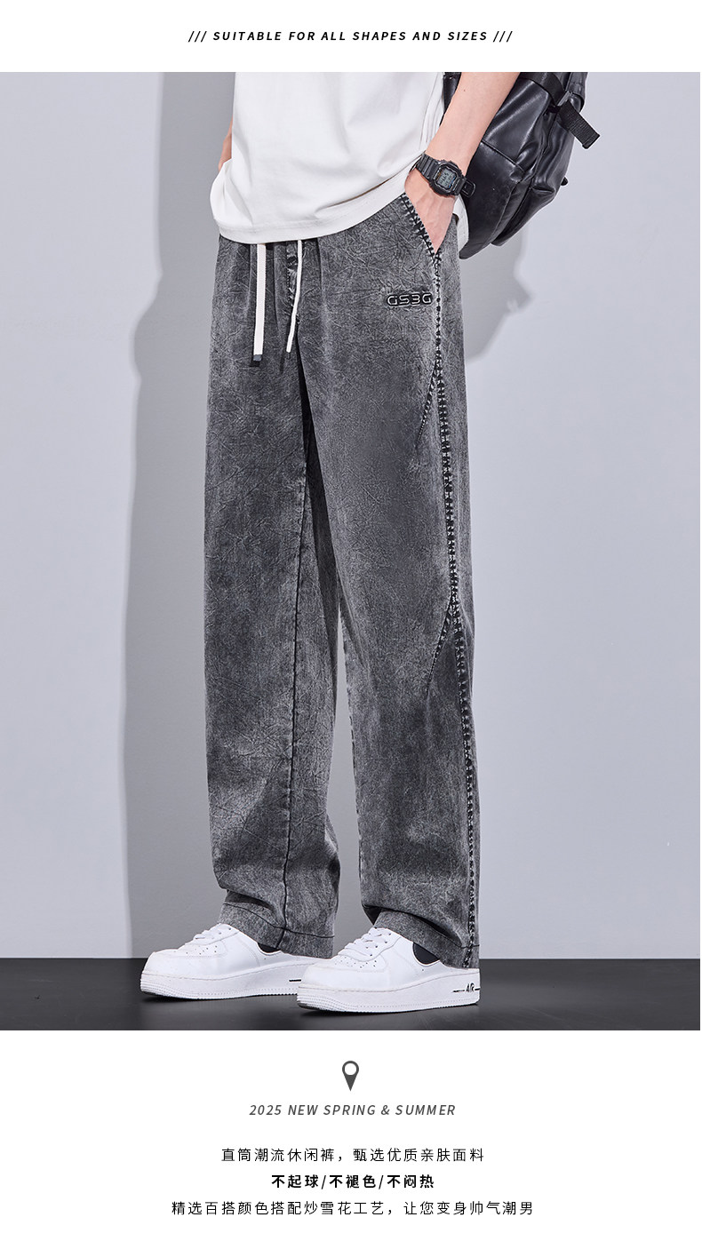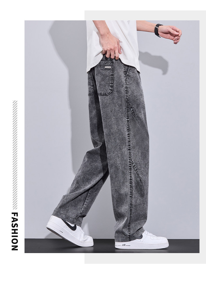 2026 Summer Thin Snowflake Tencel Jeans Men's Loose Straight American Style Trendy Brand Washed Casual Long Pants