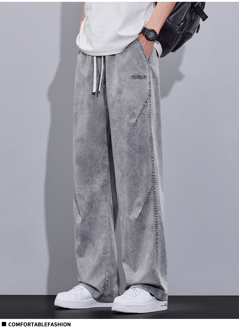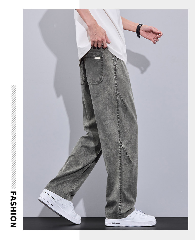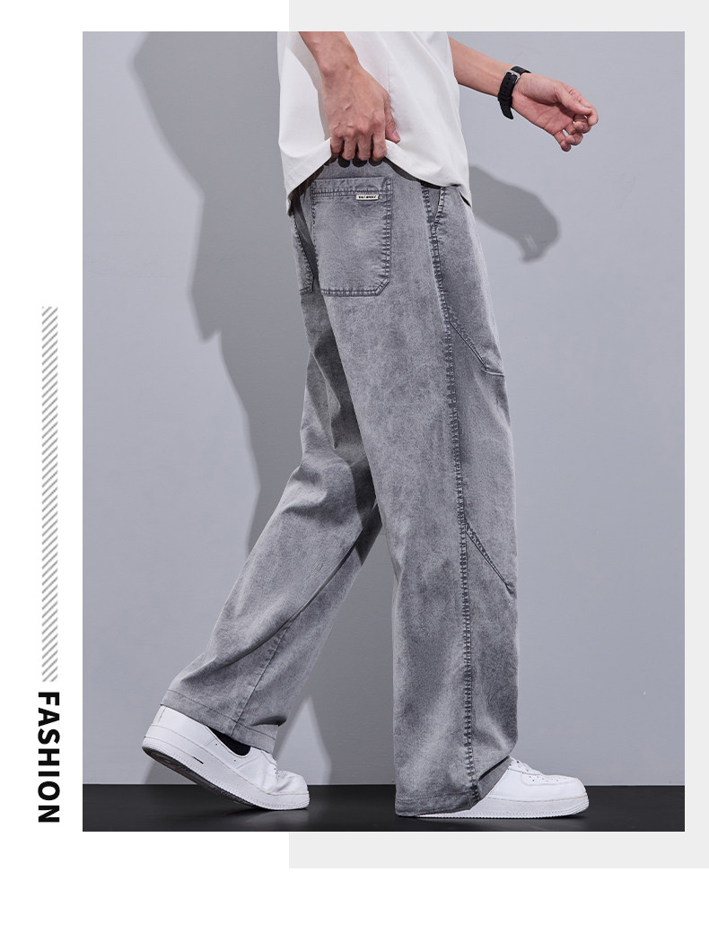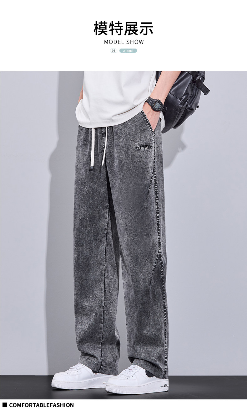 2026 Summer Thin Snowflake Tencel Jeans Men's Loose Straight American Style Trendy Brand Washed Casual Long Pants