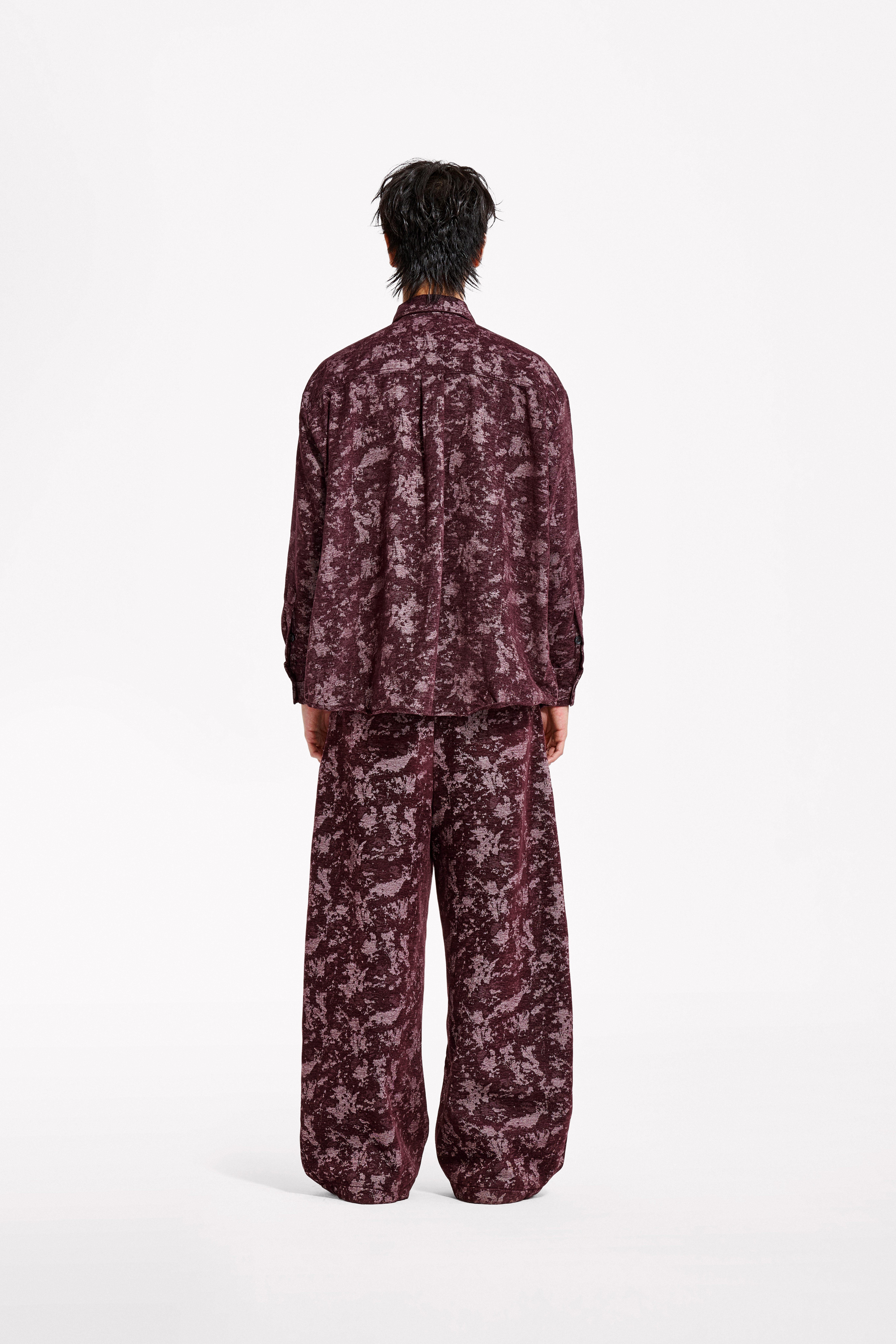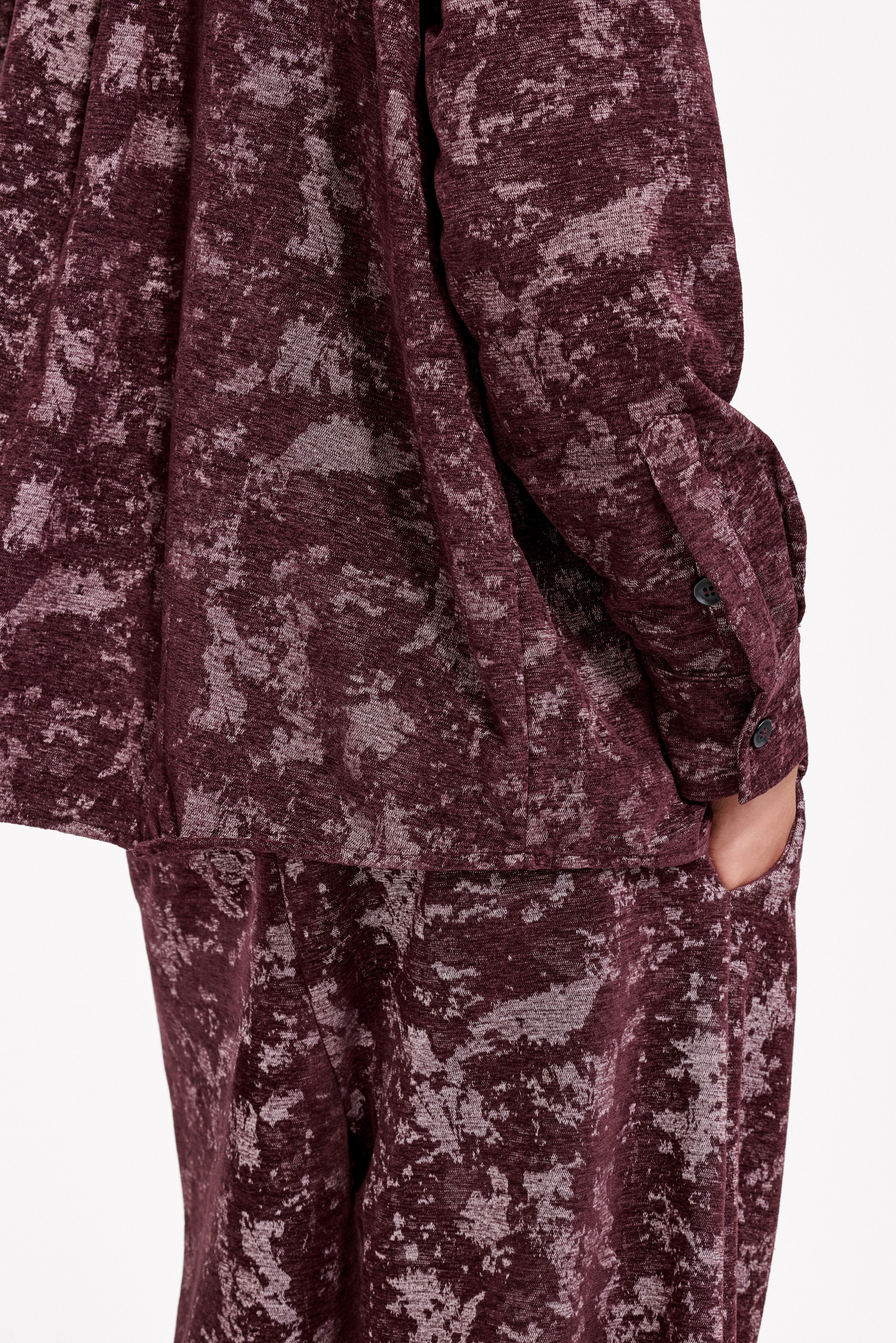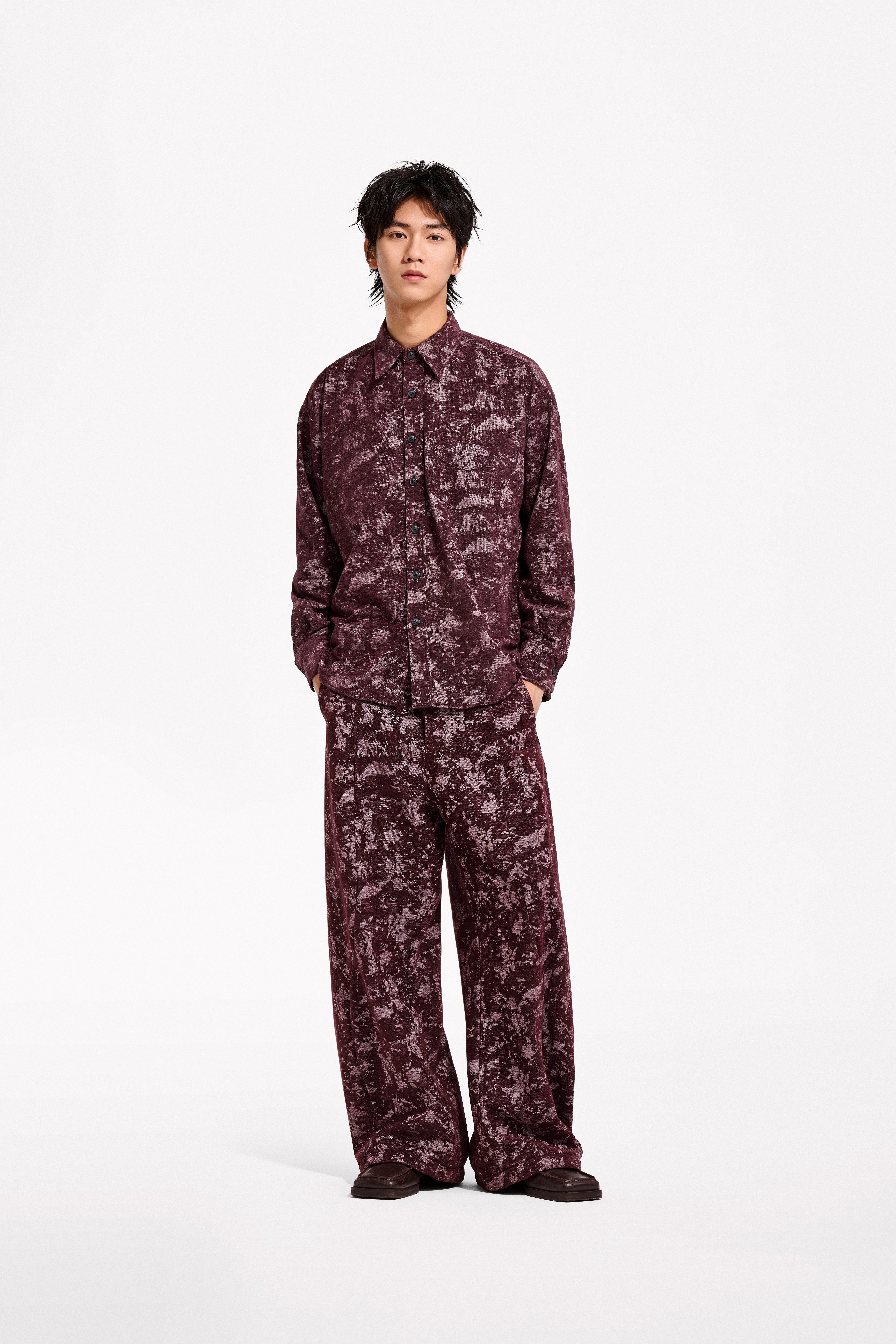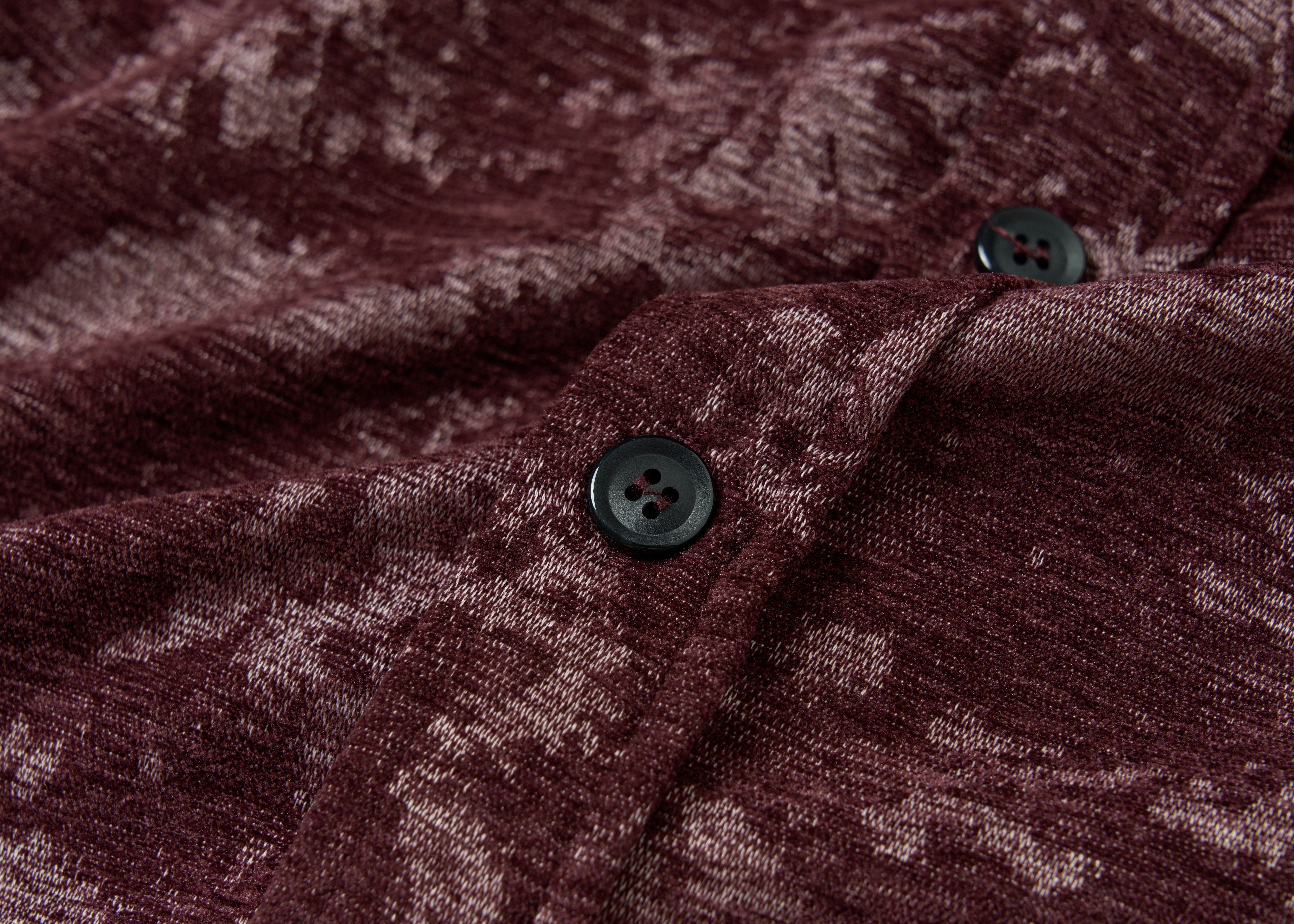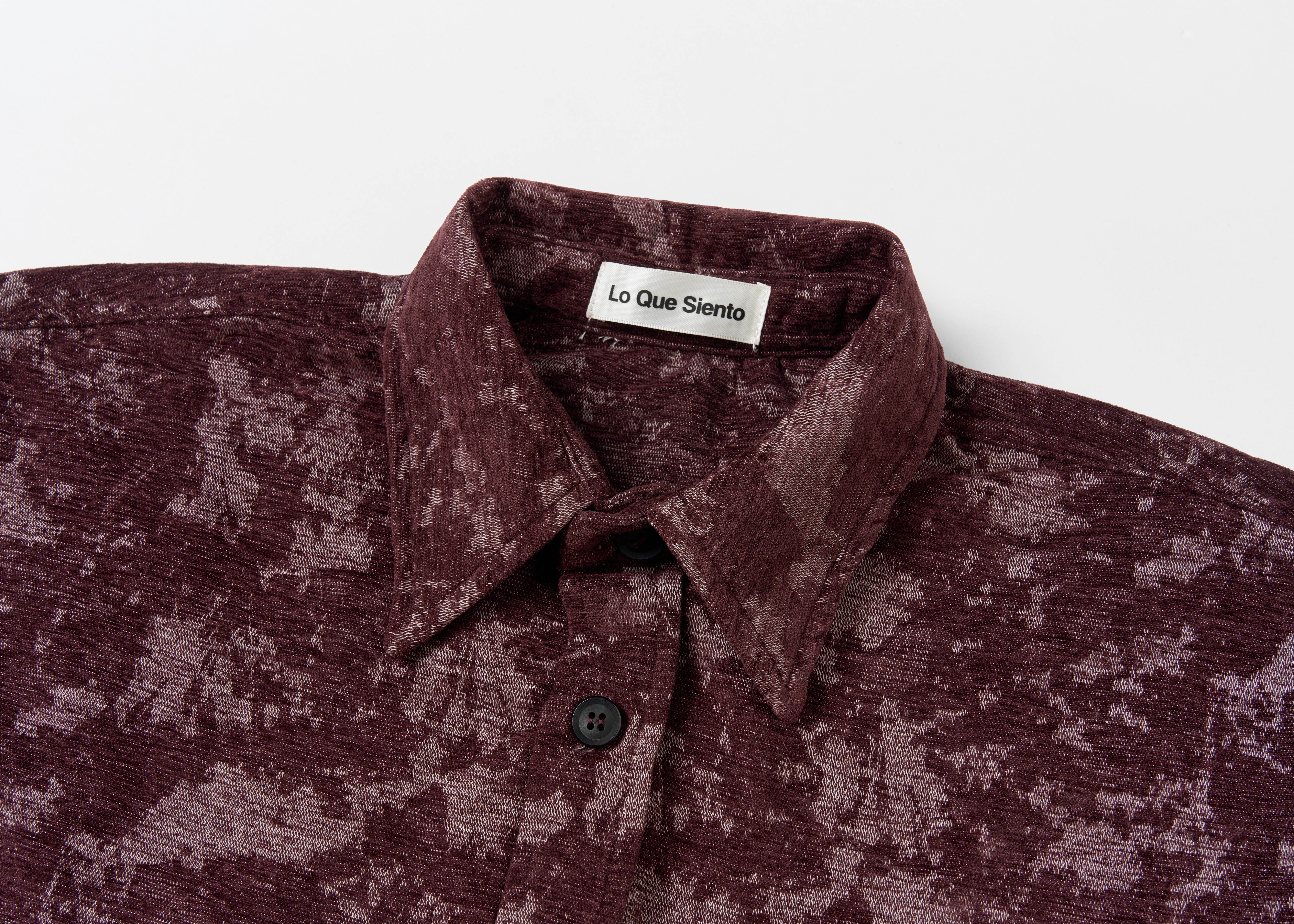 Loquesiento[Stage:3] Burgundy Jacquard Texture Shirt and Velvet Scimitar Pants Casual Suit