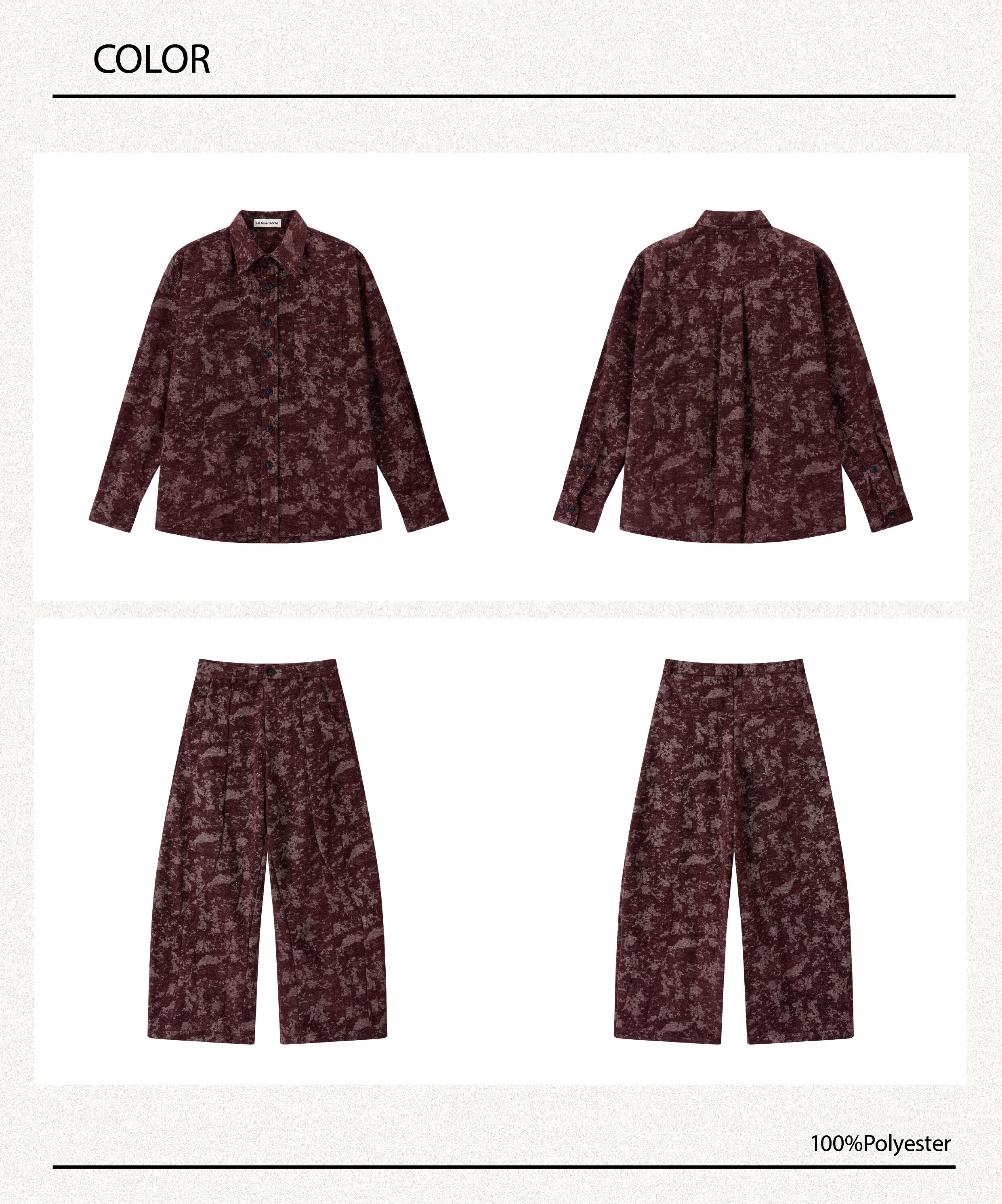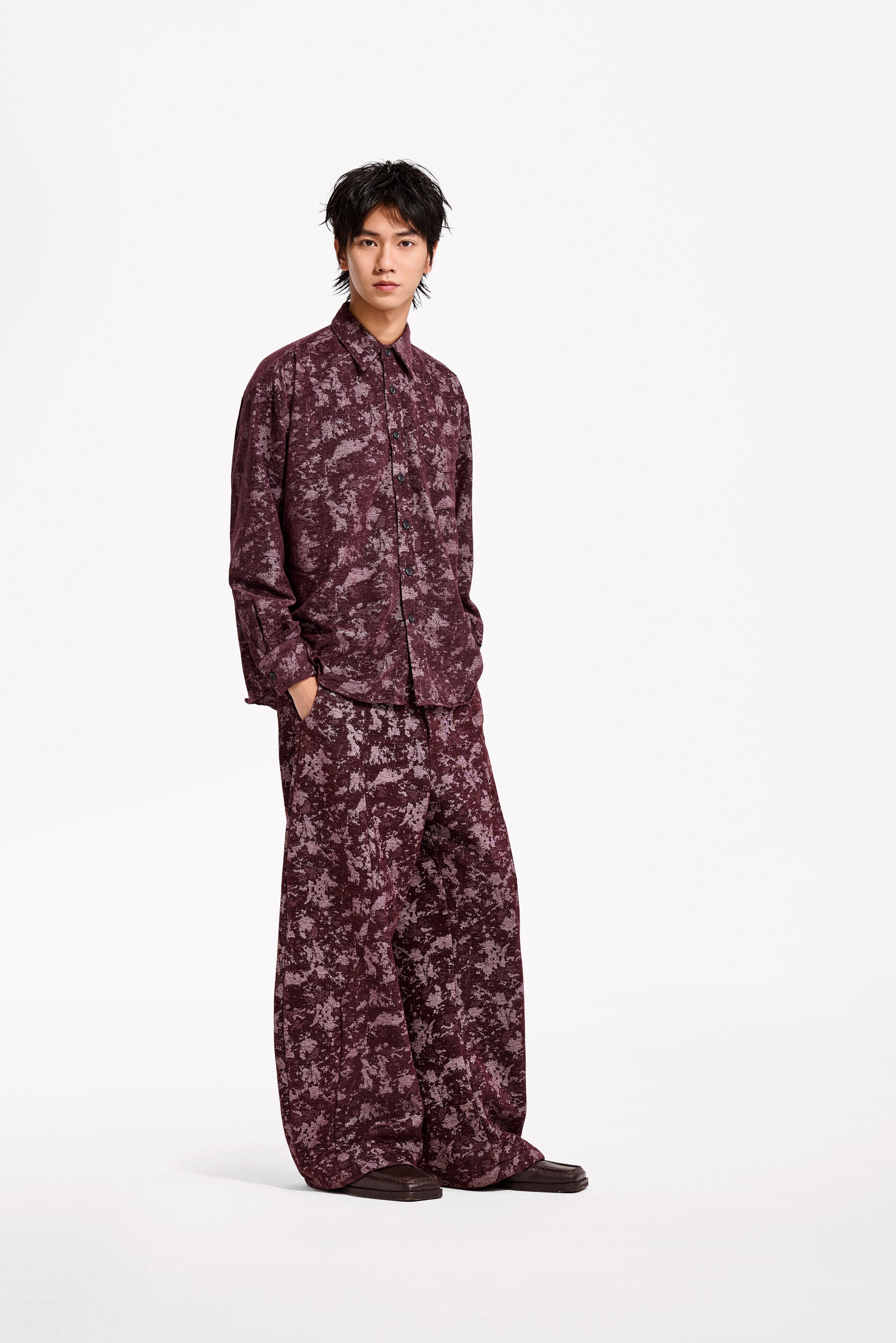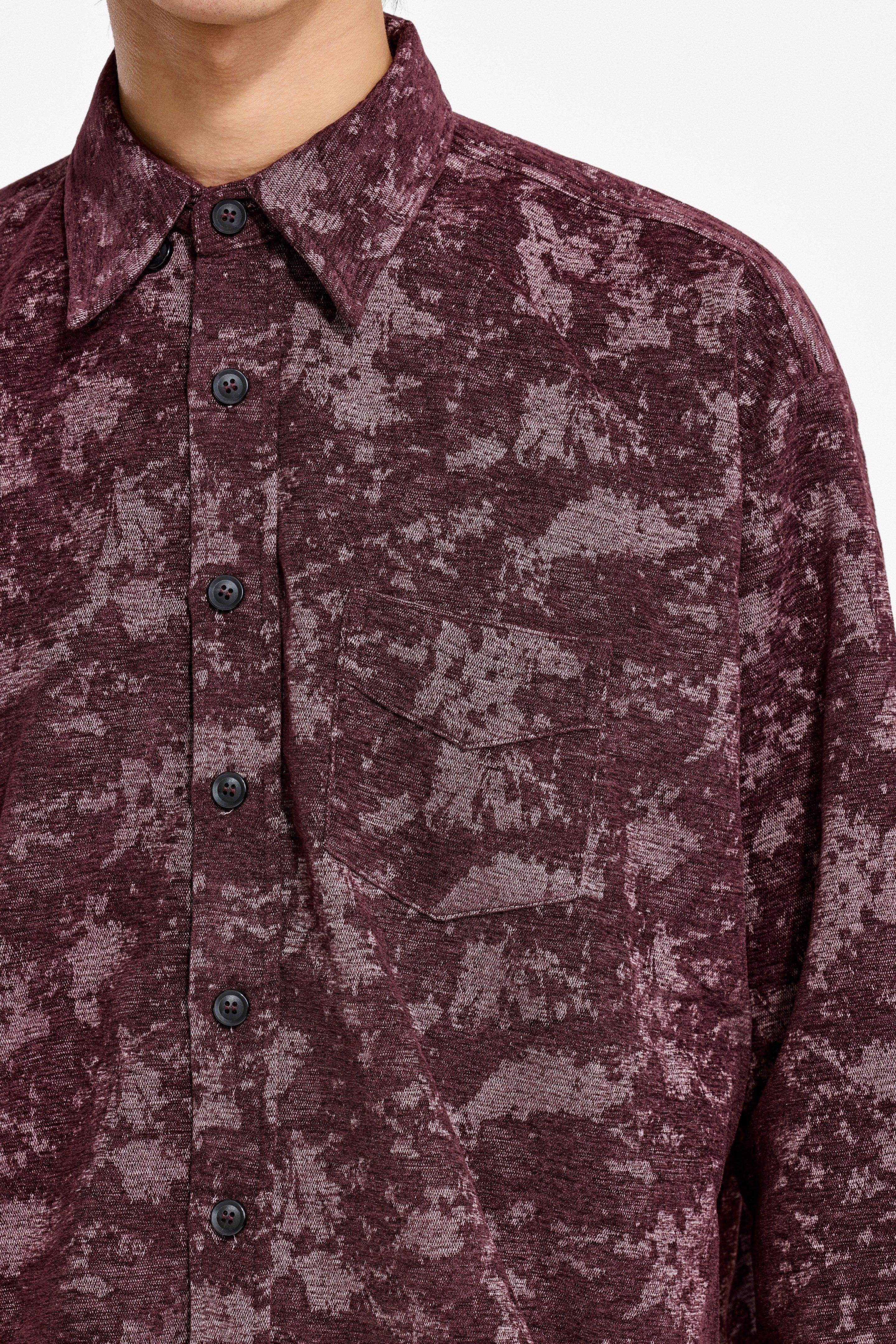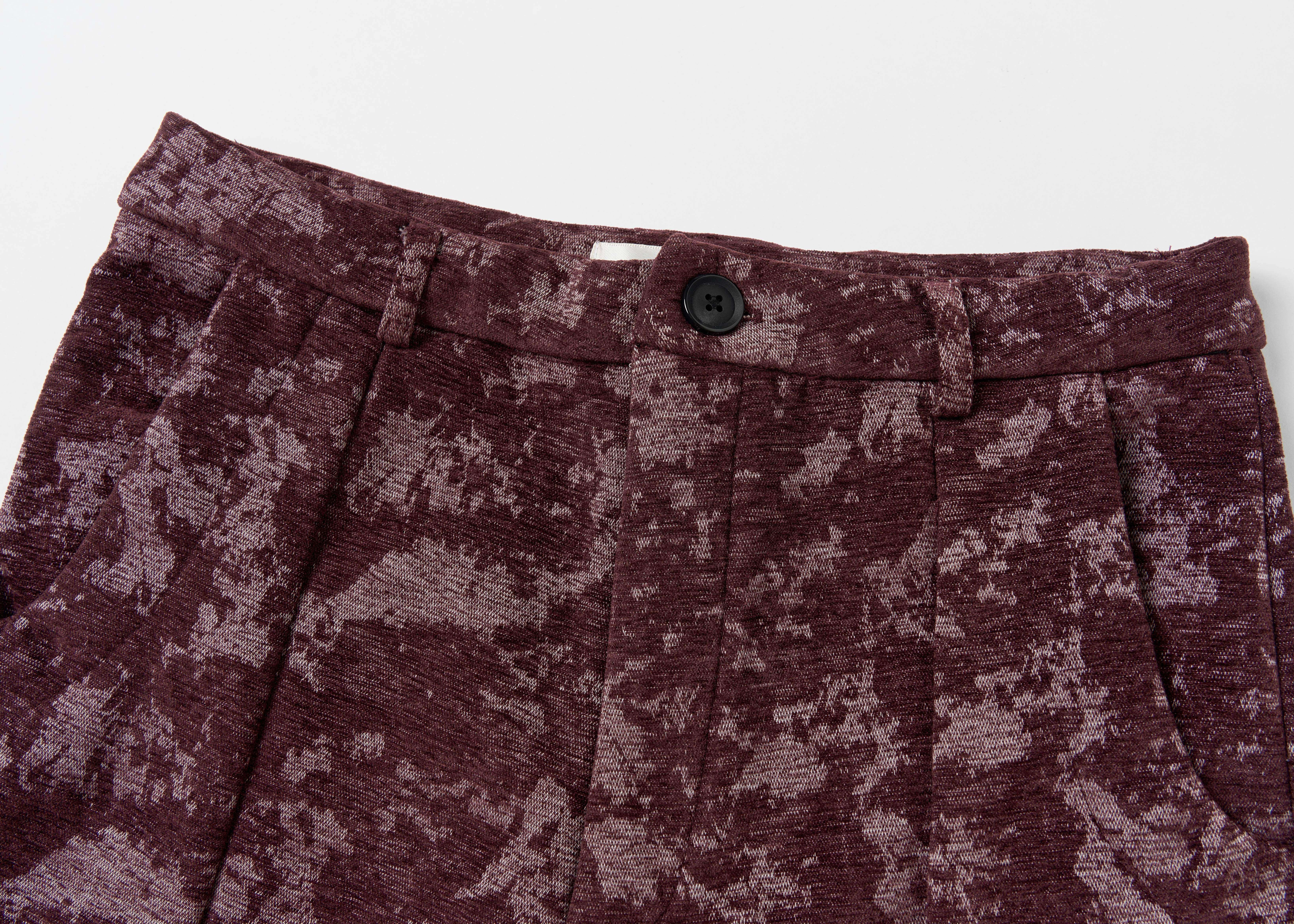 Loquesiento[Stage:3] Burgundy Jacquard Texture Shirt and Velvet Scimitar Pants Casual Suit