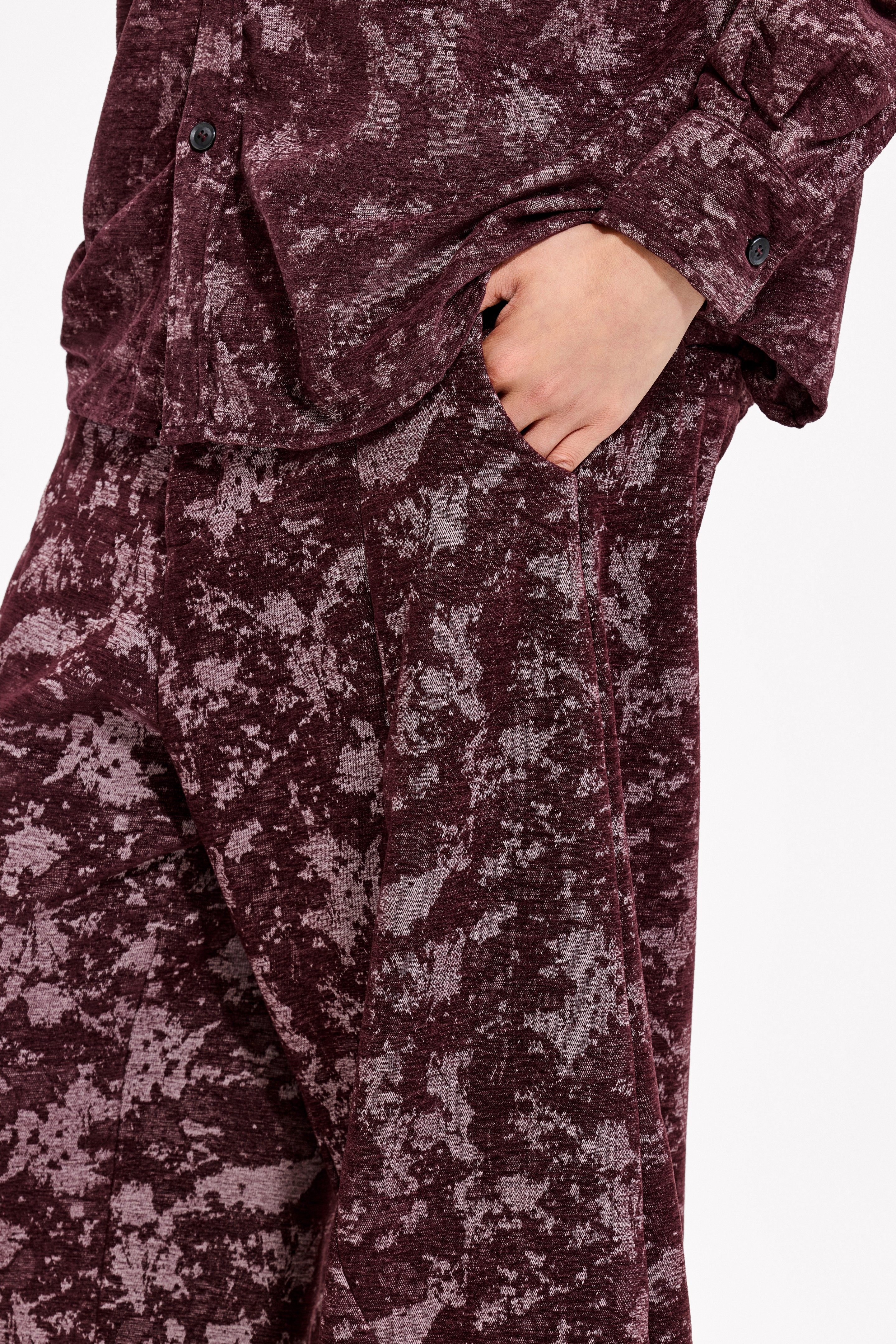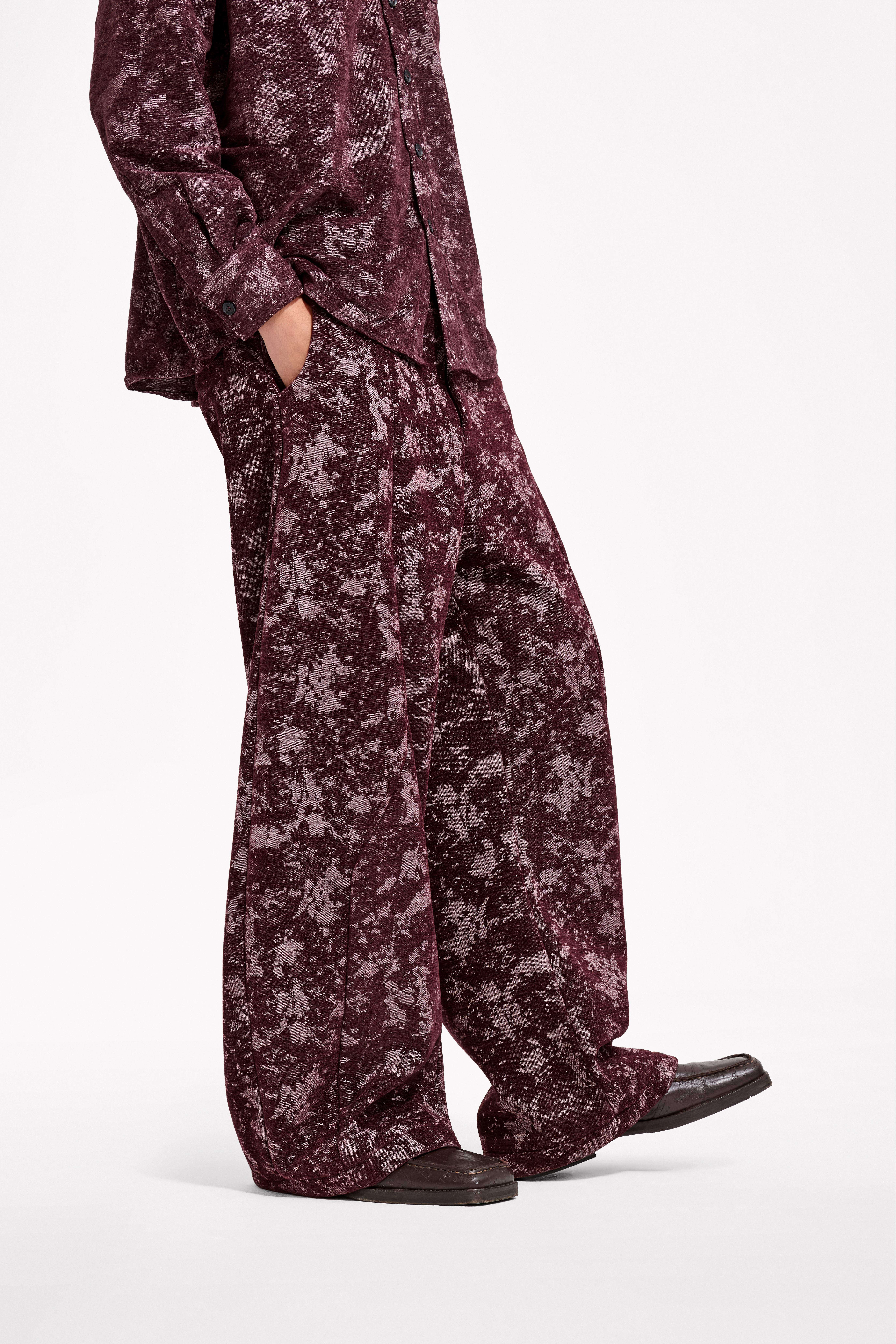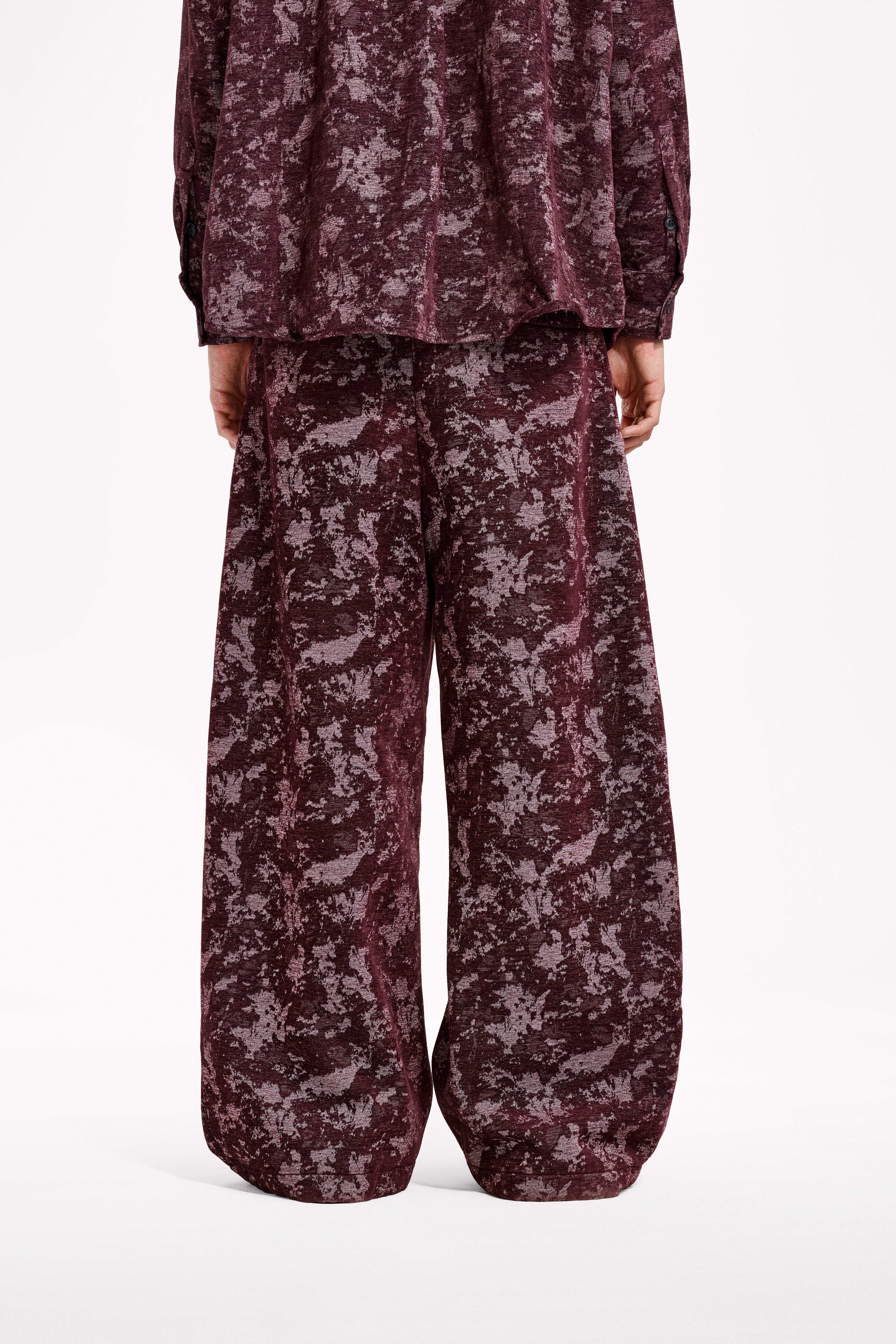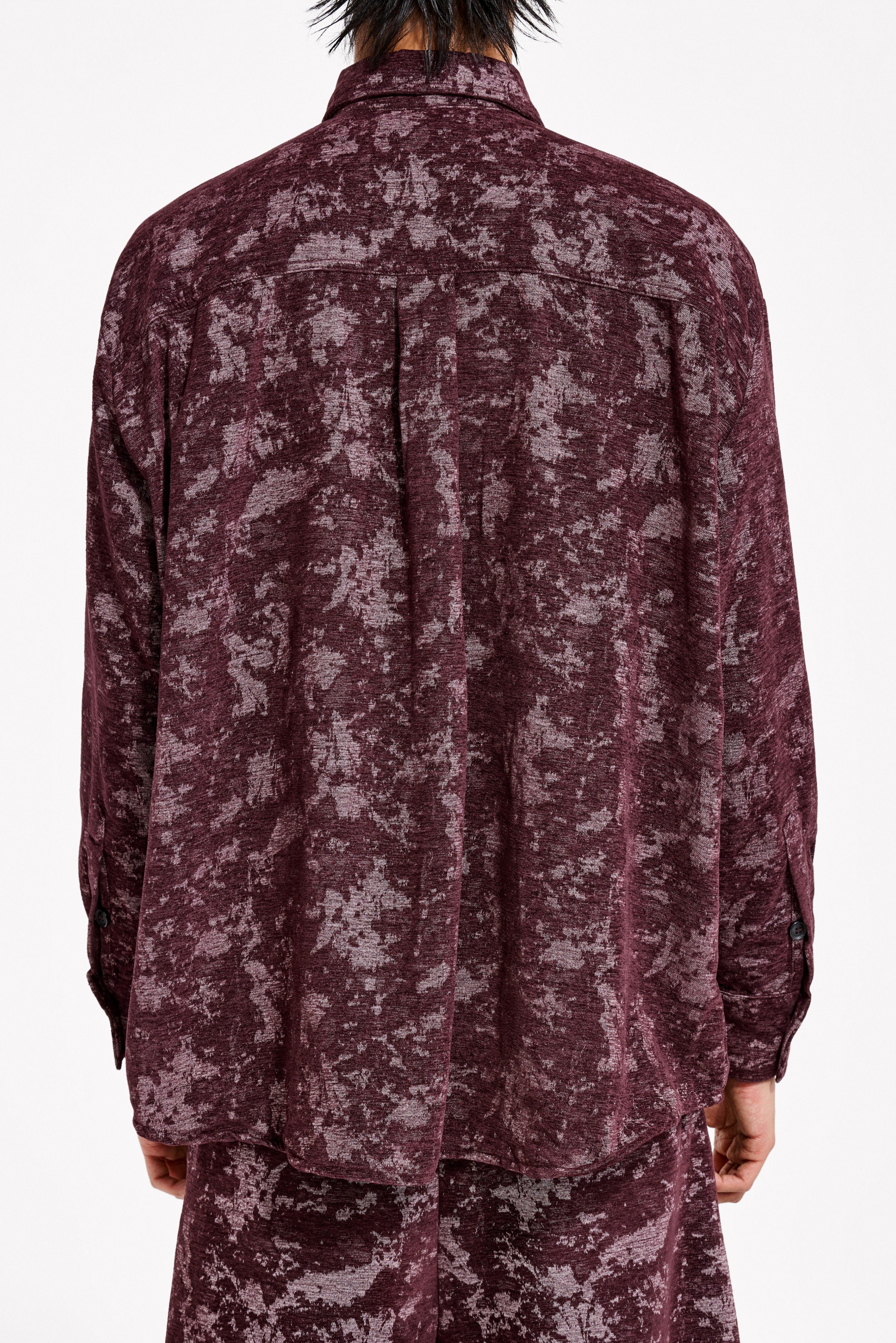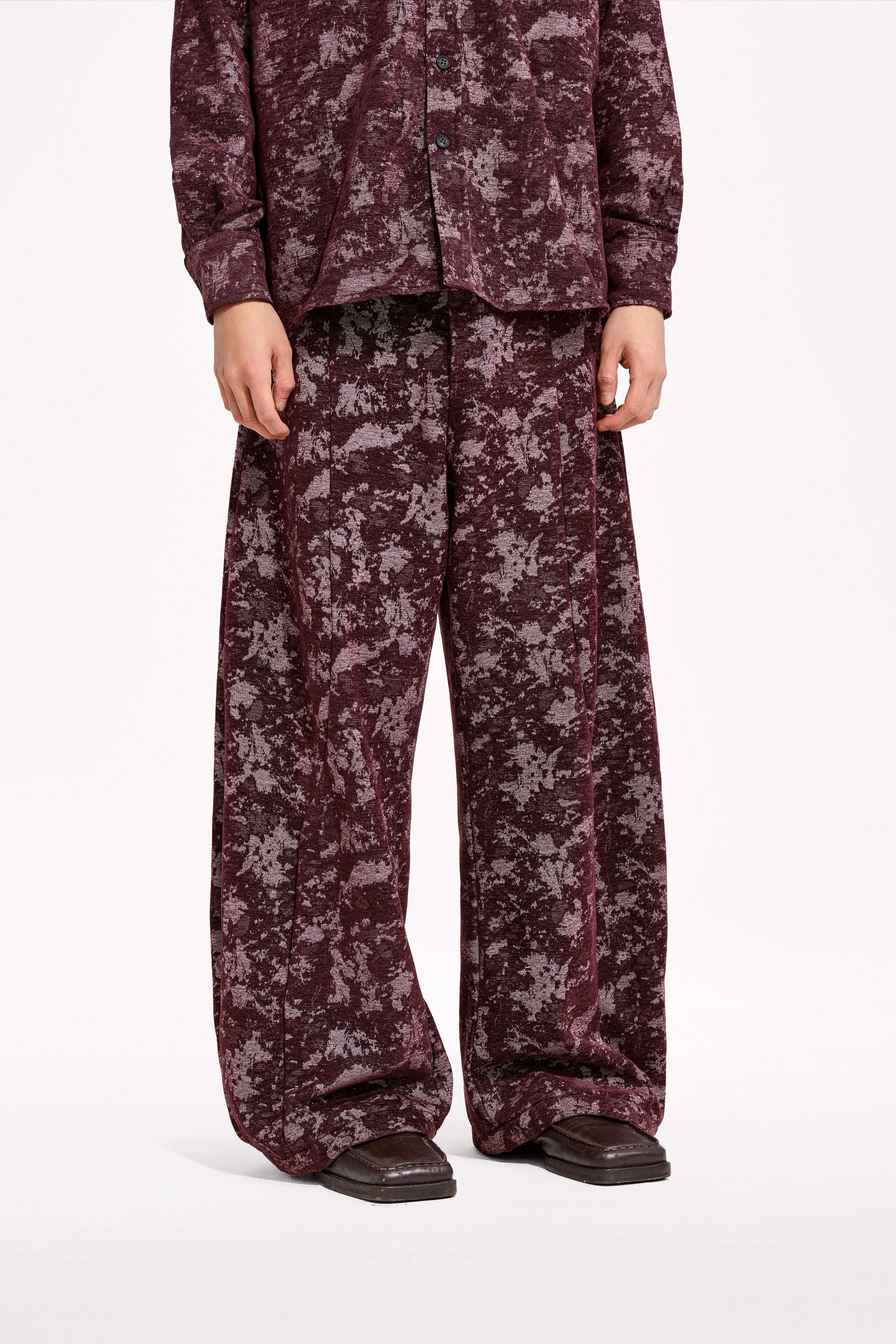 Loquesiento[Stage:3] Burgundy Jacquard Texture Shirt and Velvet Scimitar Pants Casual Suit