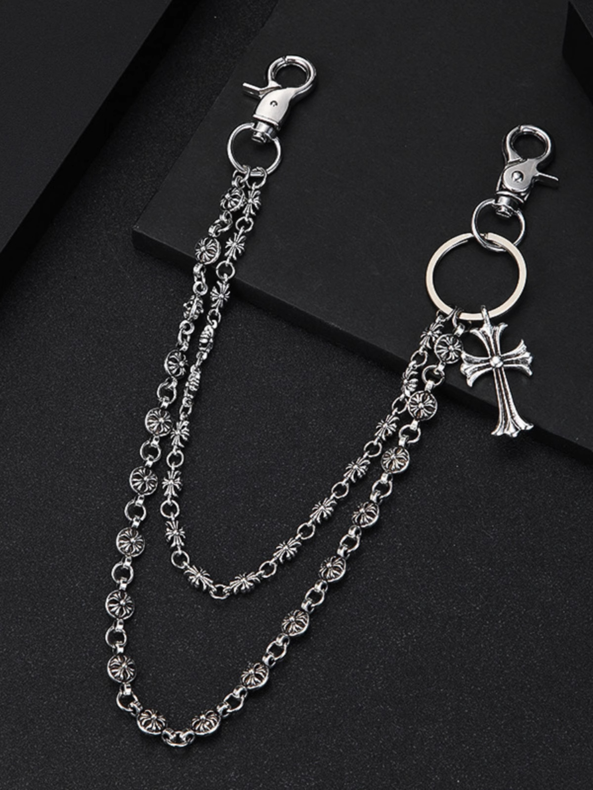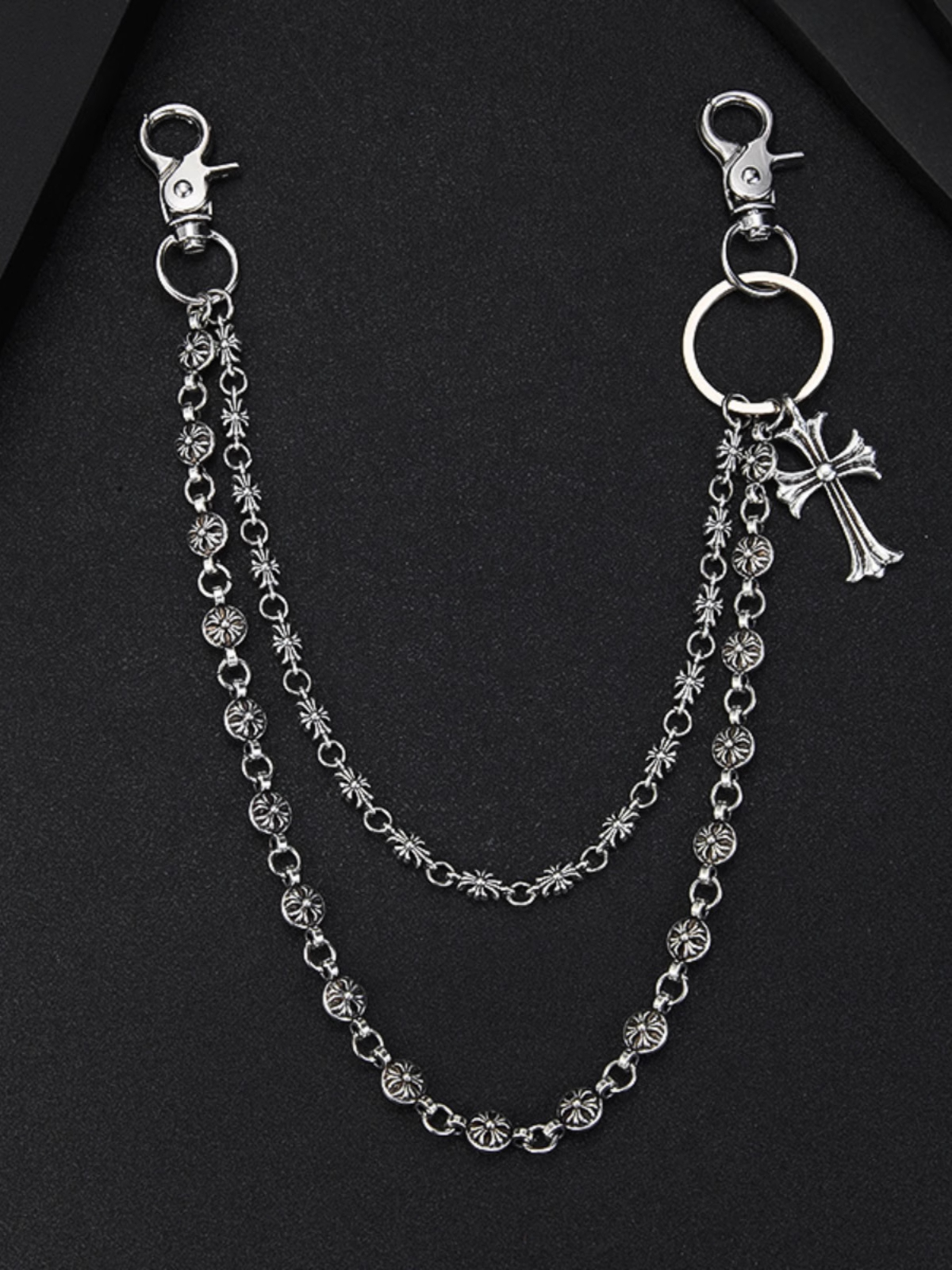 Dark Gothic Yabi Denim Cross Waist Chain Pants Chain Accessory Ornament Multi-Element High-End Denim Pants American Style