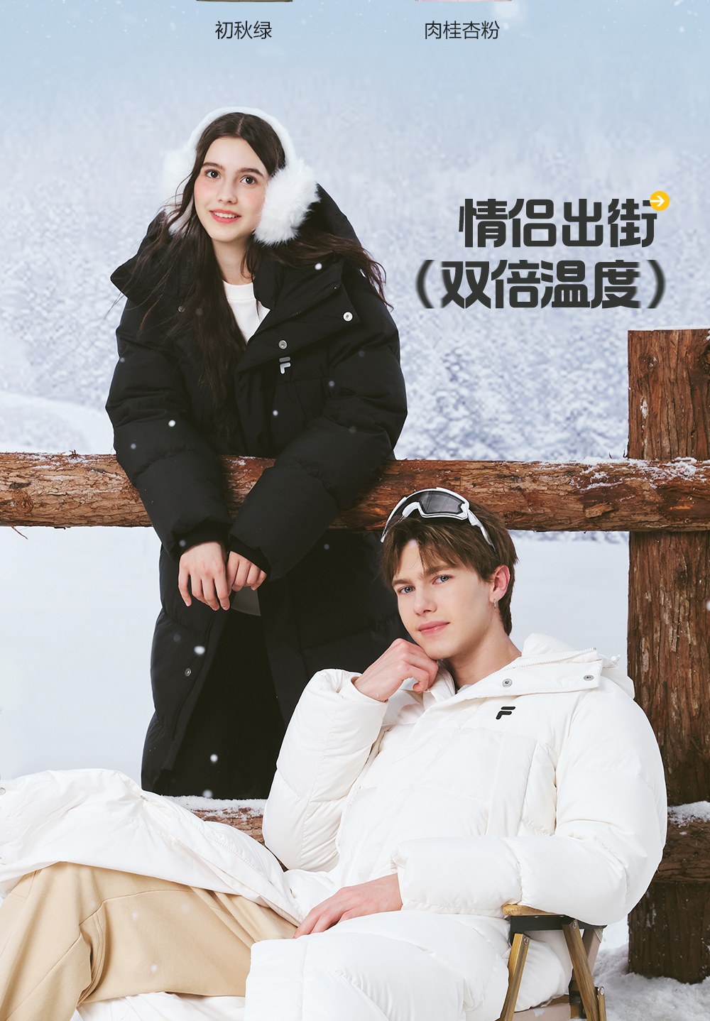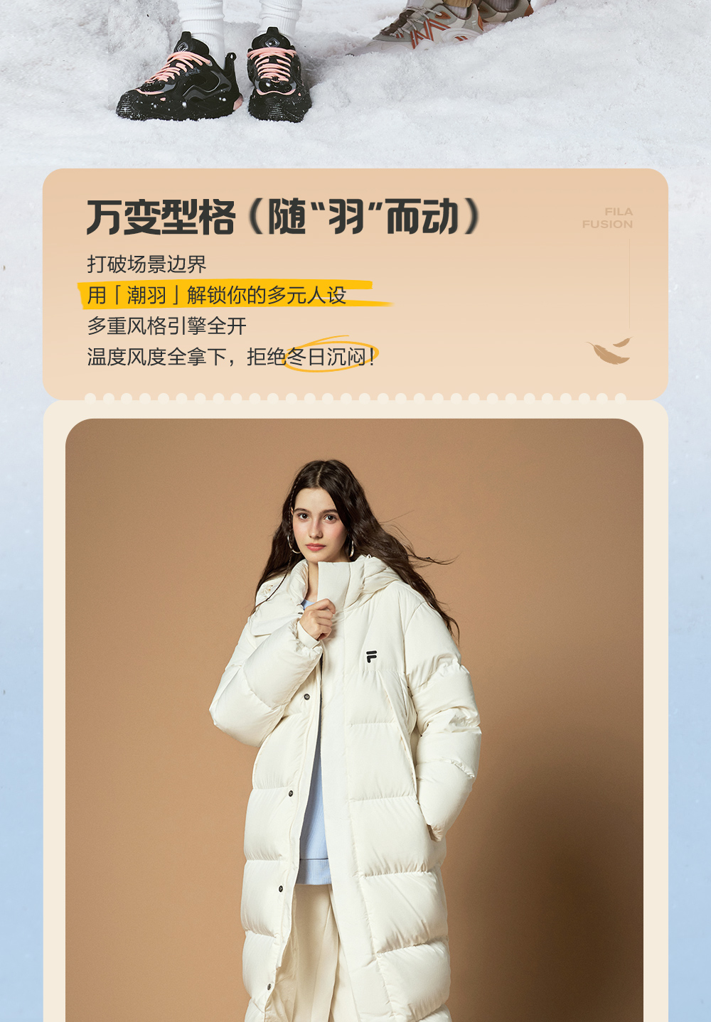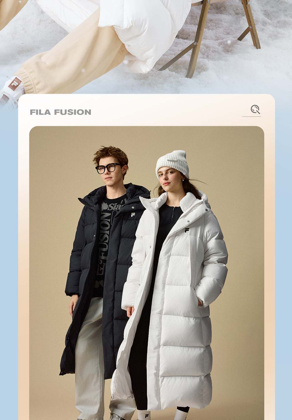 Goose Down FILA FUSION FILA Lovers Long Down jacket 2025 Winter New arrival Heattech Ski Outwear