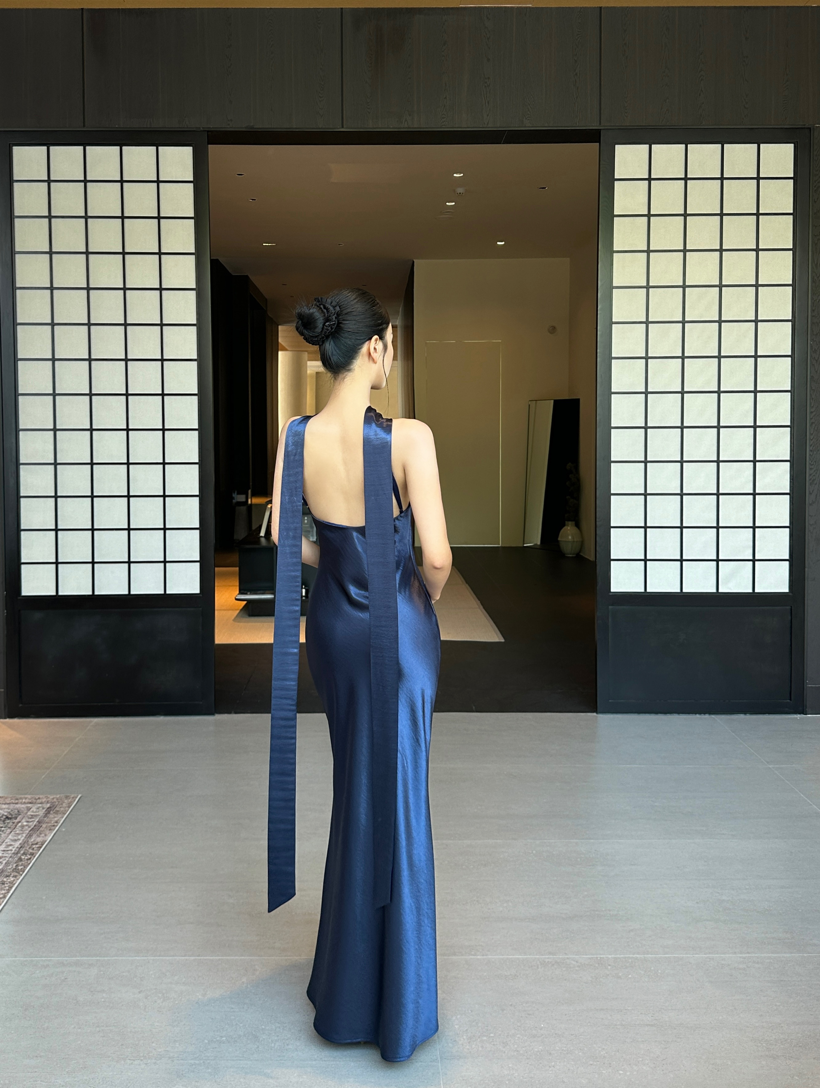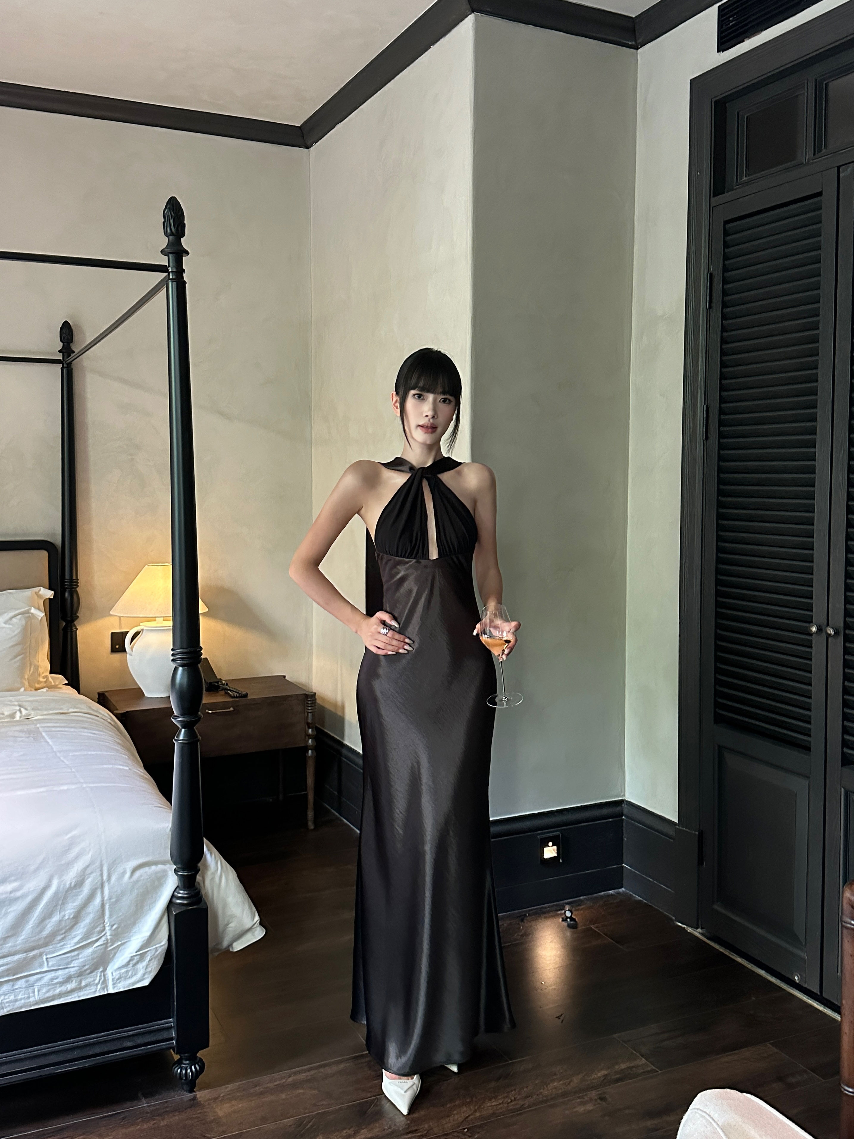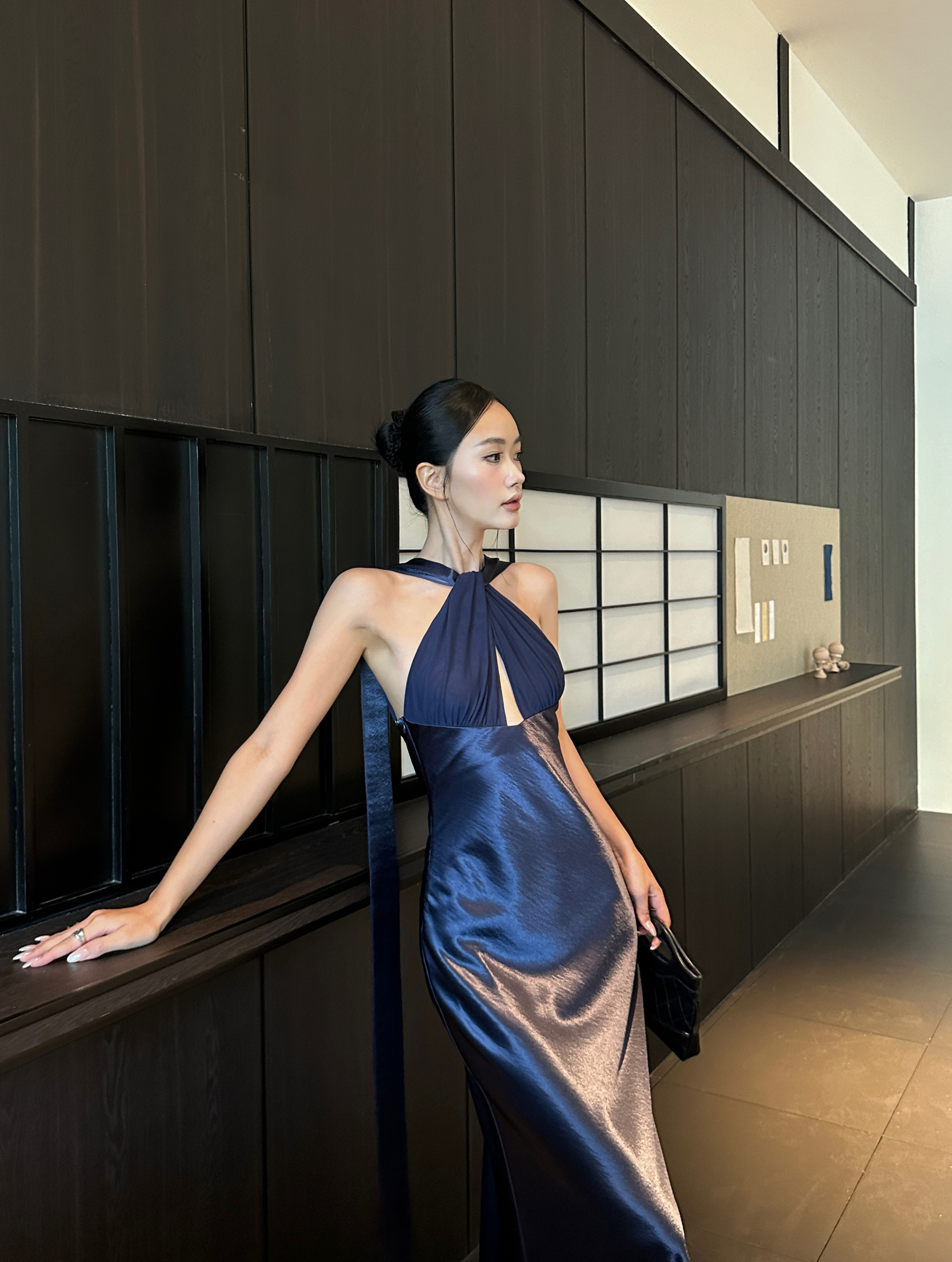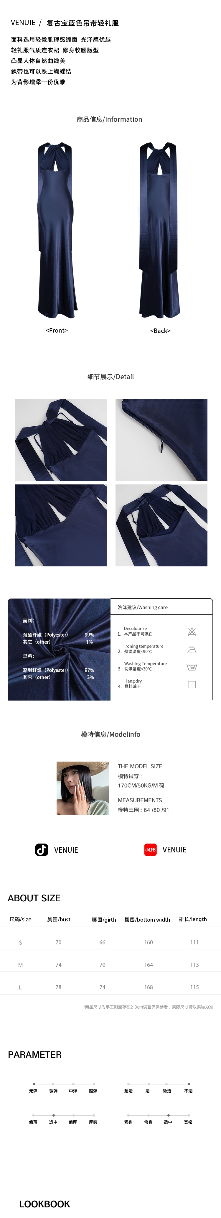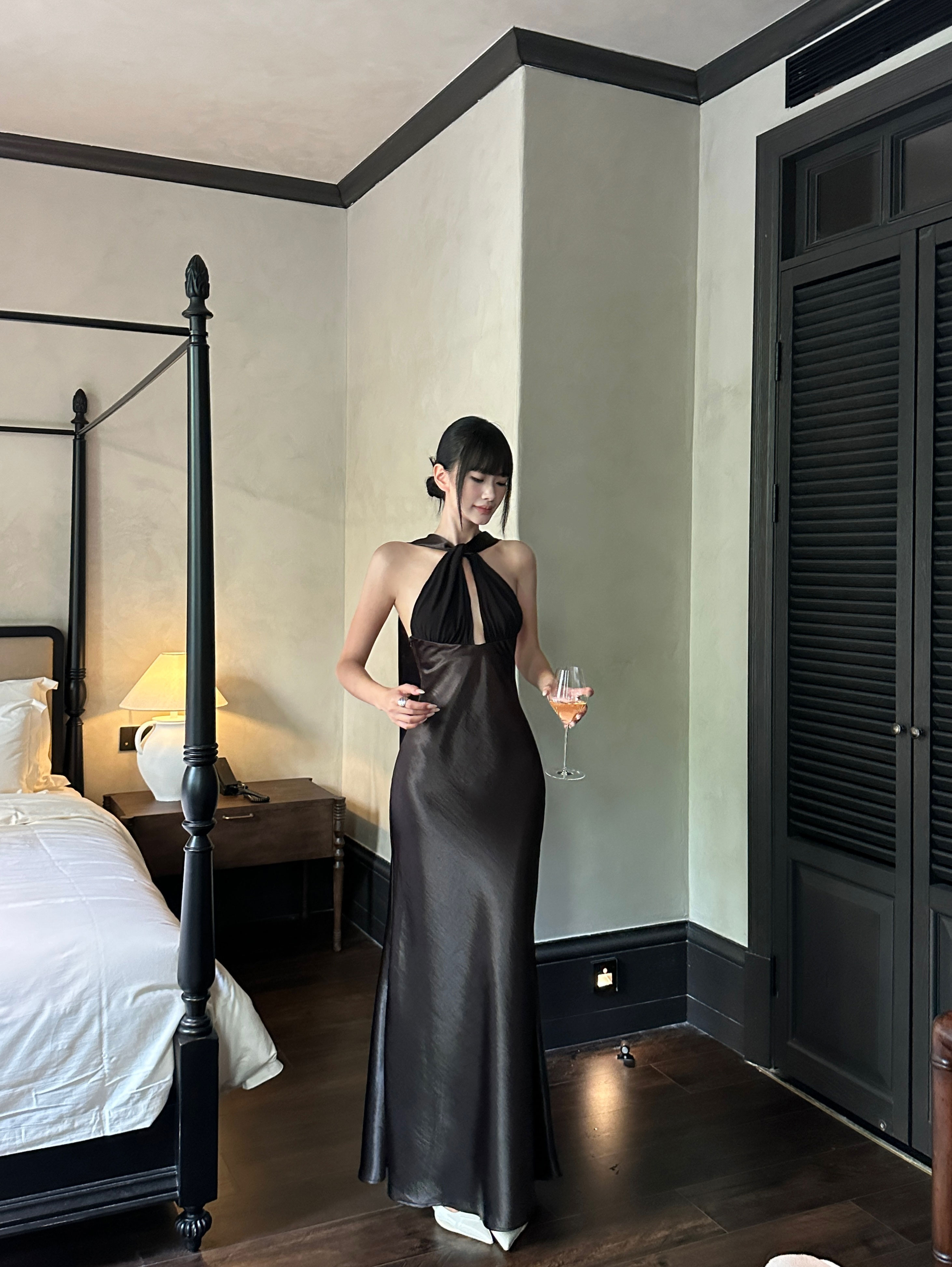 Venuie French-Style Party Slip Dress, Light Formal Dress for Women, Niche Evening Dress, Halter Neck Long Dress