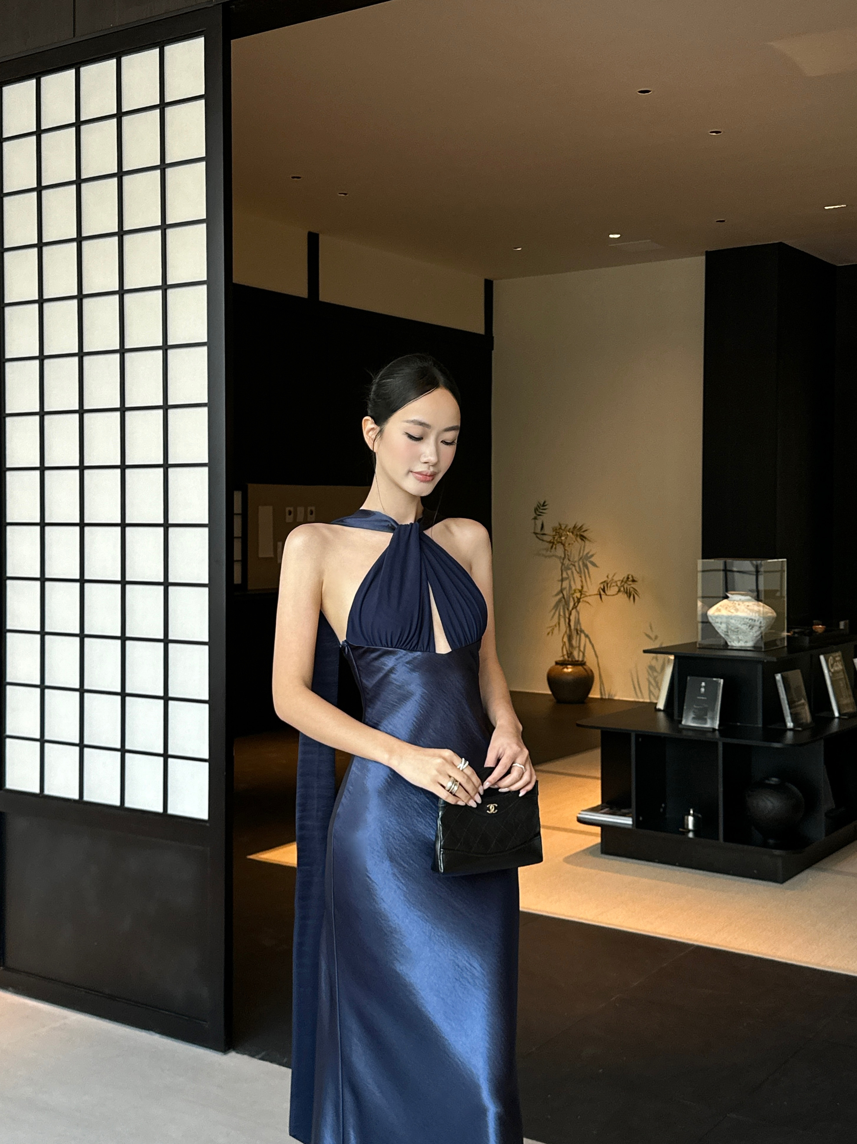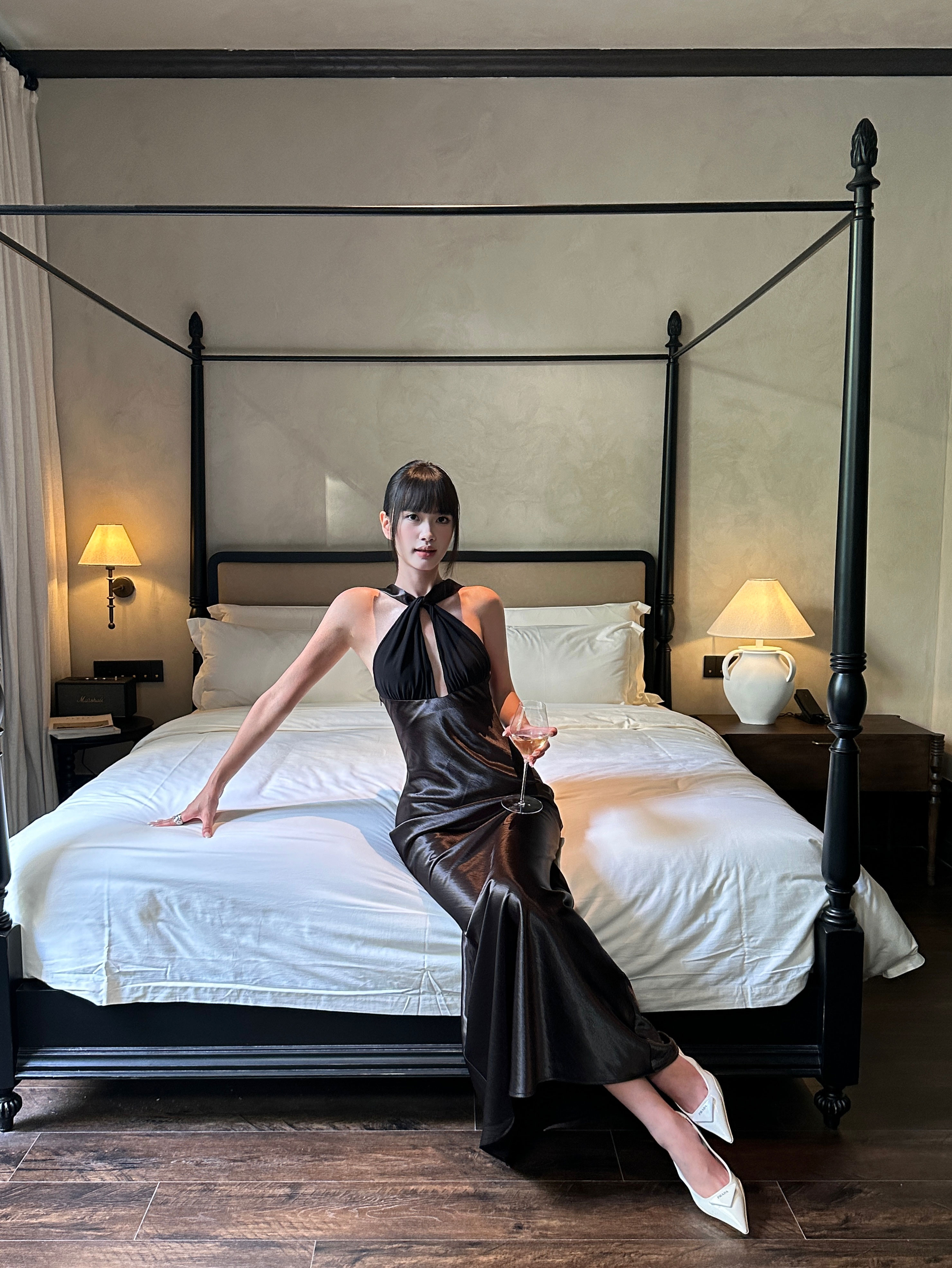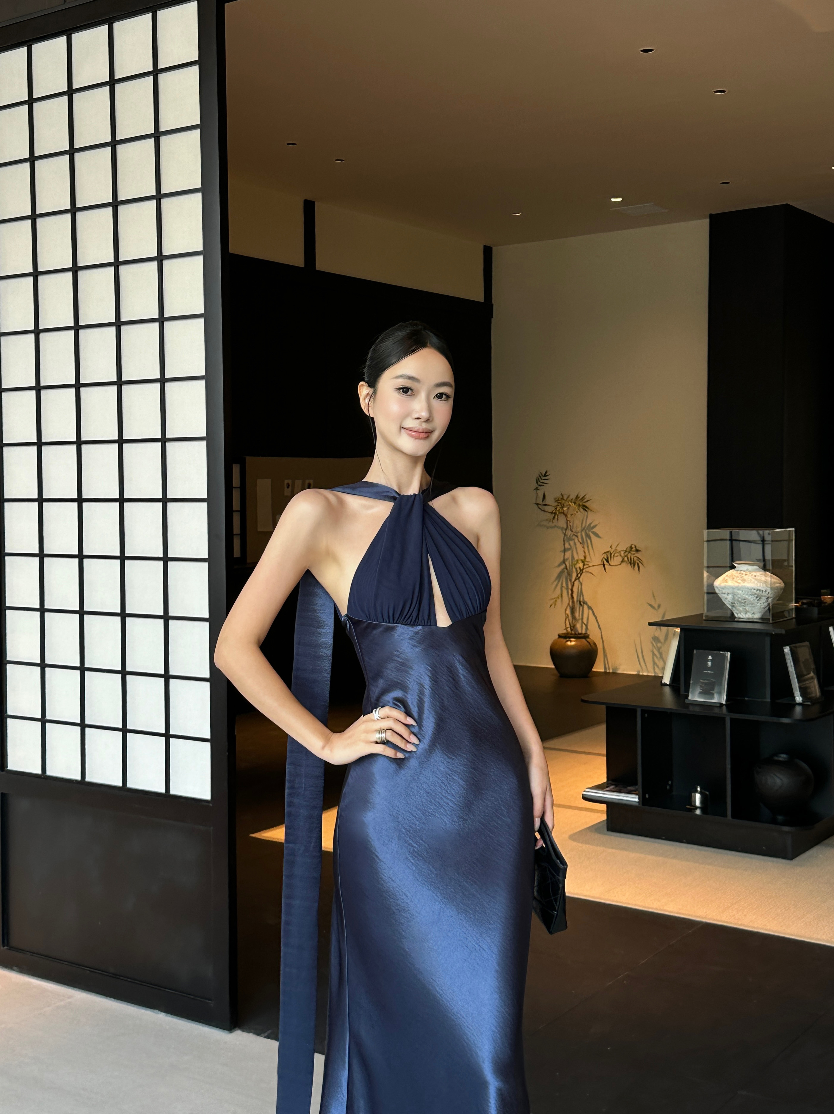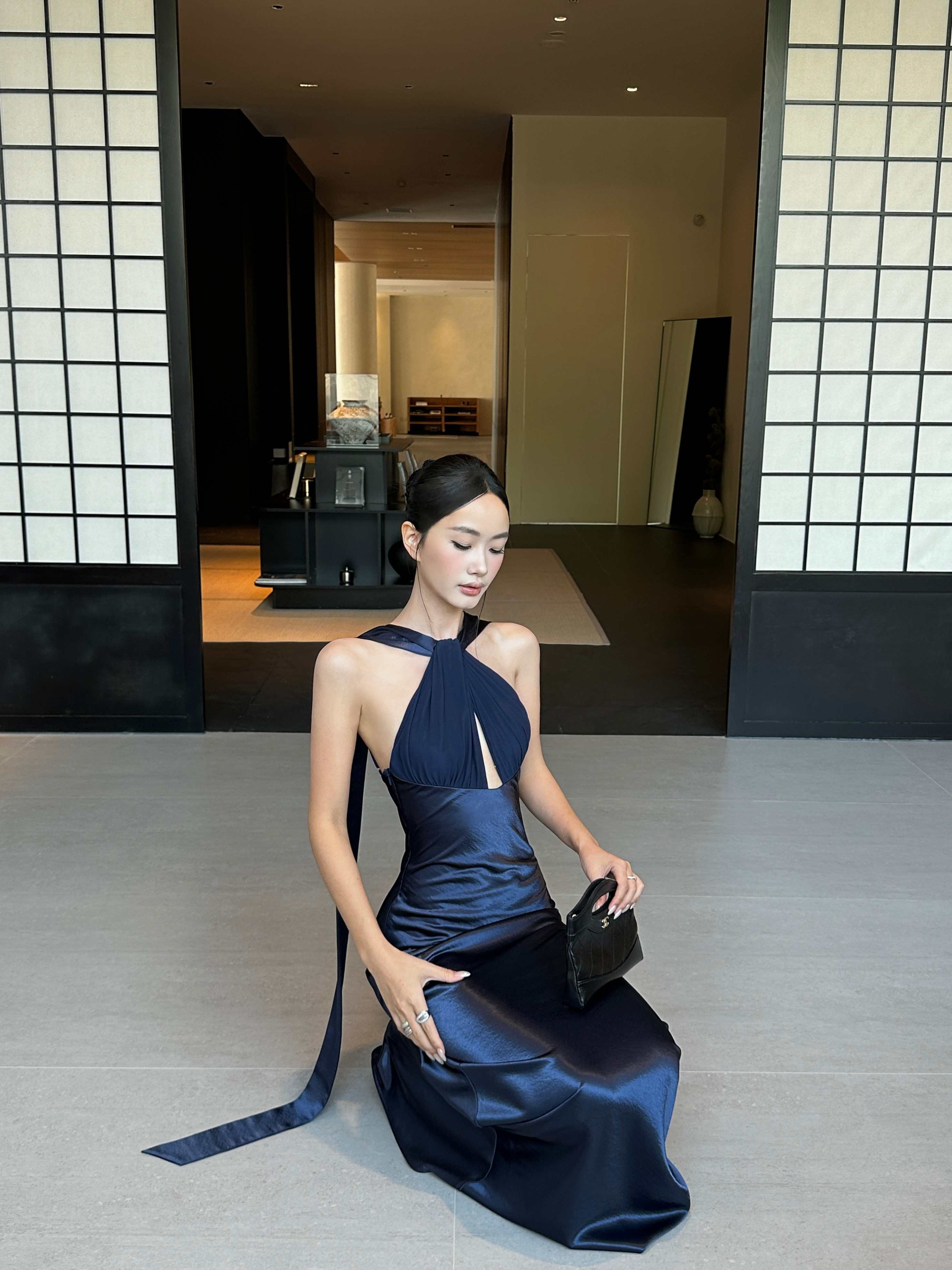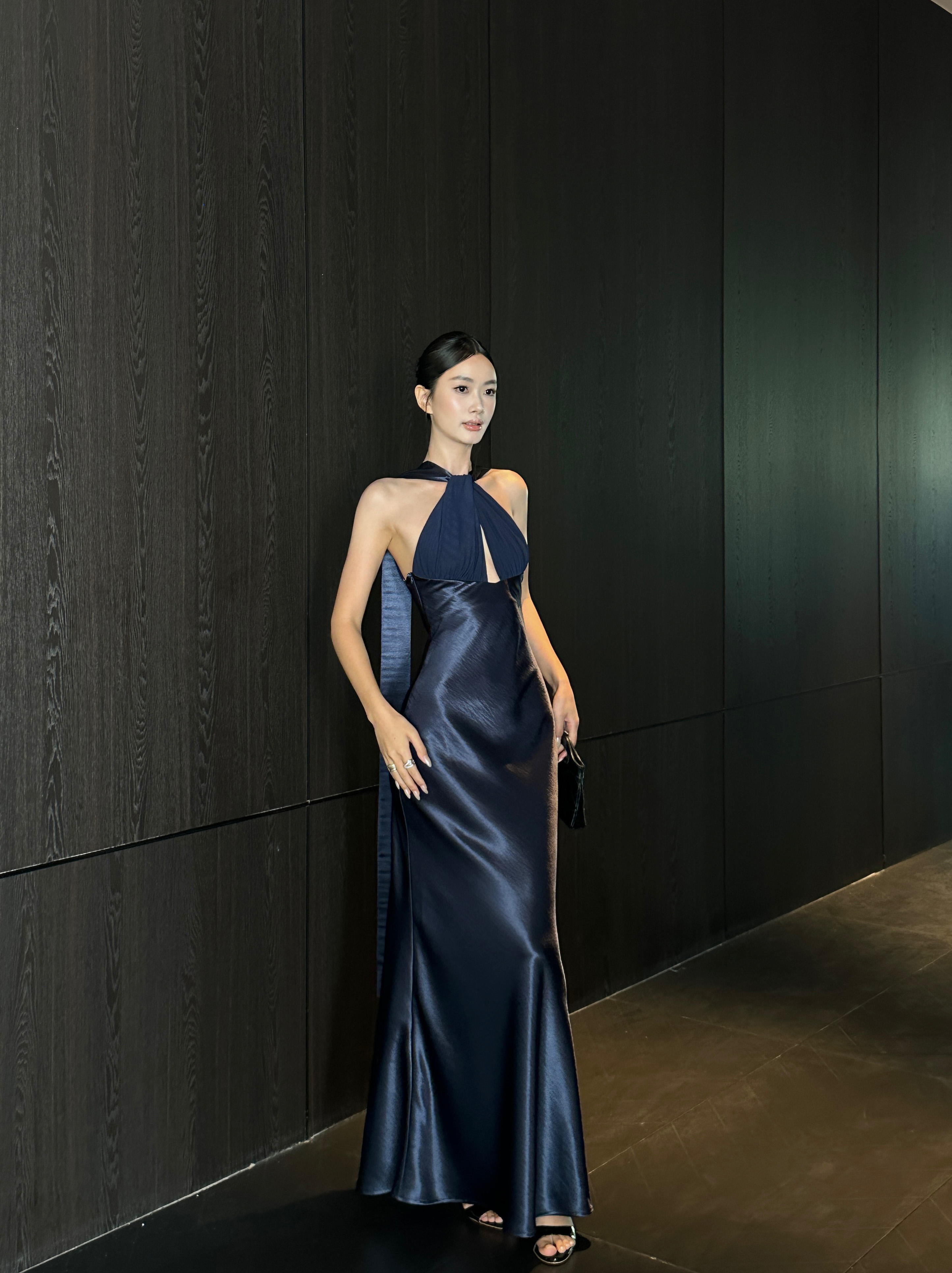 Venuie French-Style Party Slip Dress, Light Formal Dress for Women, Niche Evening Dress, Halter Neck Long Dress