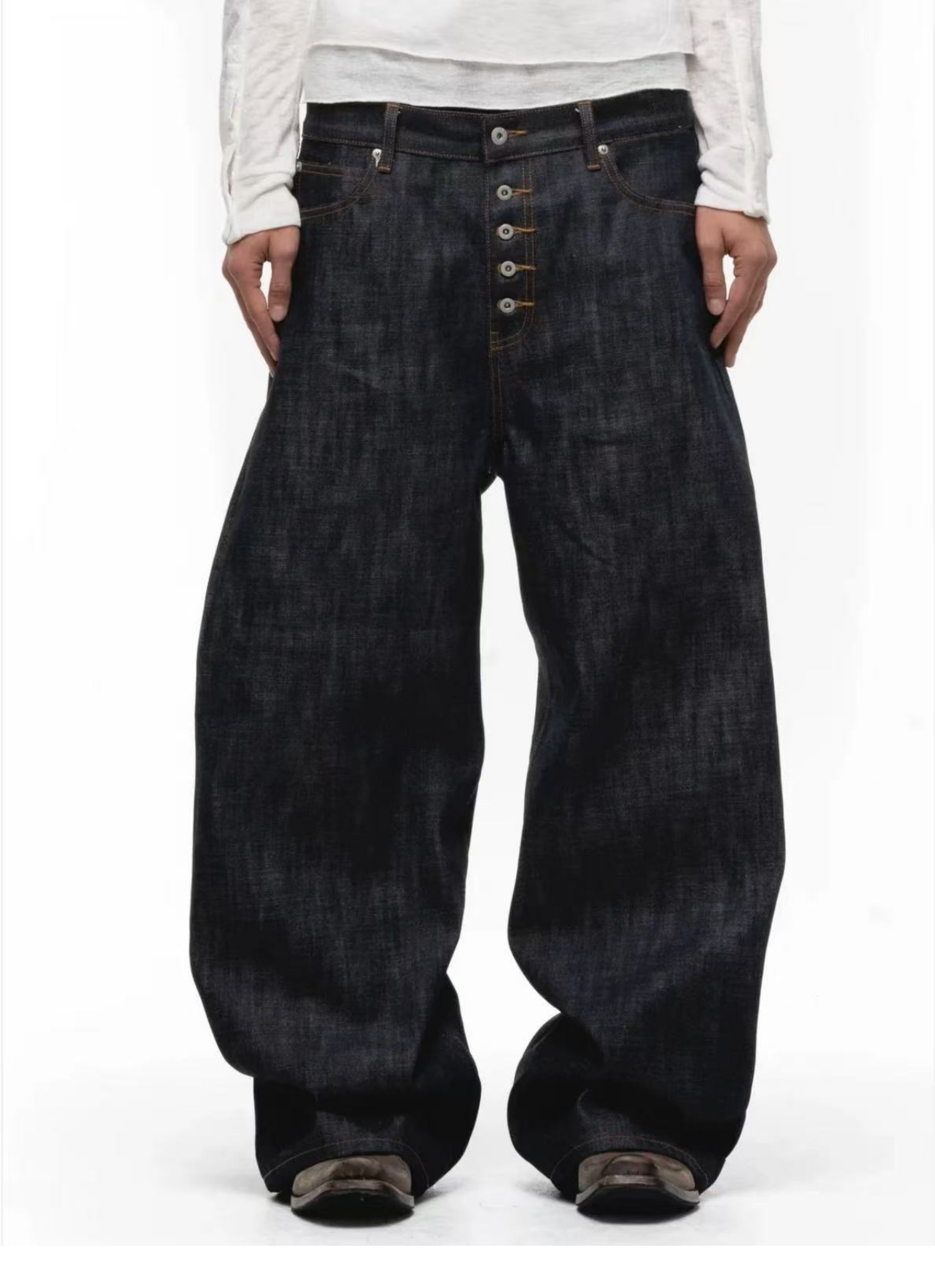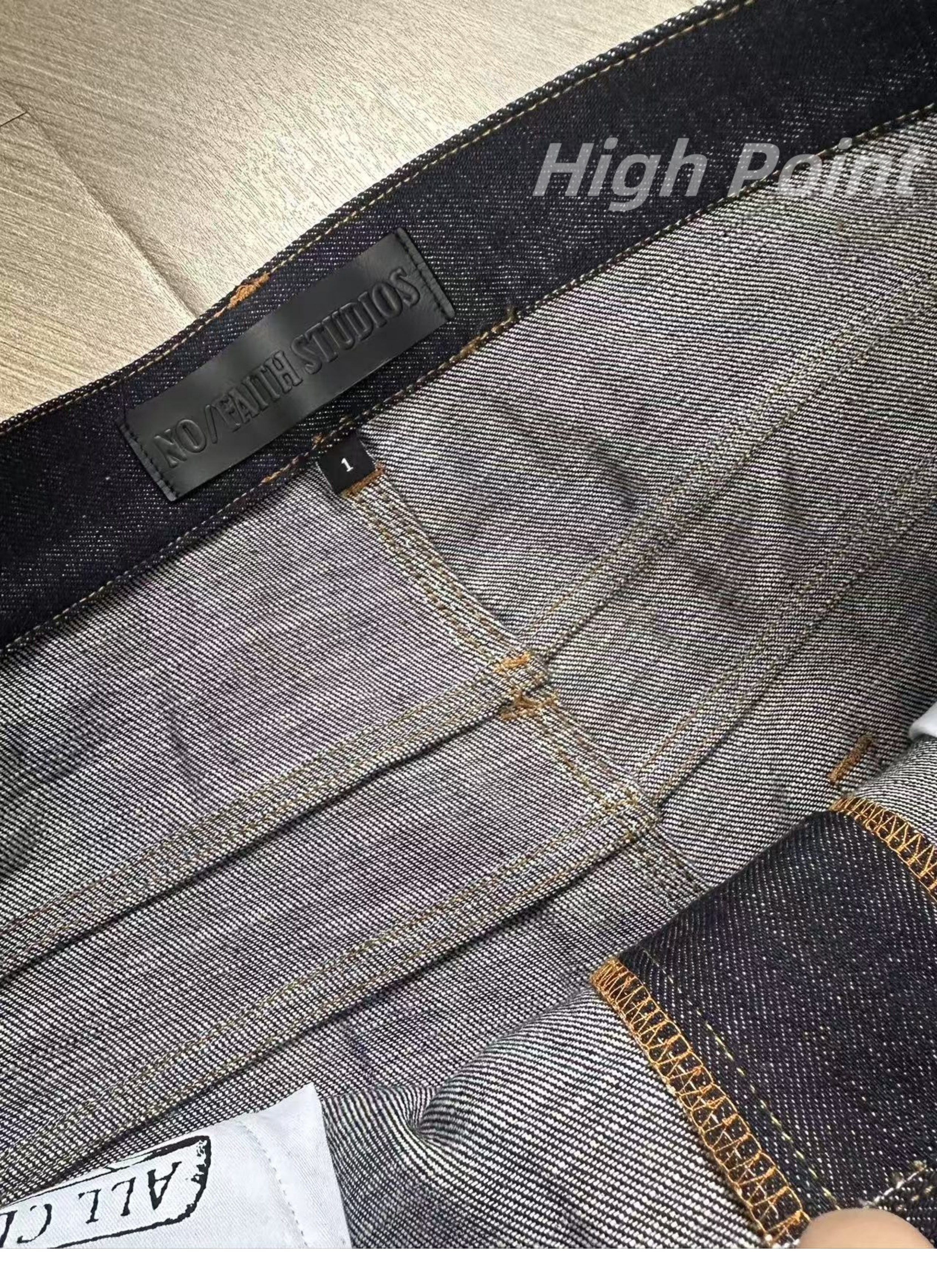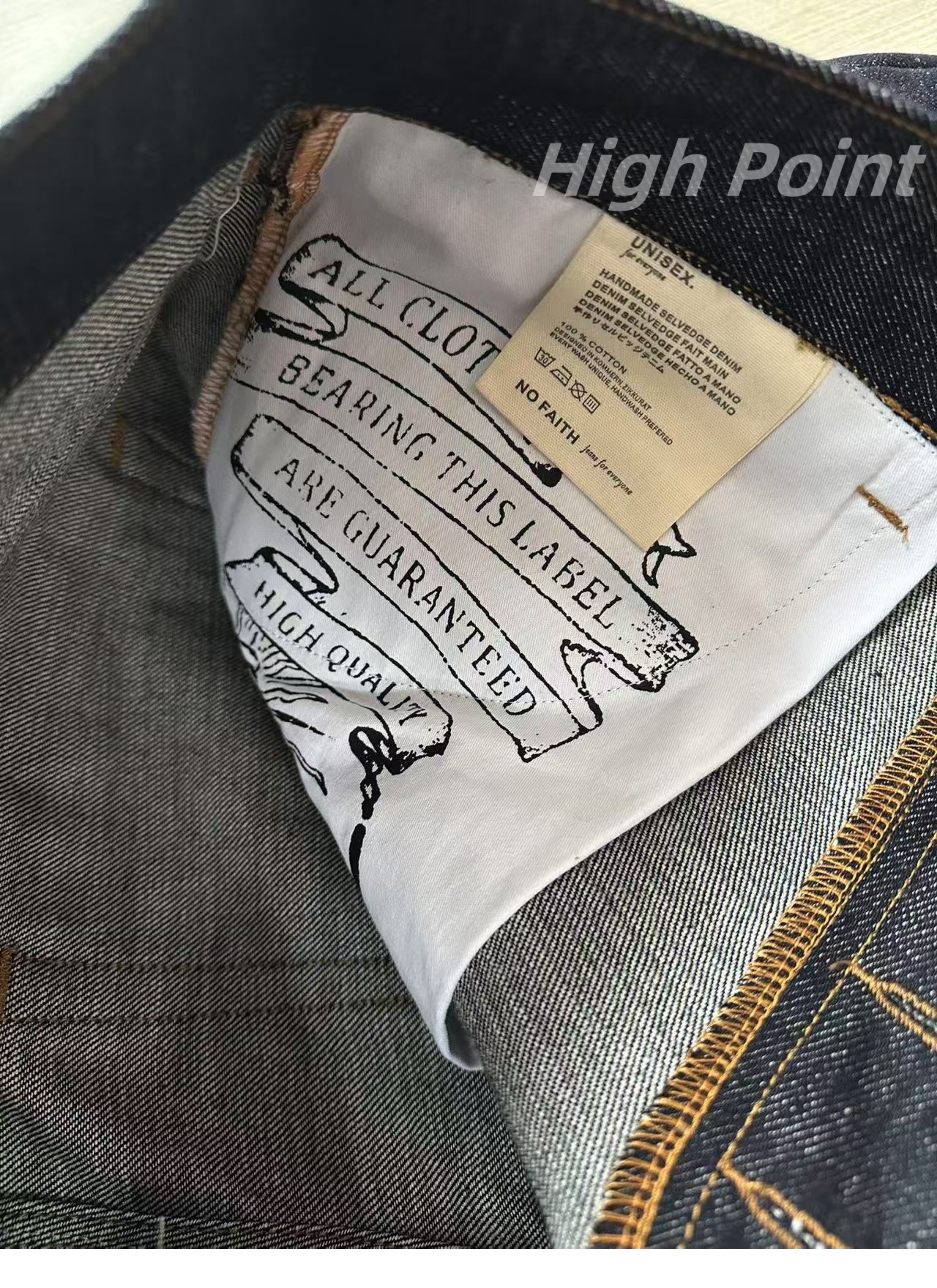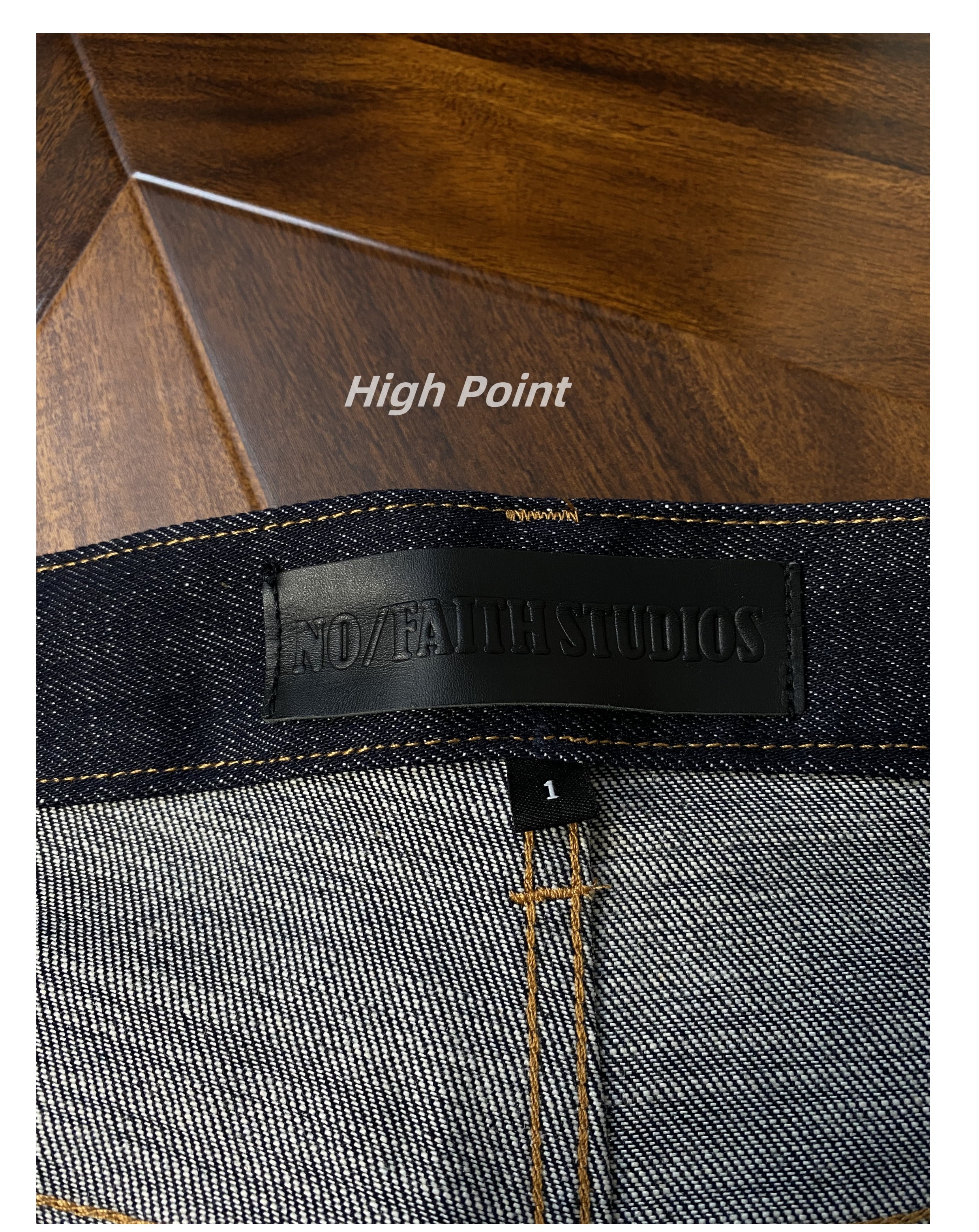 No Faith Studios Limited Edition Red-Edged Raw Denim Curved Knife A-Line Baggy Three-Dimensional Jeans