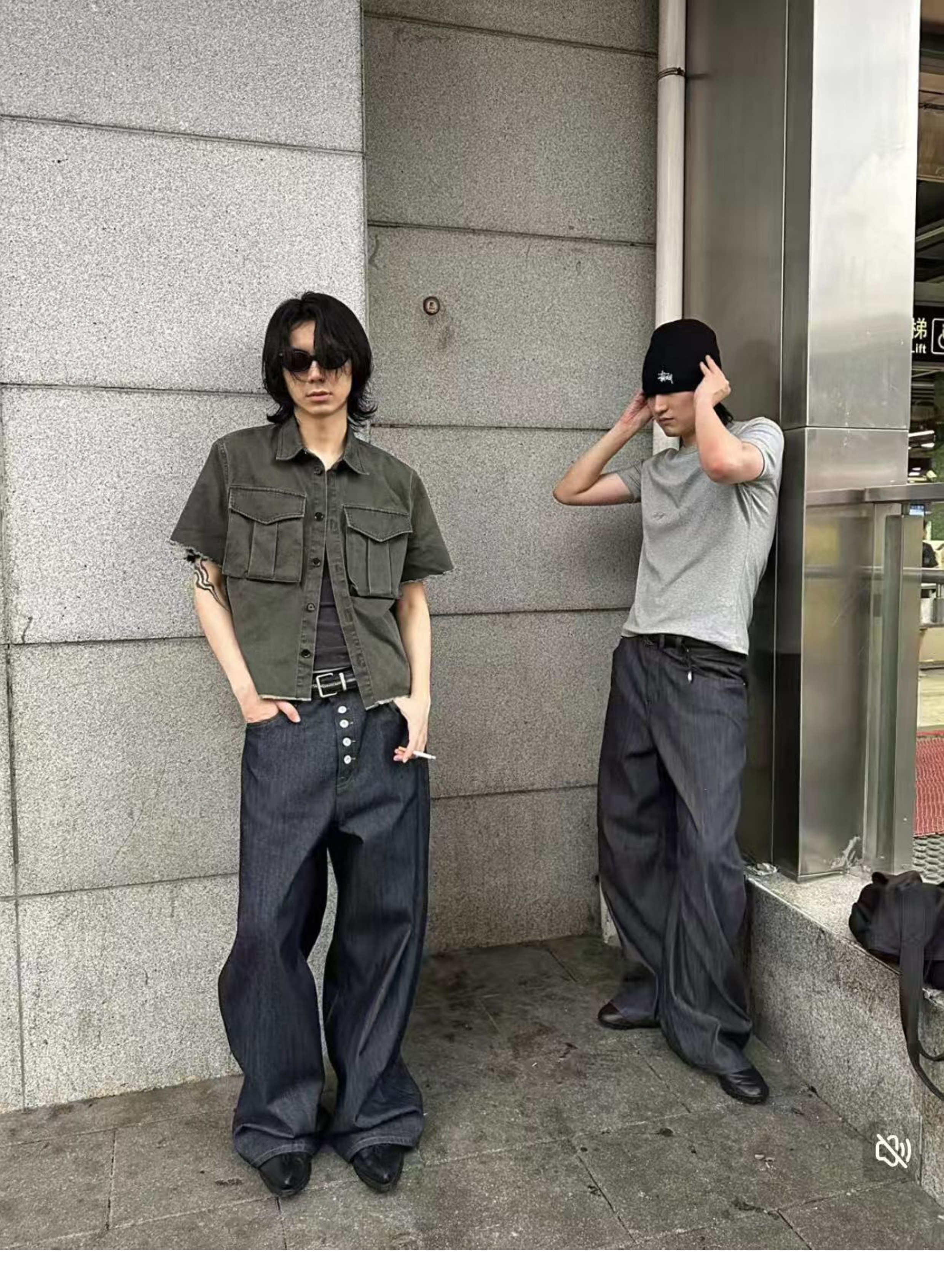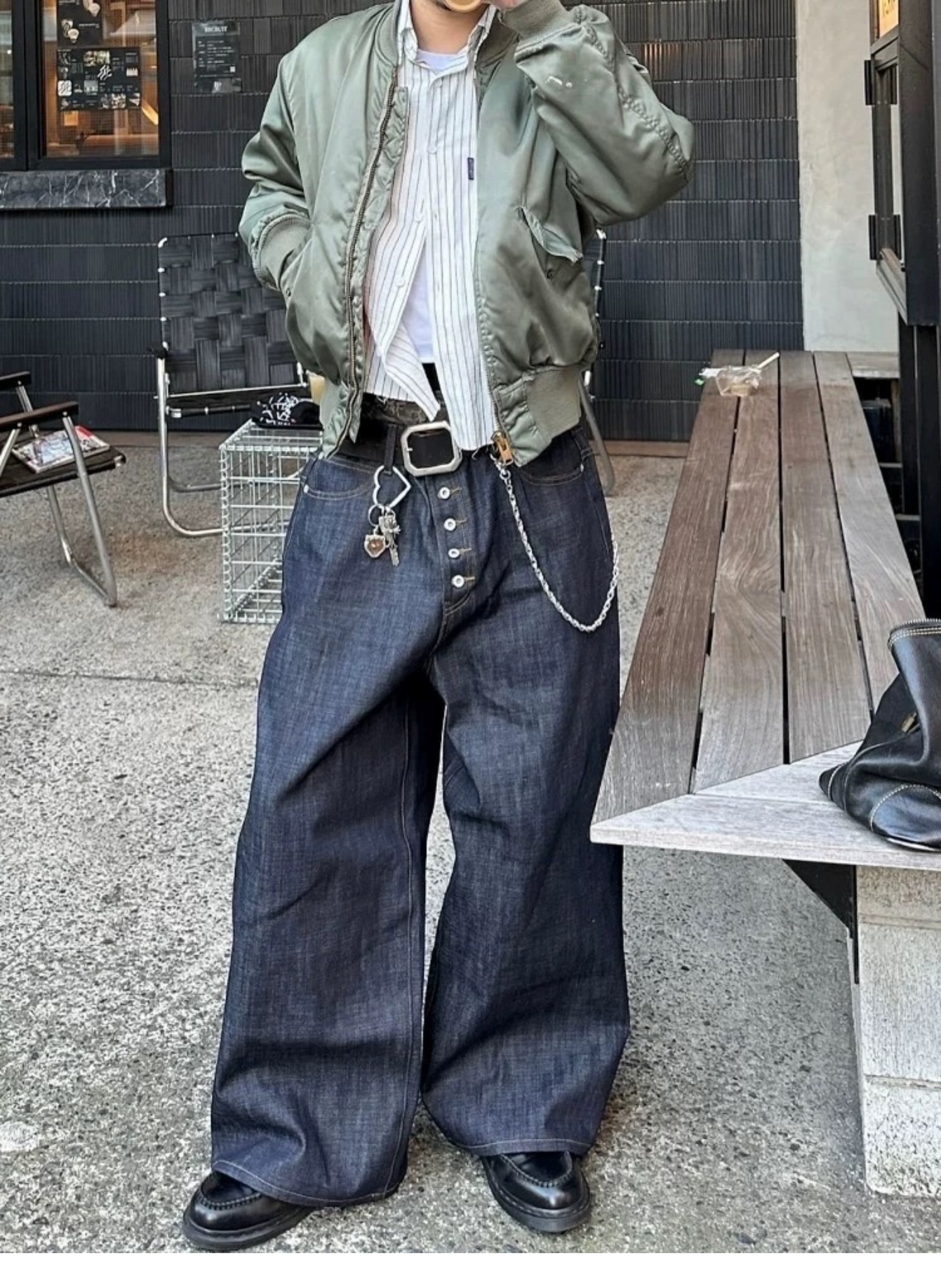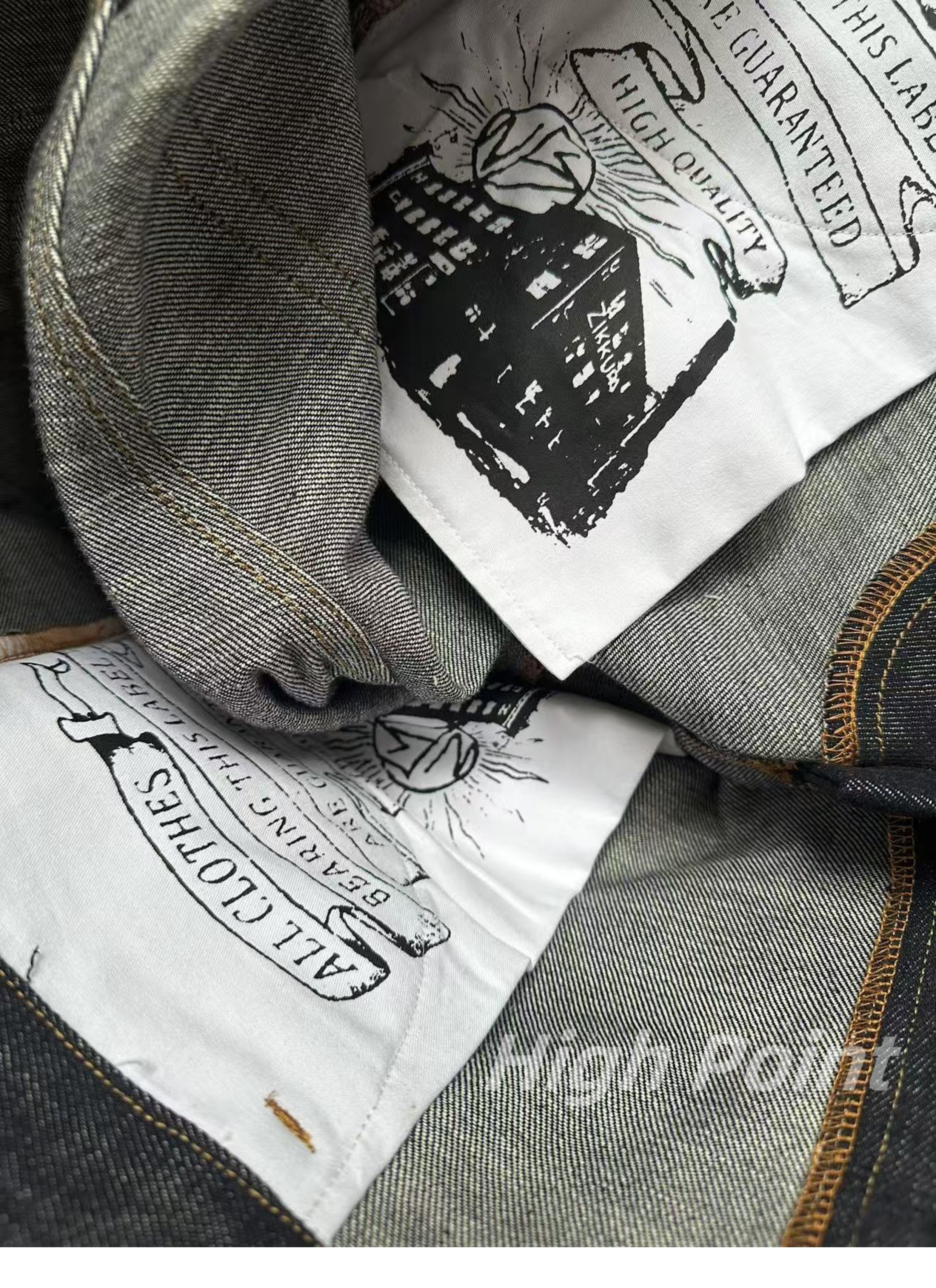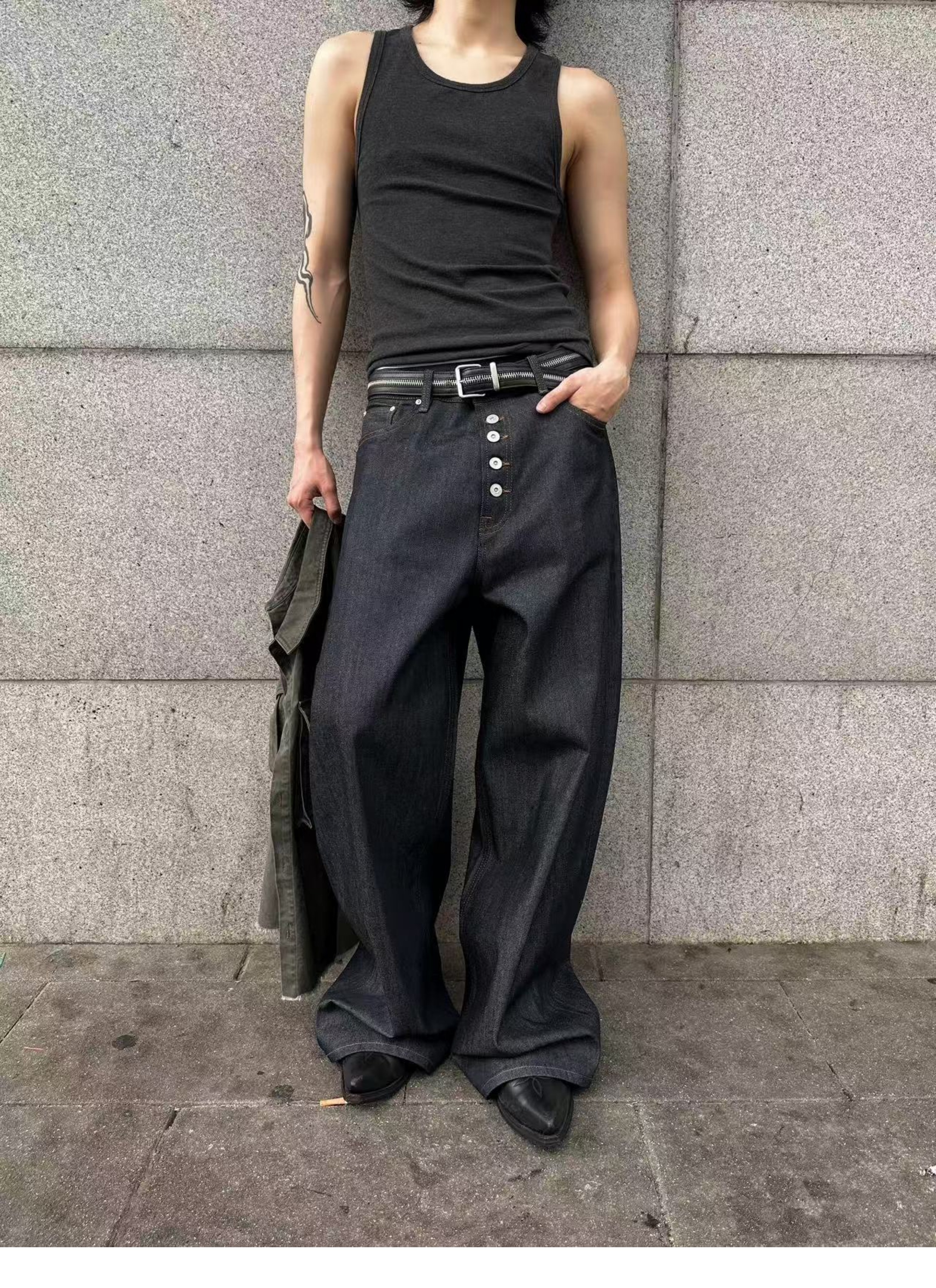 No Faith Studios Limited Edition Red-Edged Raw Denim Curved Knife A-Line Baggy Three-Dimensional Jeans