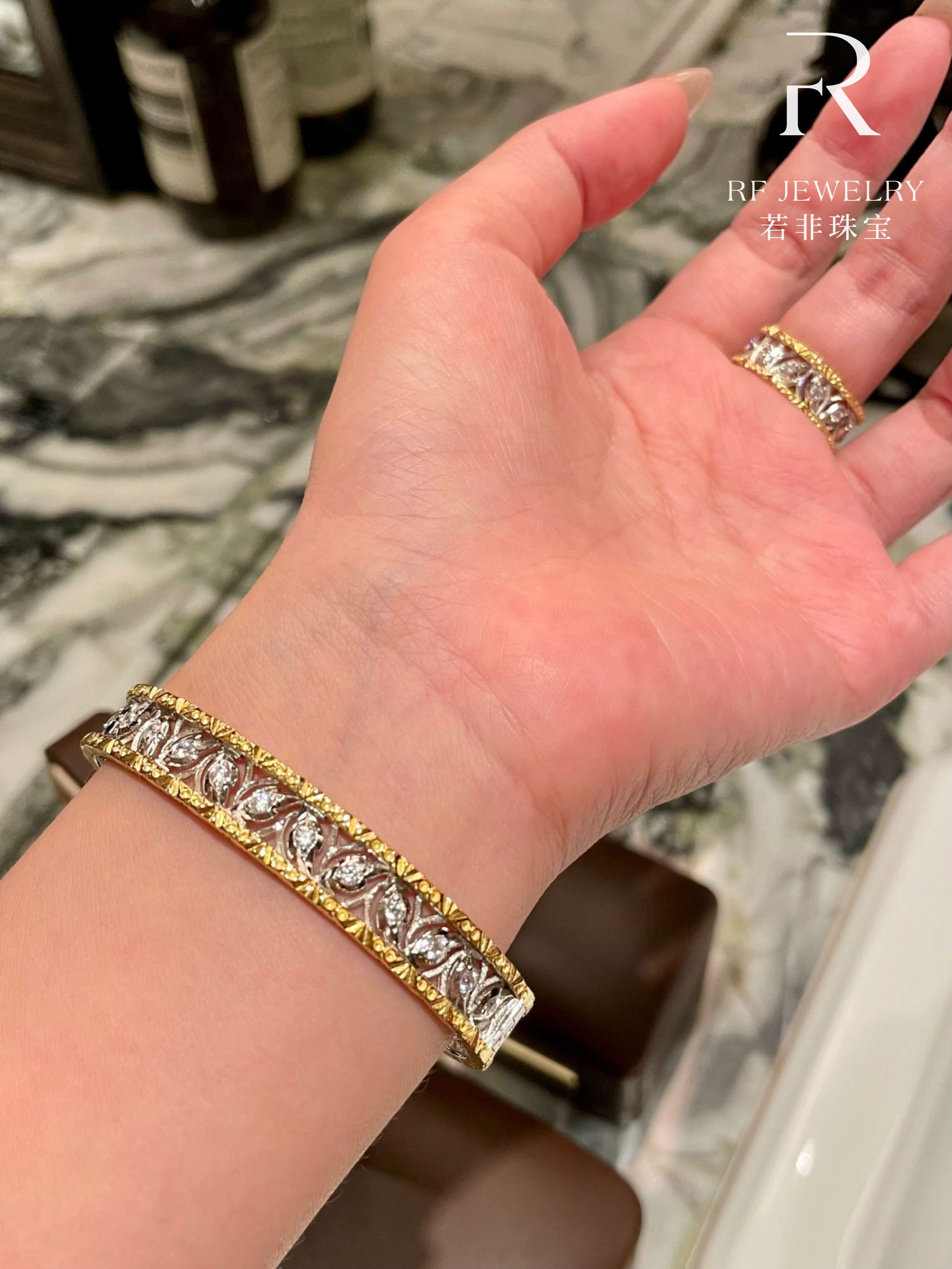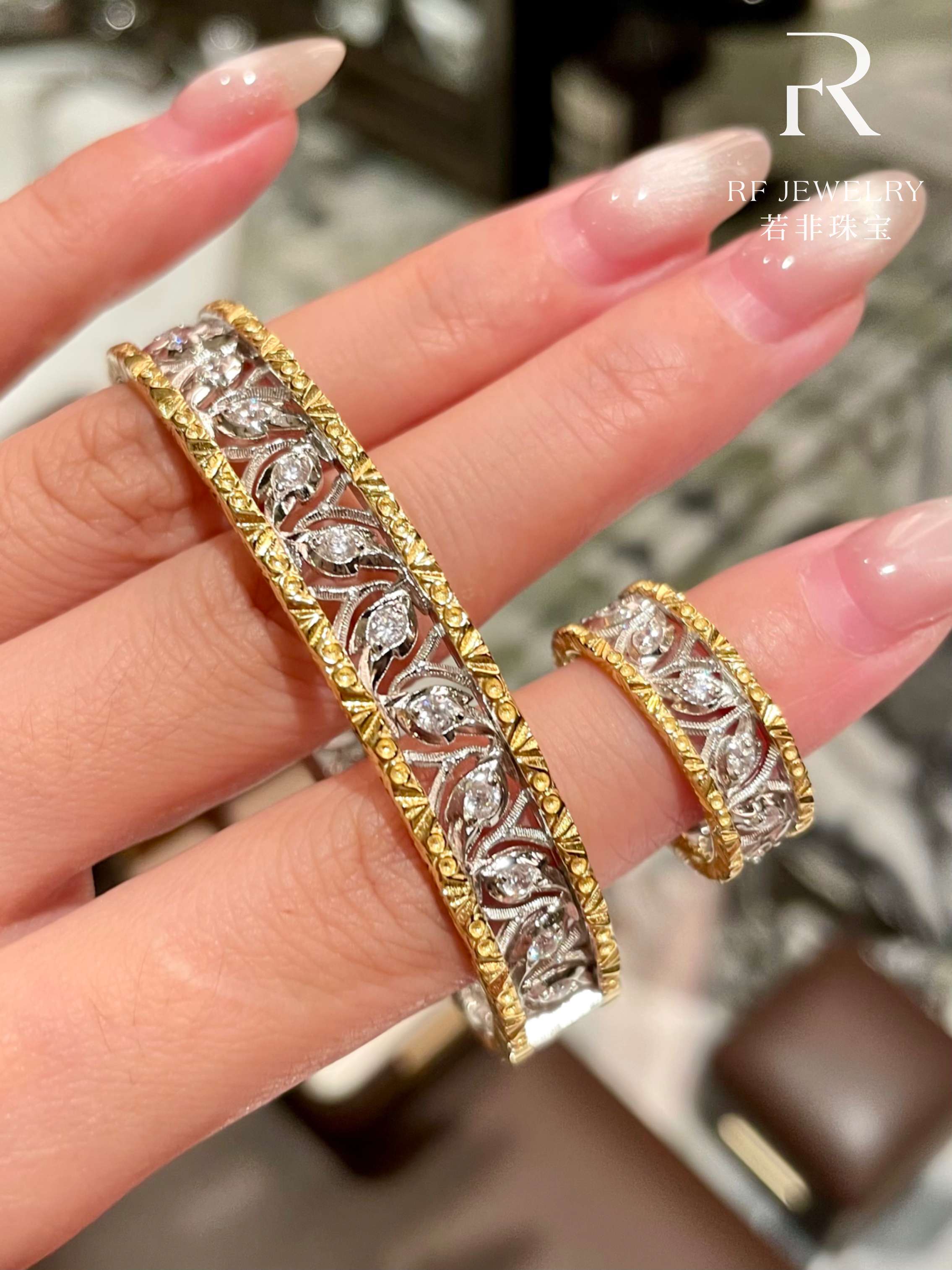 If It Were Not for Jewelry|Vintage Hollow Carved Palace-Style Bracelet and Ring Set|S925 Silver Gold-Plated