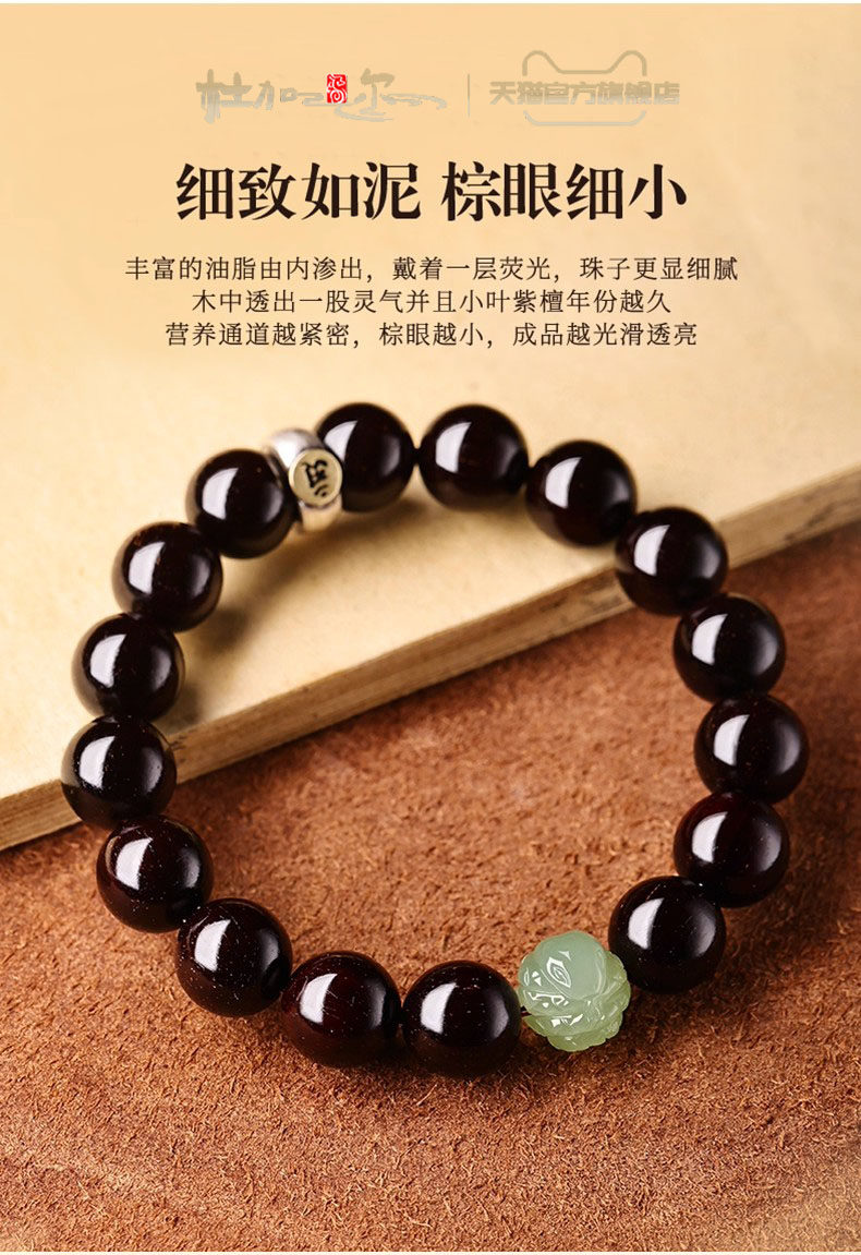 Duguer Natural High-Grade Small-Leaf Rosewood Bracelet, High-End Wooden Sandalwood Prayer Beads Bracelet, Gift for Father or Husband