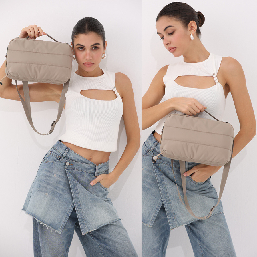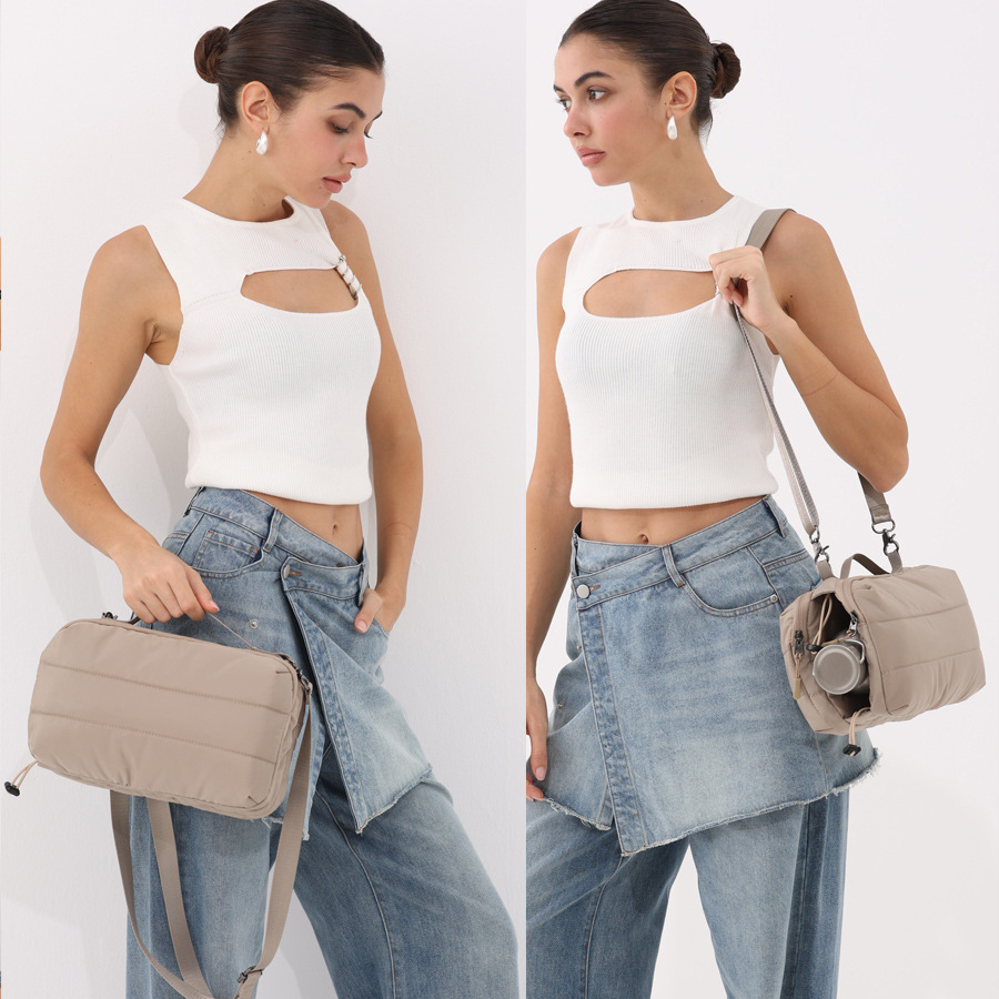 Casual Quilted Water Bottle Bag, Padded and Fluffy Crossbody Water Bottle Bag, Large Capacity Outdoor Umbrella Storage Shoulder Bag for Women