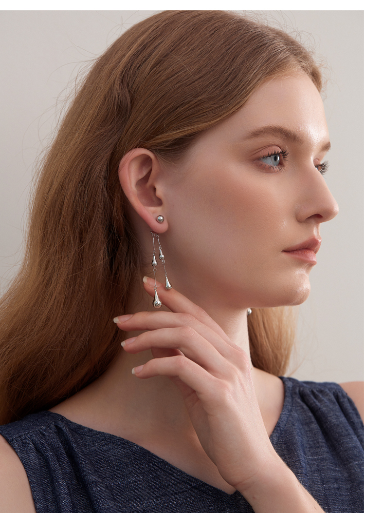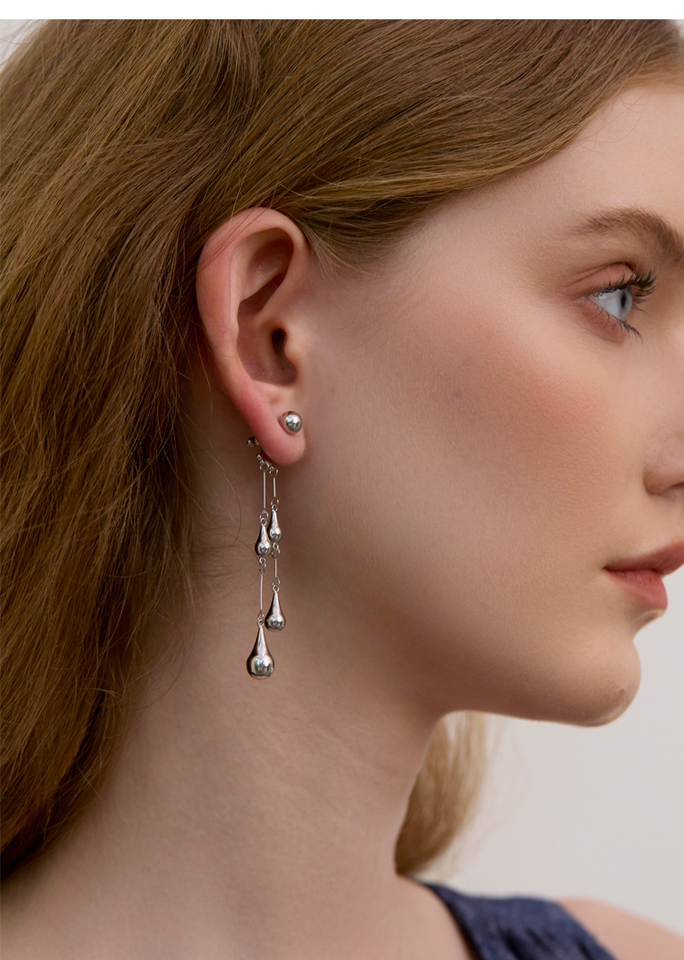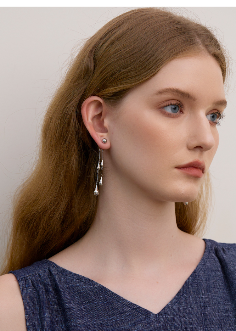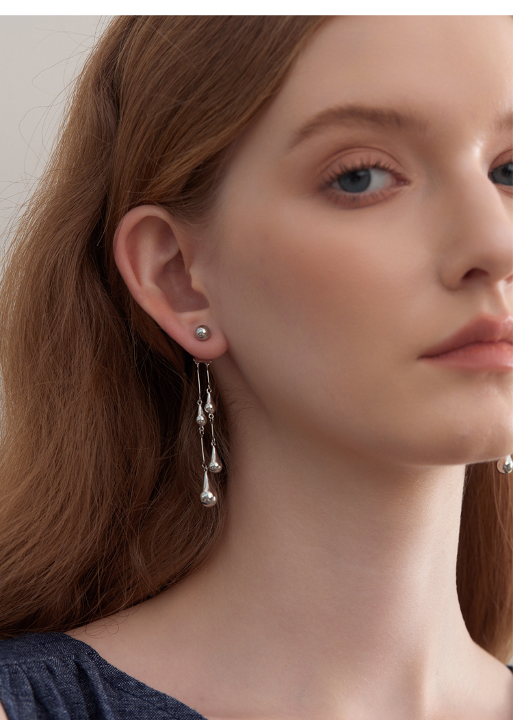 Absurd Day Raindrop-Like Versatile Romantic Cool Detachable Water Drop S925 Silver Needle Earrings