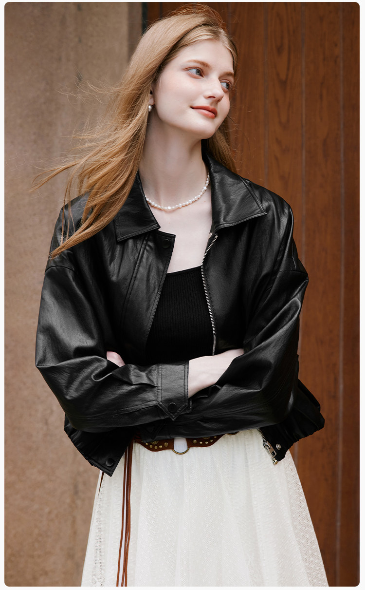 Xiangying Black Leather Jacket for Women 2026 Spring New Style Petite Soft Leather Motorcycle Cool Short Pu Jacket