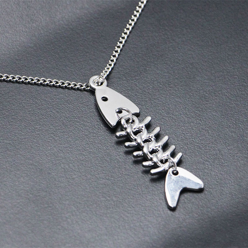 Vintage Chain Small Fish Bones Unique Fishbone Necklace European and American Style Personality Pendant Trendy