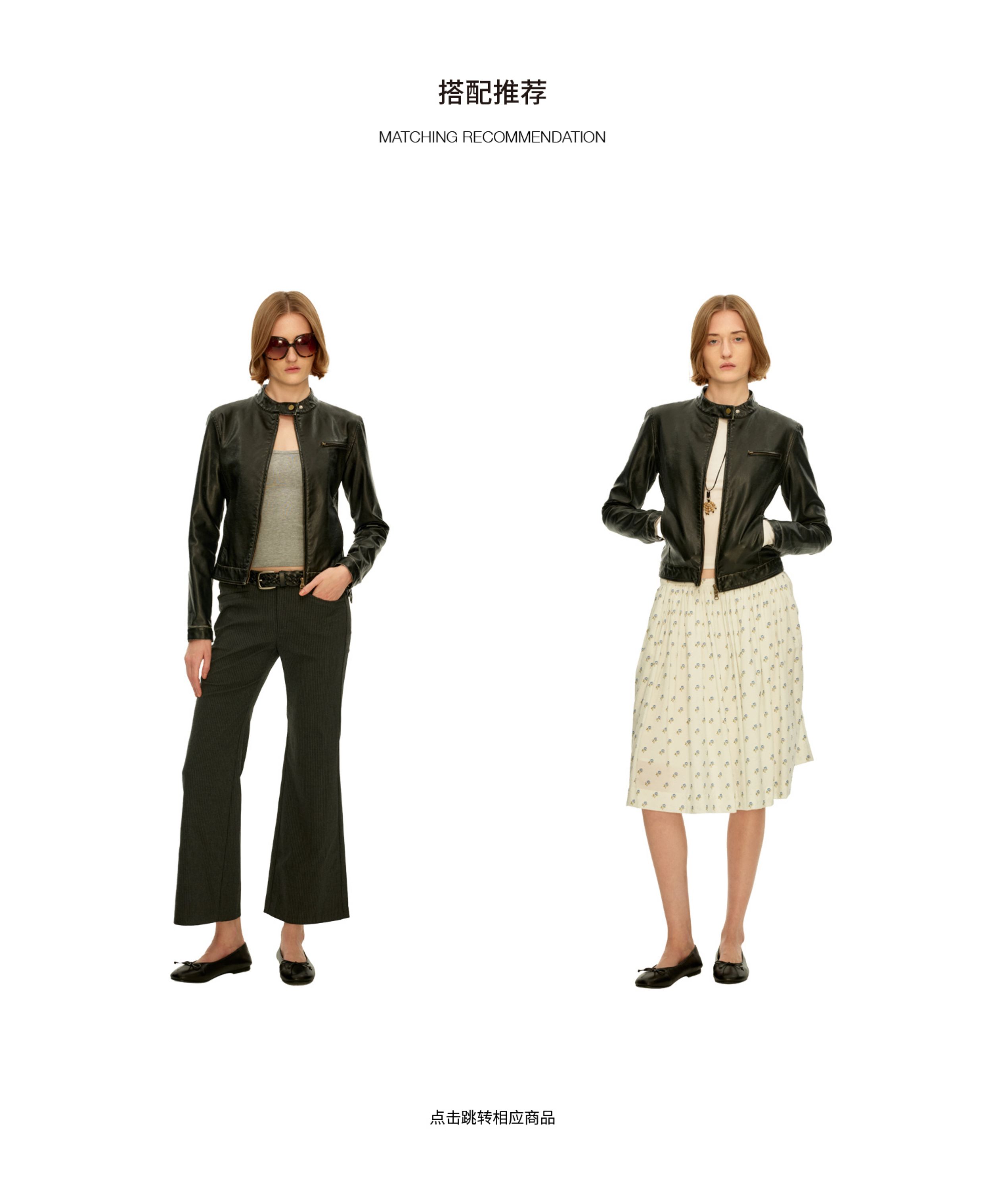 Firstfloor Modern and Straightforward Style Retro Slim-Fit Short Washed Leather Biker Jacket Short Coat