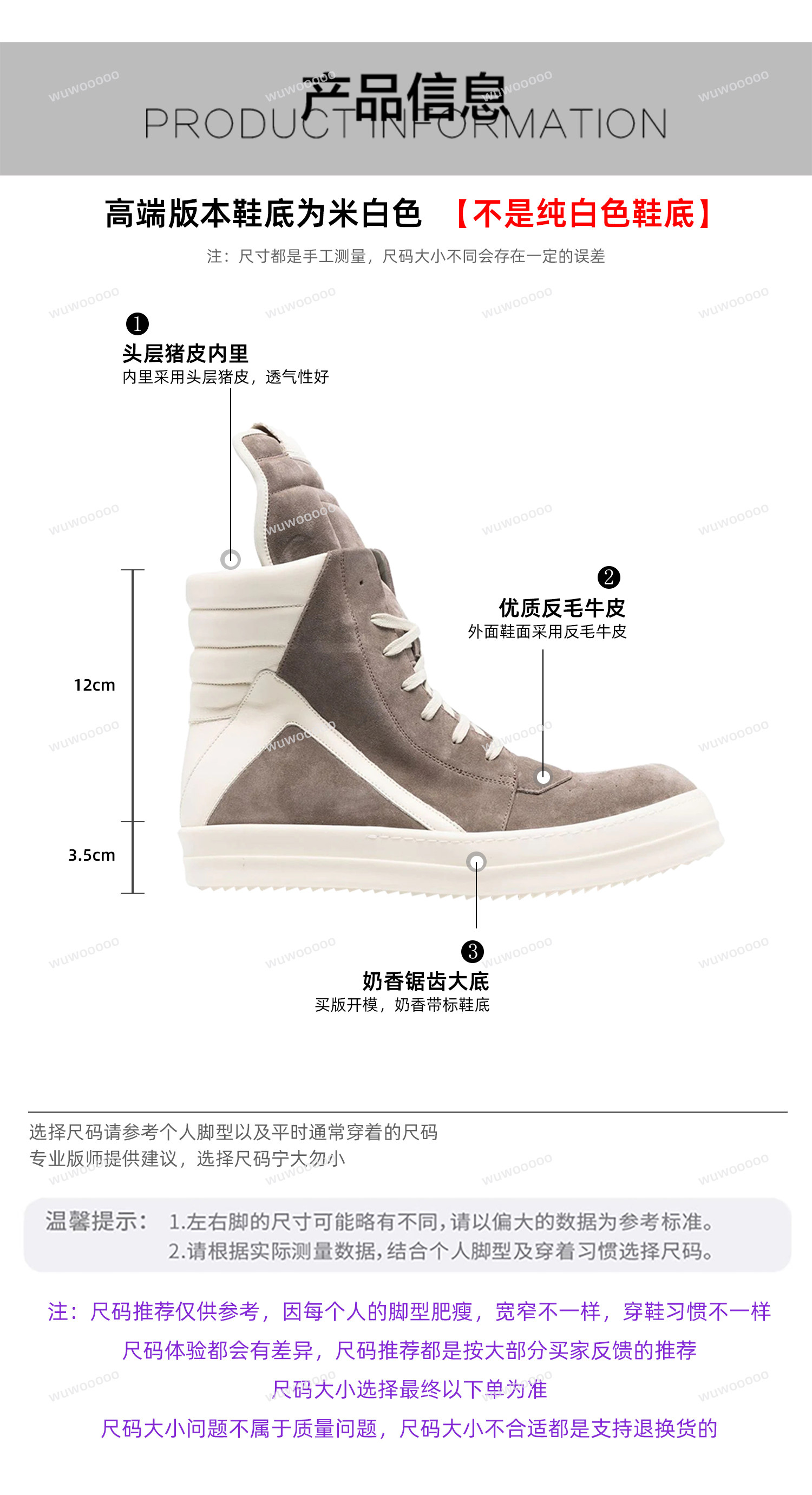 European Trendy Shoes Ro Inverted Triangle Suede Brown-Gray Oatmeal Color High-Top Shoes Men's Thick-Soled Height-Increasing Sneakers Niche Short Boots