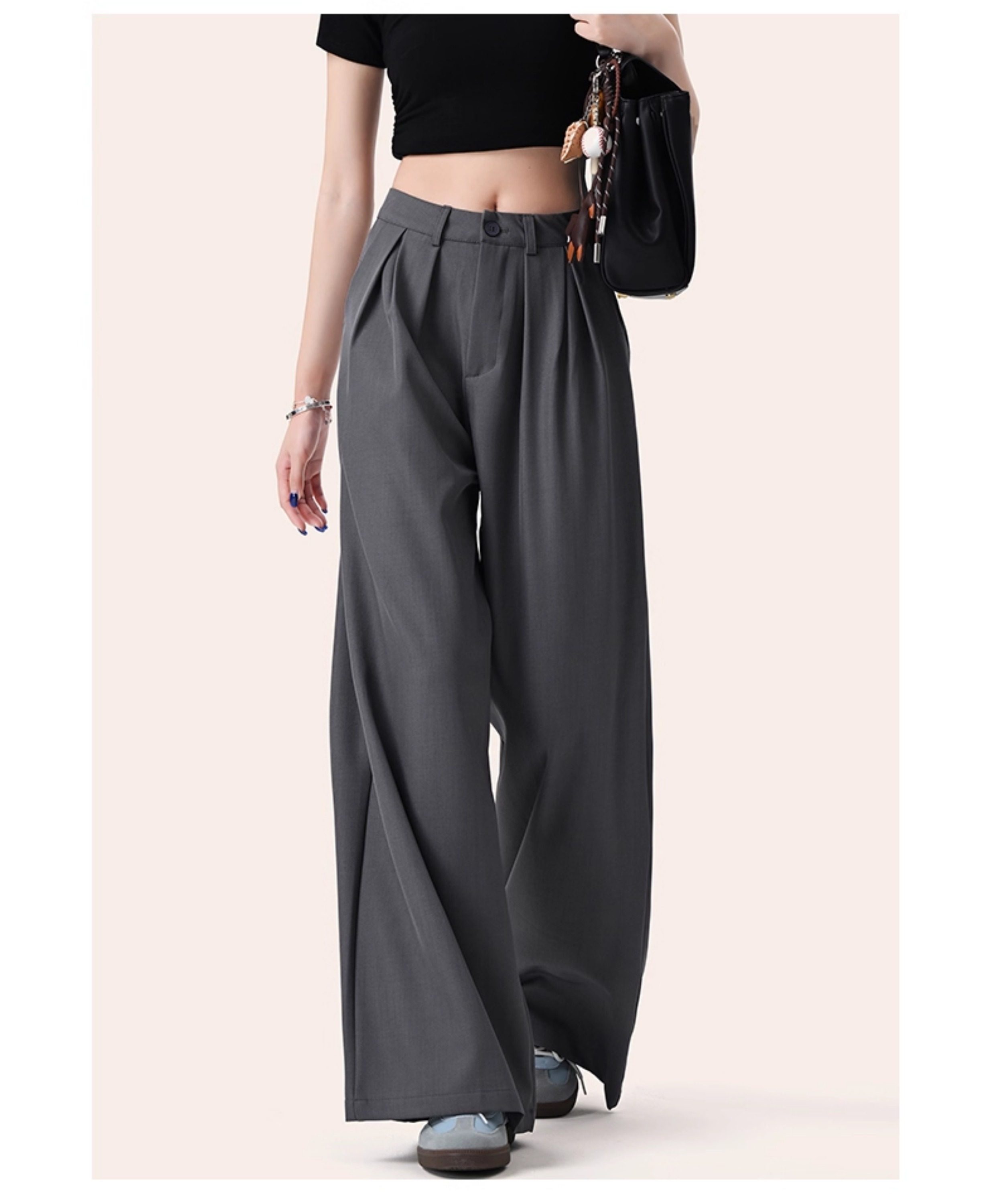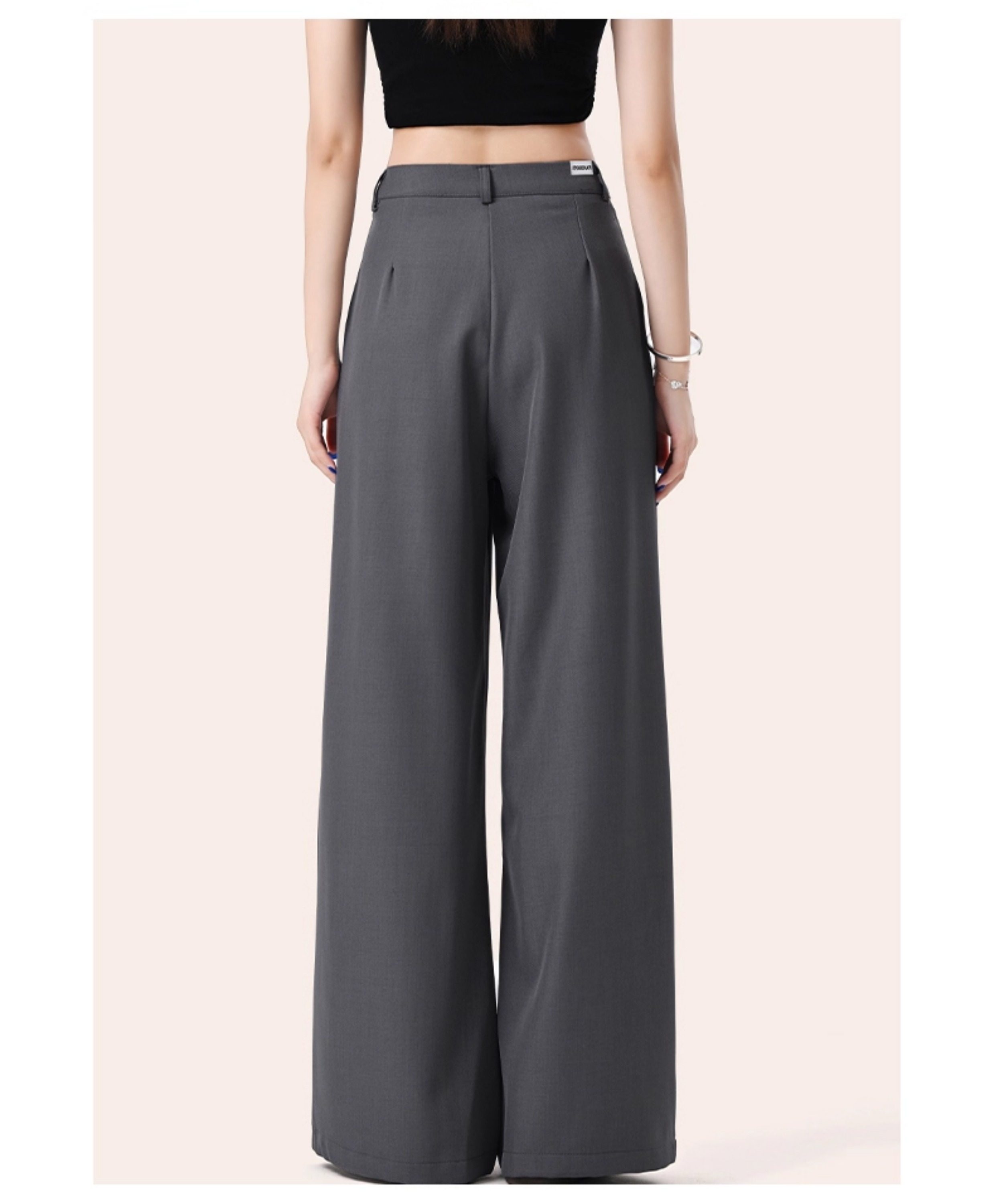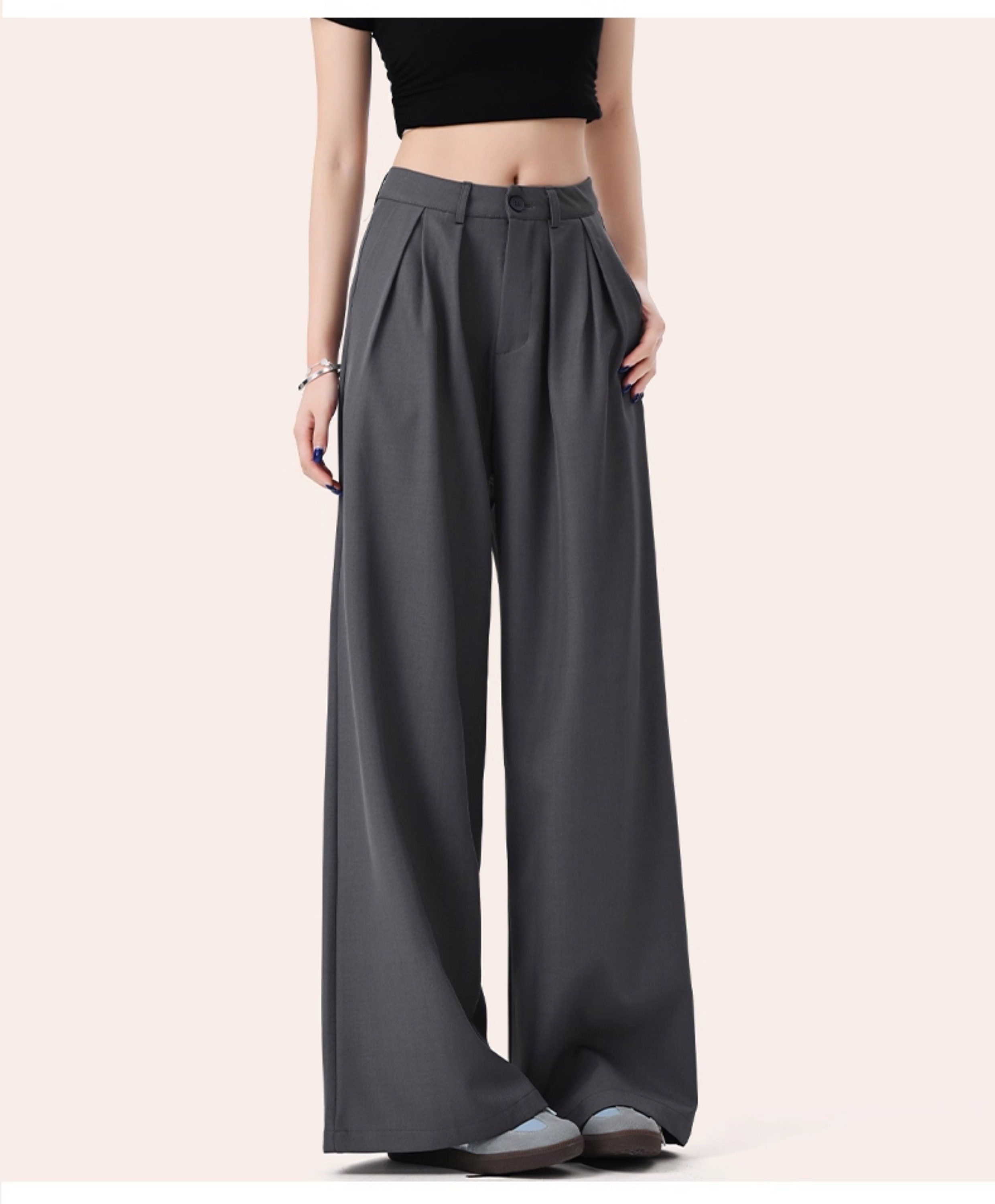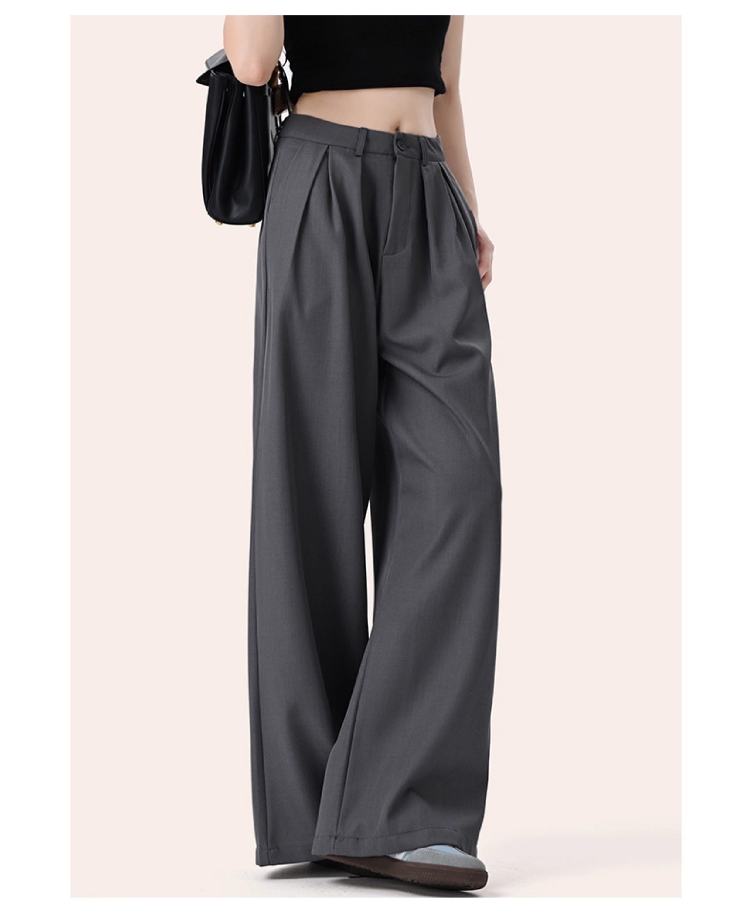 It:Chocoolate Gray High-End Simple Suit Wide-Leg Pants for Women, New Summer Style, Slimming Long Pants with a Draping Effect