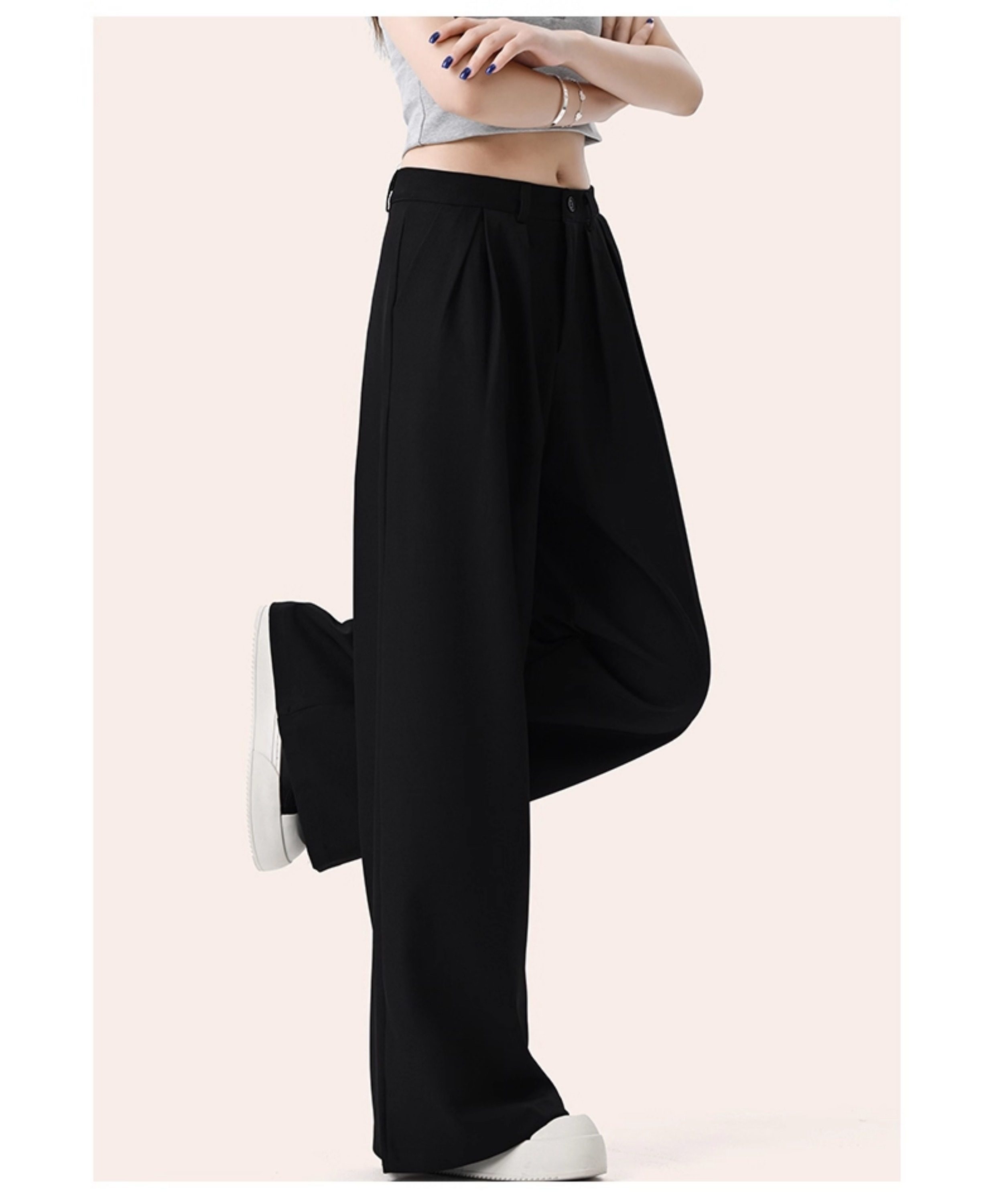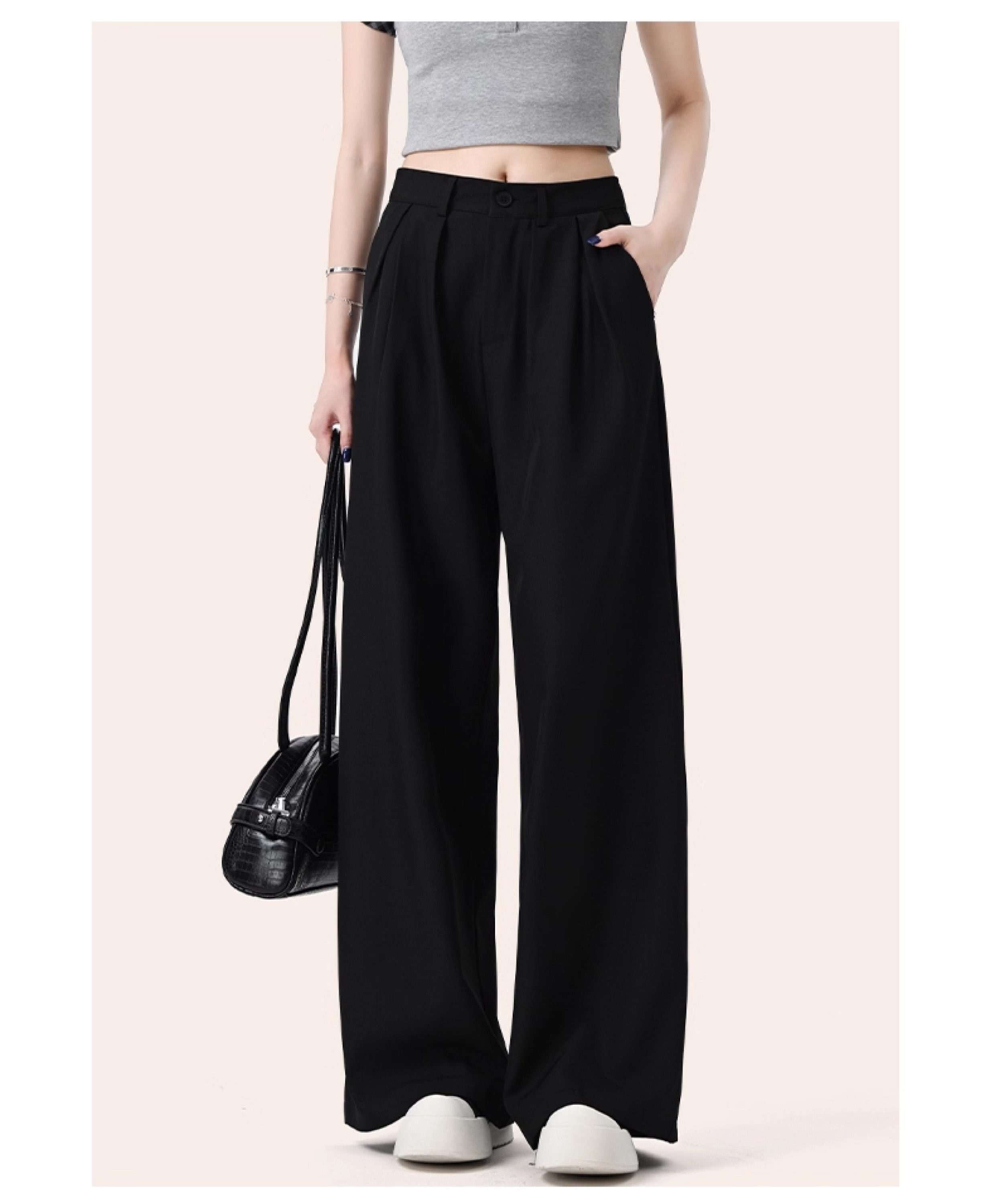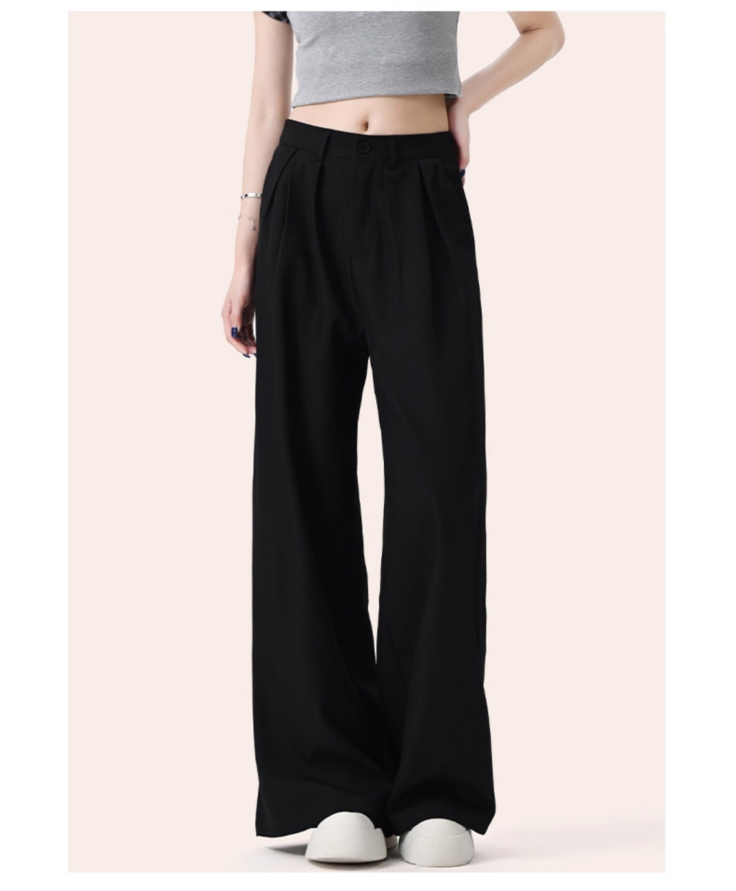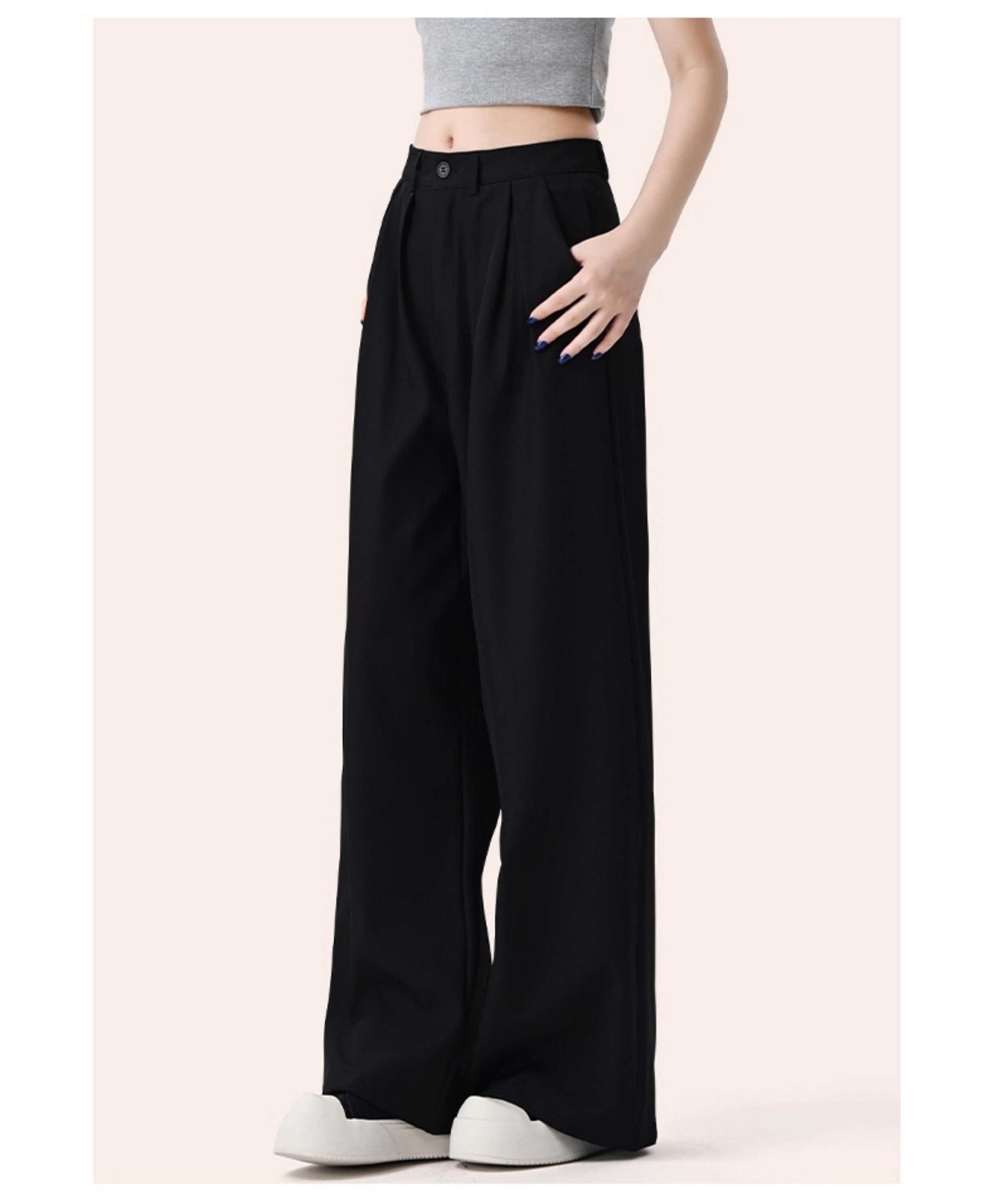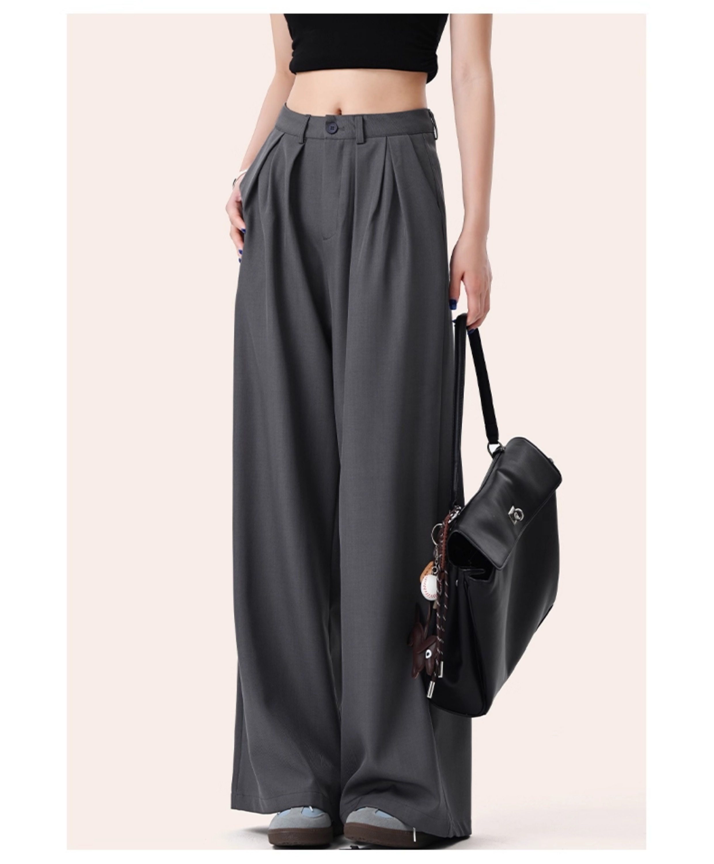 It:Chocoolate Gray High-End Simple Suit Wide-Leg Pants for Women, New Summer Style, Slimming Long Pants with a Draping Effect