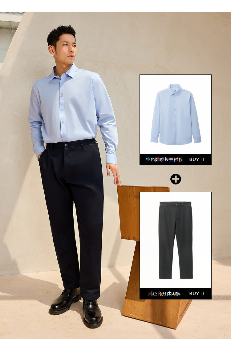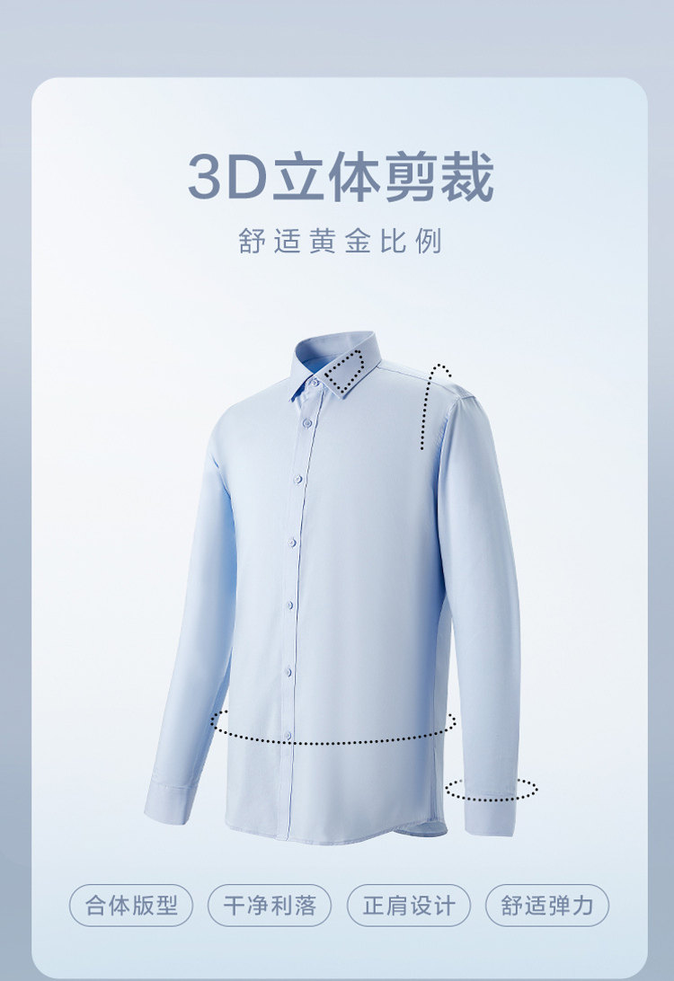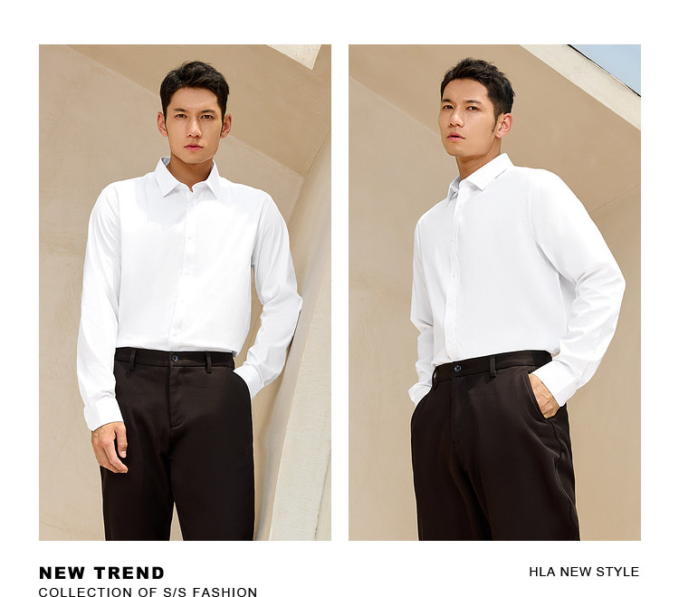【Business Suit】Heilan Men's Long-Sleeve Shirt White Dress Shirt Business Wrinkle-Free Wedding Shirt