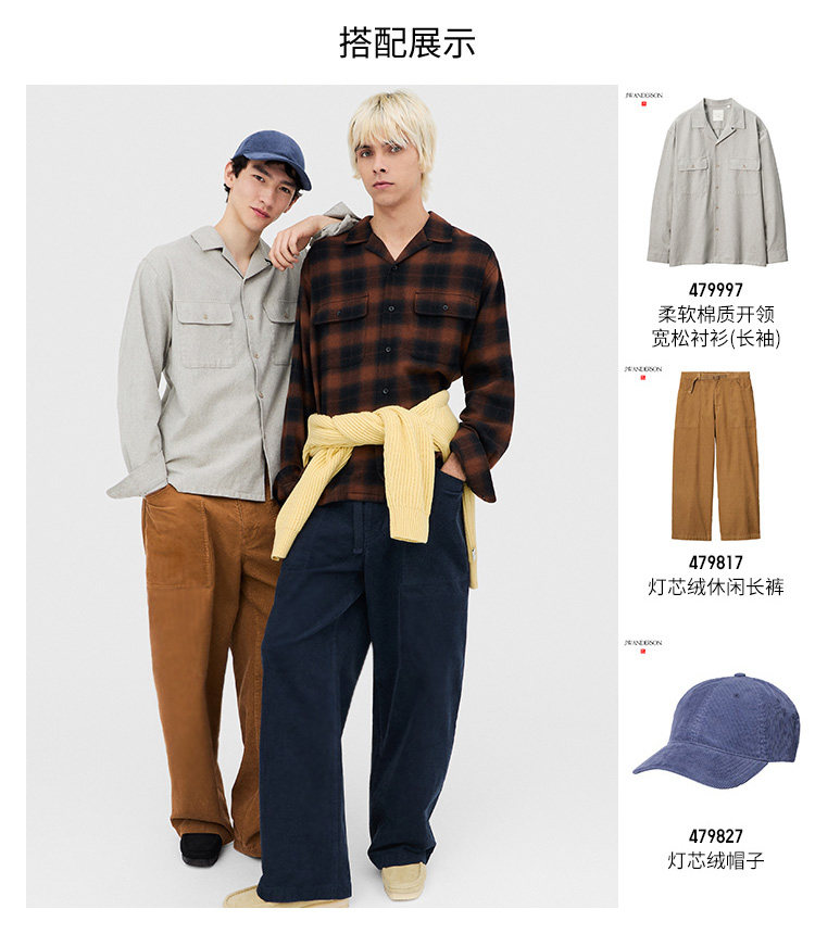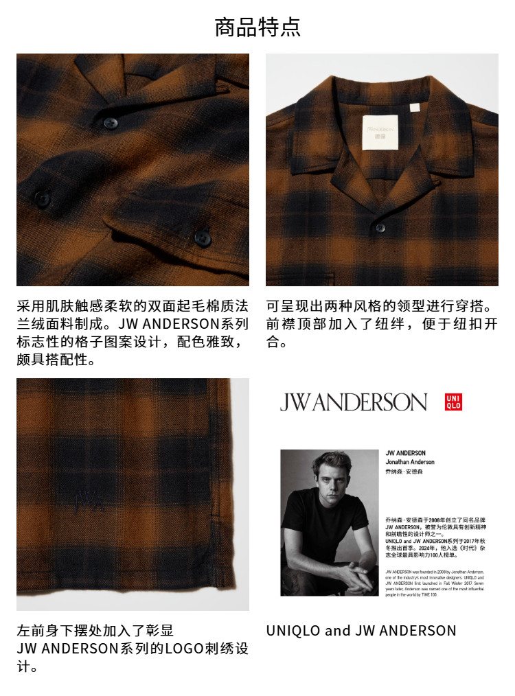 Uniqlo Collaboration Men's and Women's Soft Cotton Open-Collar Loose Plaid Shirt Long-Sleeve 480803