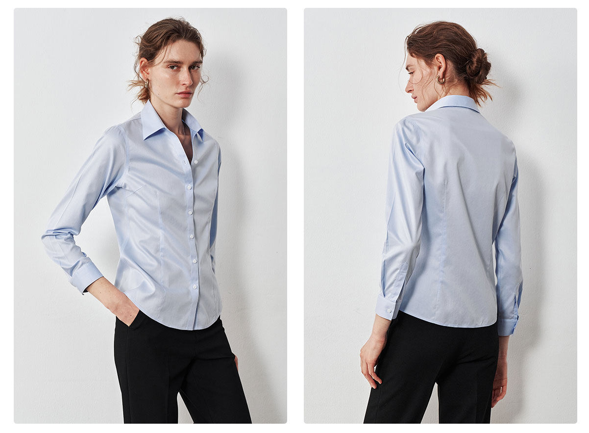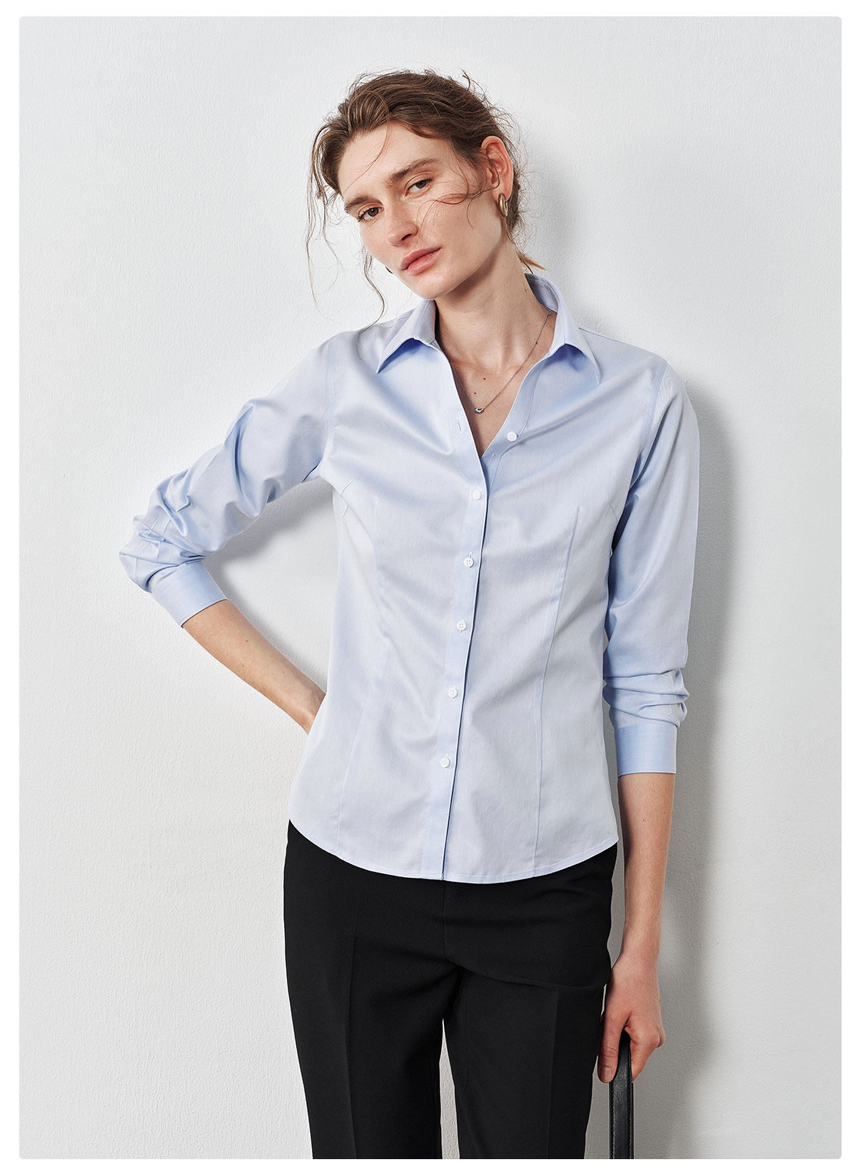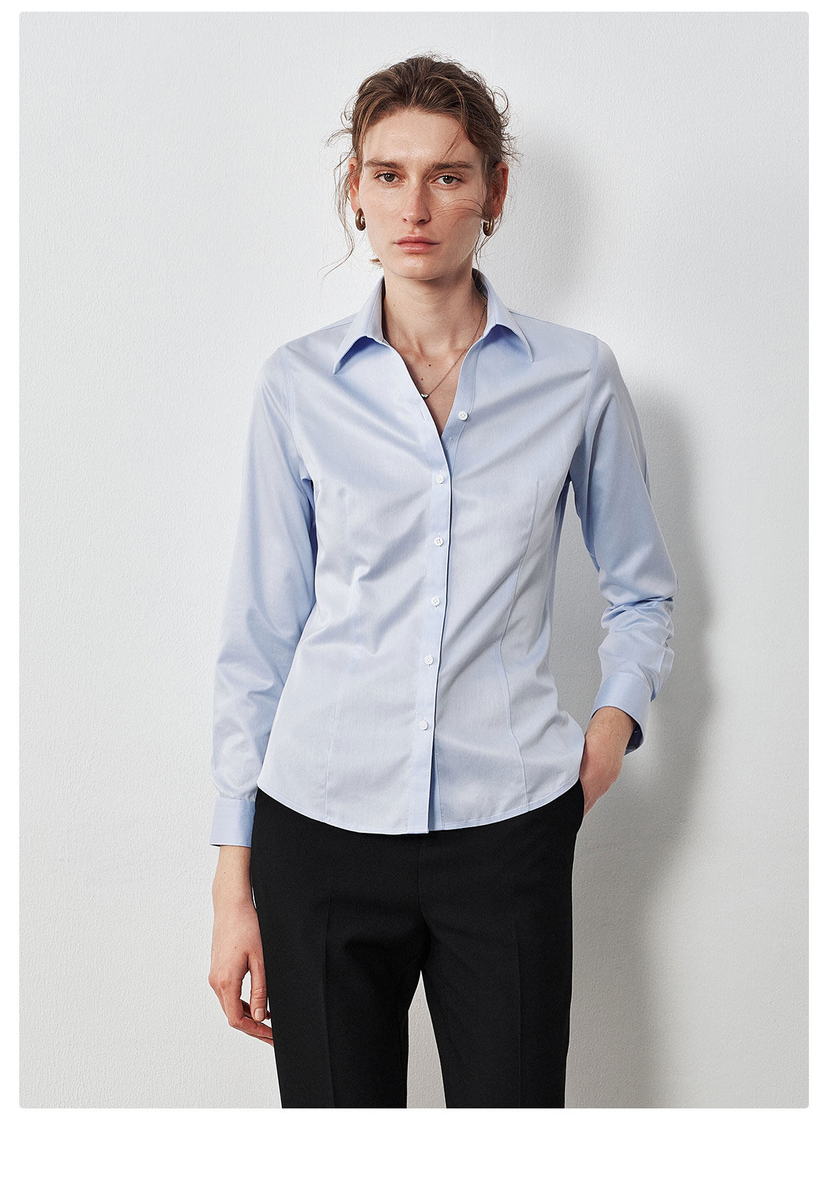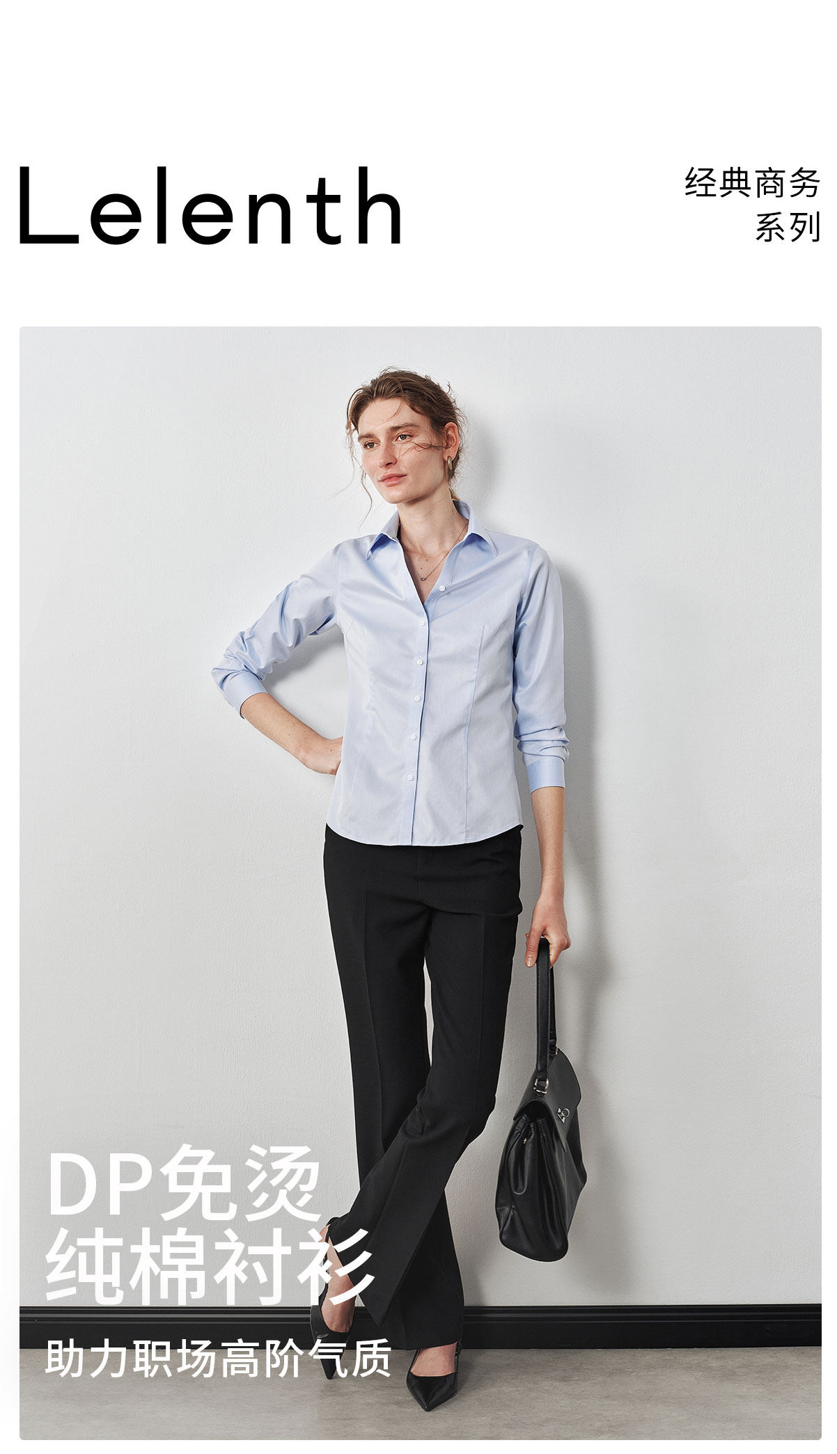 【Pure Cotton, No Ironing】Lelenth V-Neck Professional Blue Shirt for Women, Wrinkle-Resistant, Suitable for Civil Service Exams and Interviews, Can Be Worn under a Suit