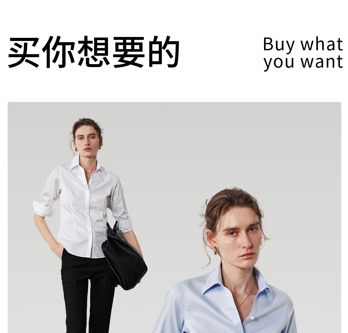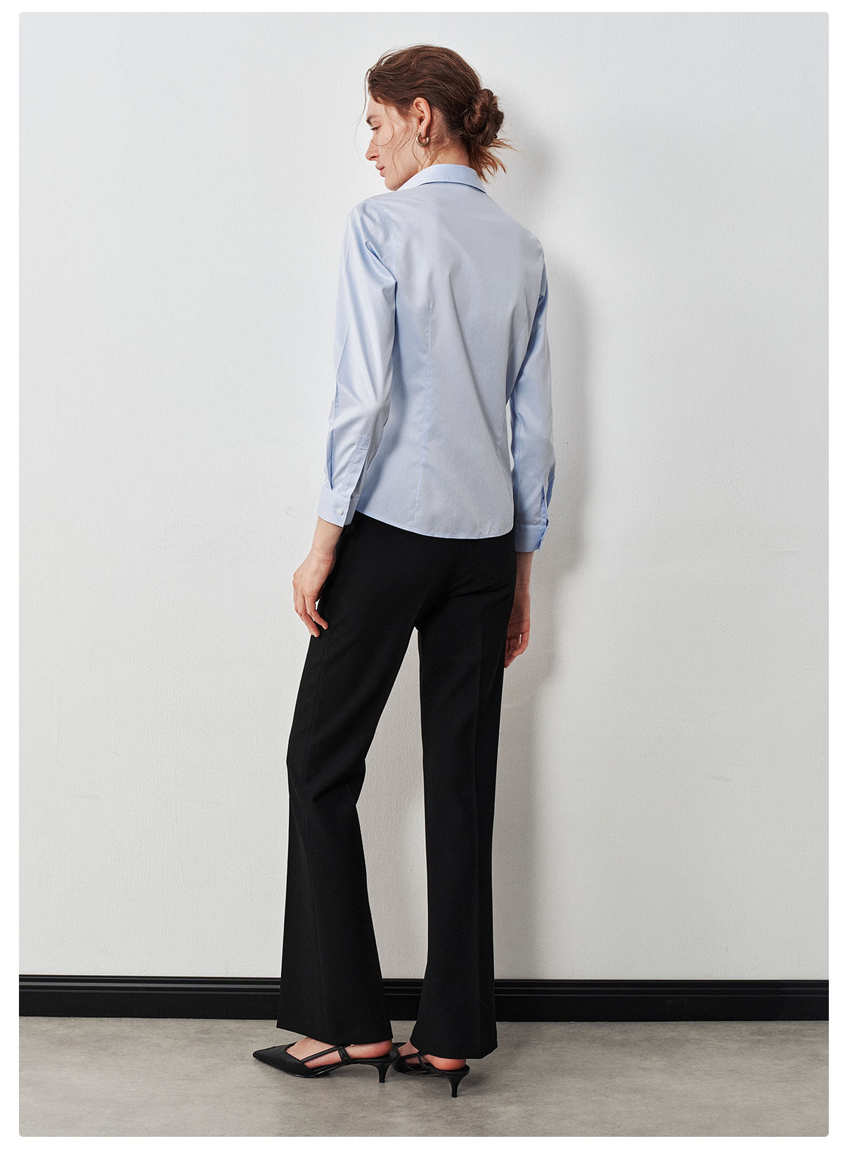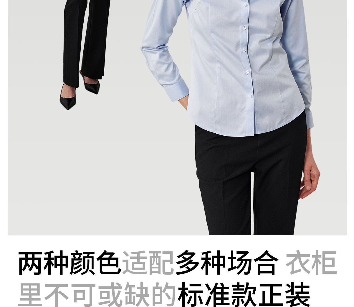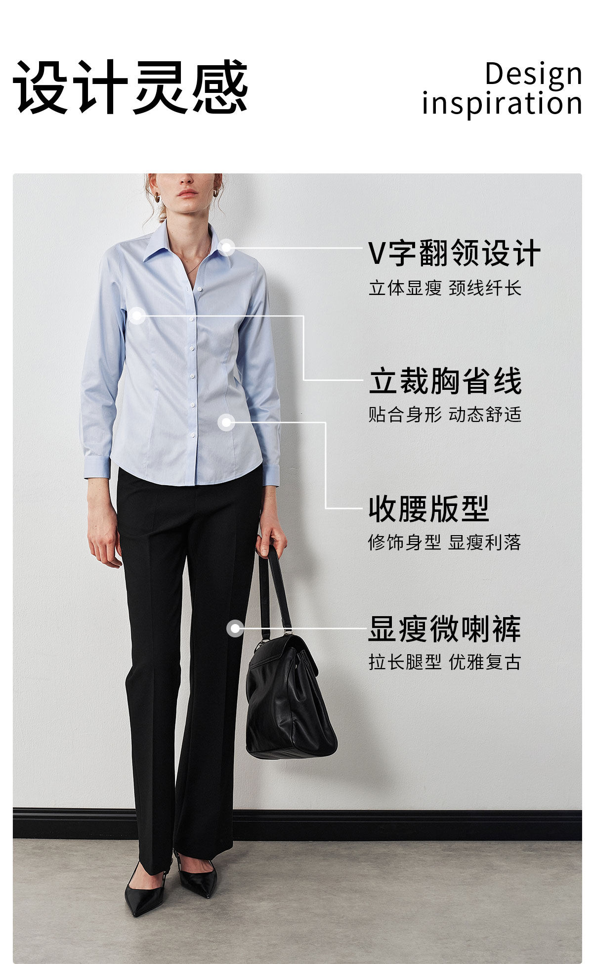 【Pure Cotton, No Ironing】Lelenth V-Neck Professional Blue Shirt for Women, Wrinkle-Resistant, Suitable for Civil Service Exams and Interviews, Can Be Worn under a Suit