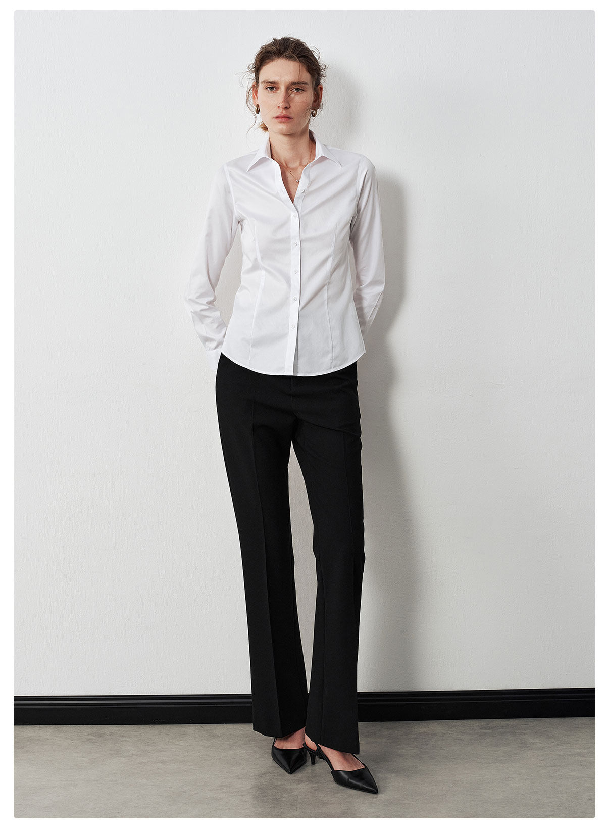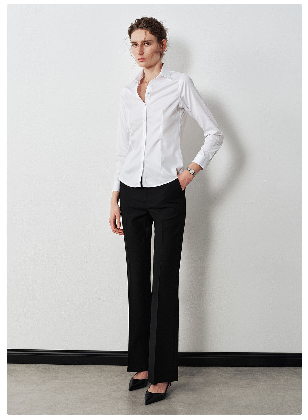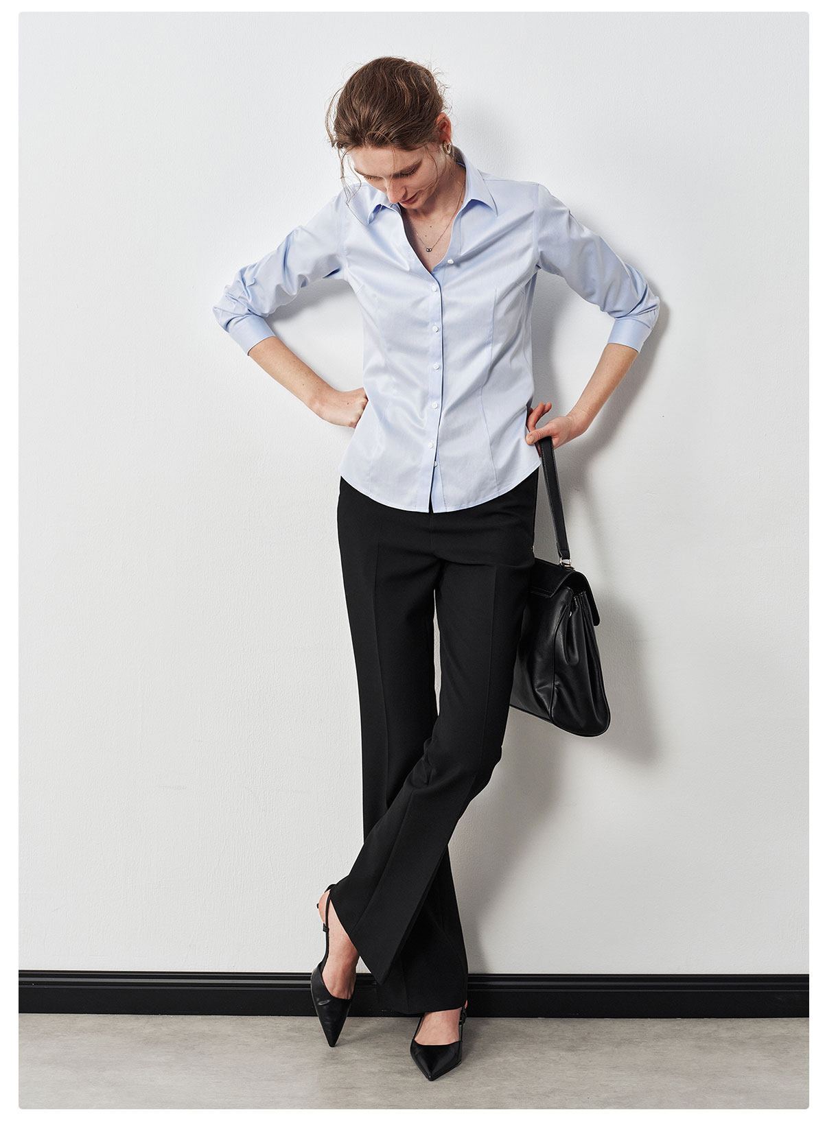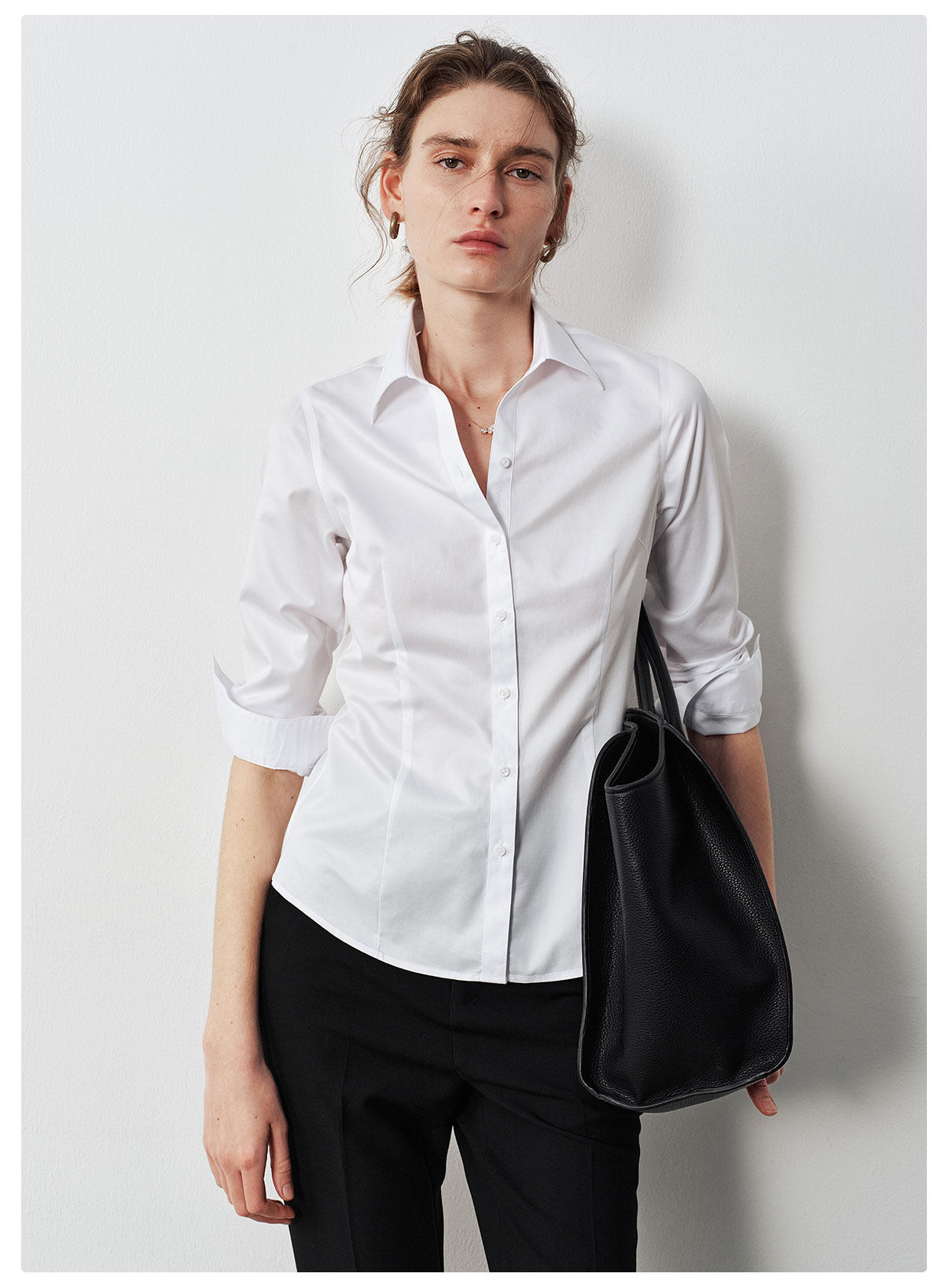 【Pure Cotton, No Ironing】Lelenth V-Neck Professional Blue Shirt for Women, Wrinkle-Resistant, Suitable for Civil Service Exams and Interviews, Can Be Worn under a Suit