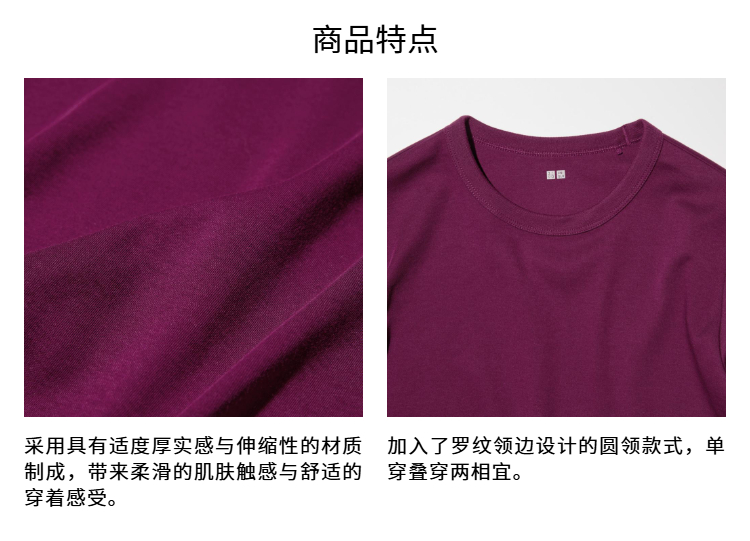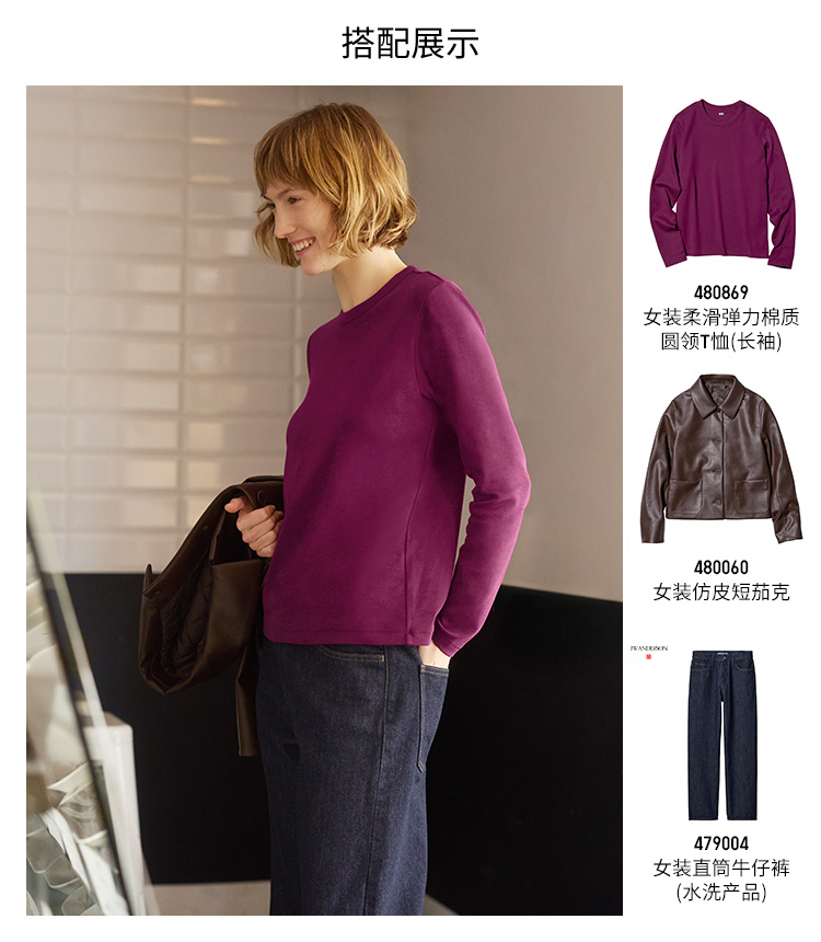 Uniqlo Women's Smooth Stretch Cotton Round Neck T-Shirt/Long sleeves Basic Version Interior New arrival 480869