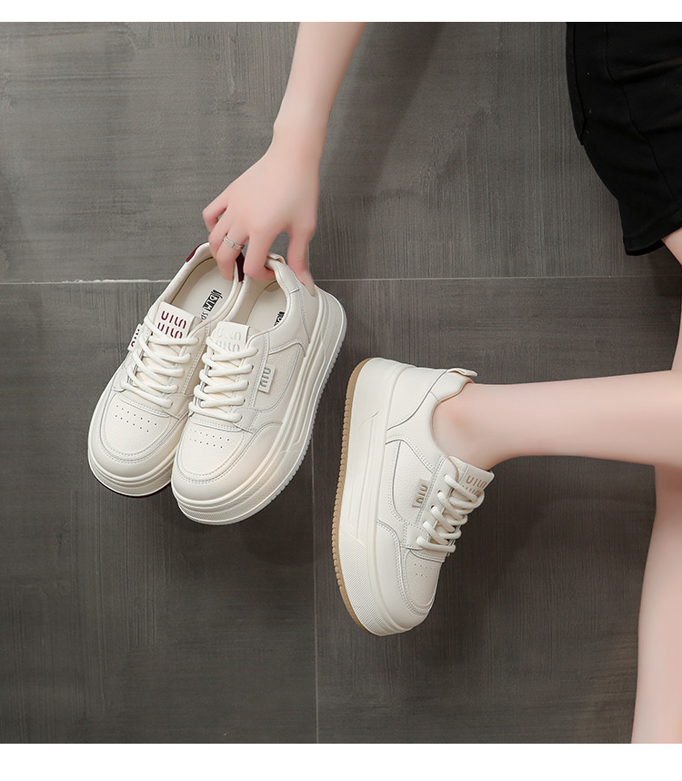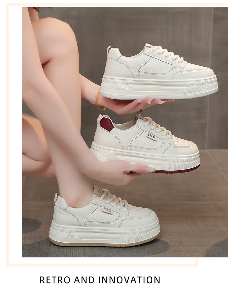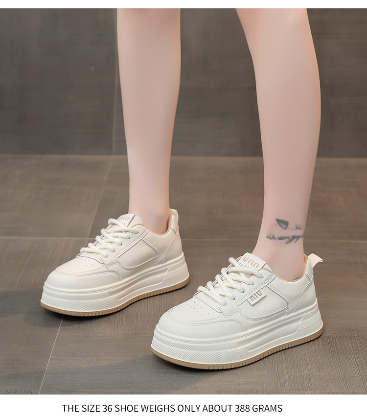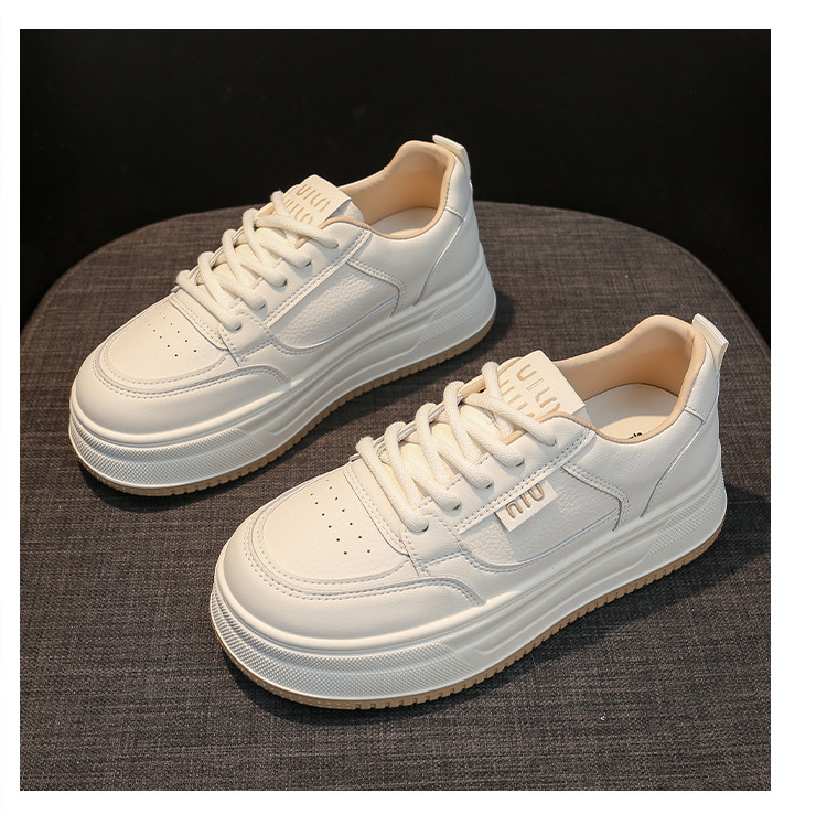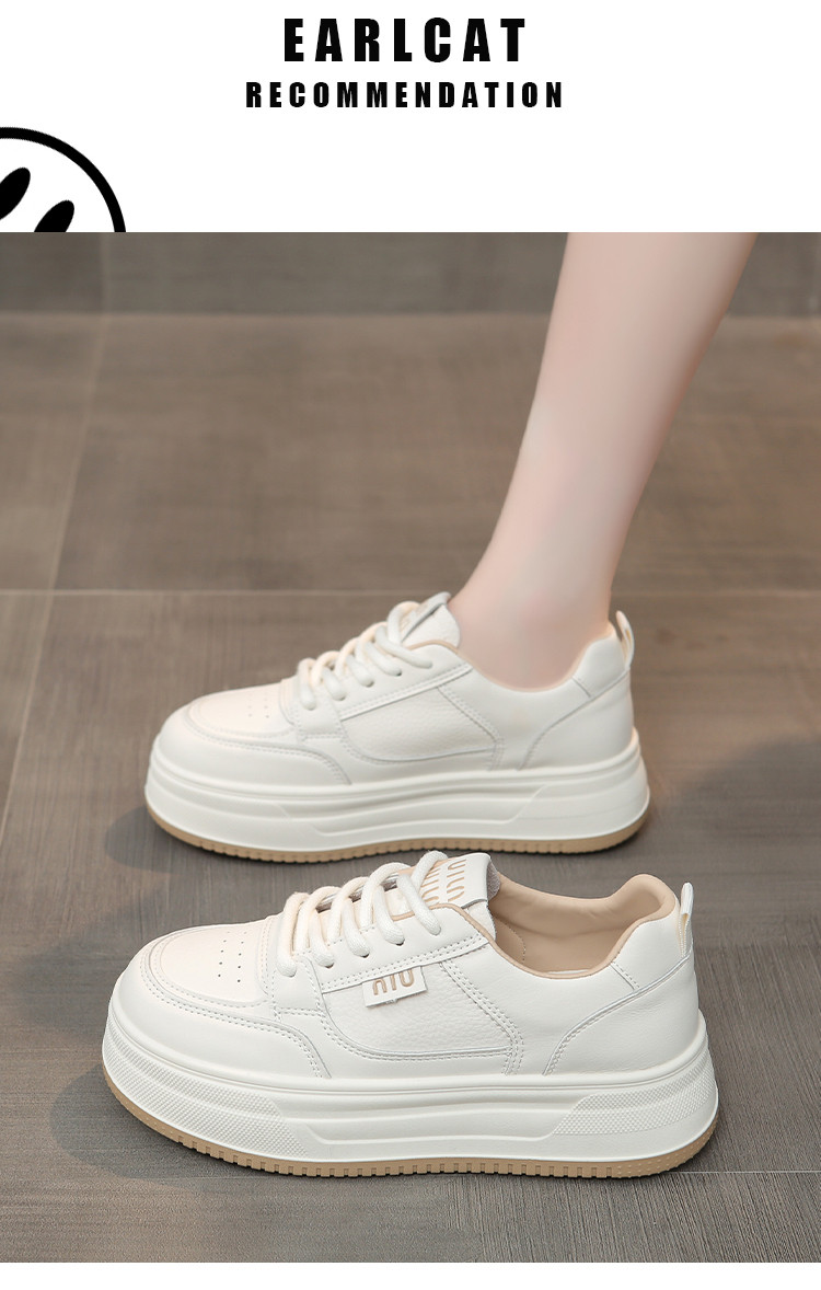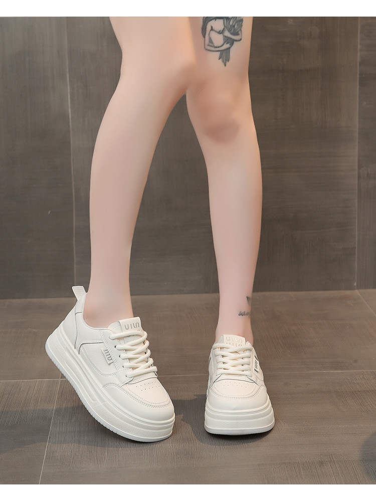 soft sole Genuine Leather White Sneakers for Women 2026 New Popular Style Autumn Versatile Thick-Soled Height-Increasing Soft-Soled Sports Shoes